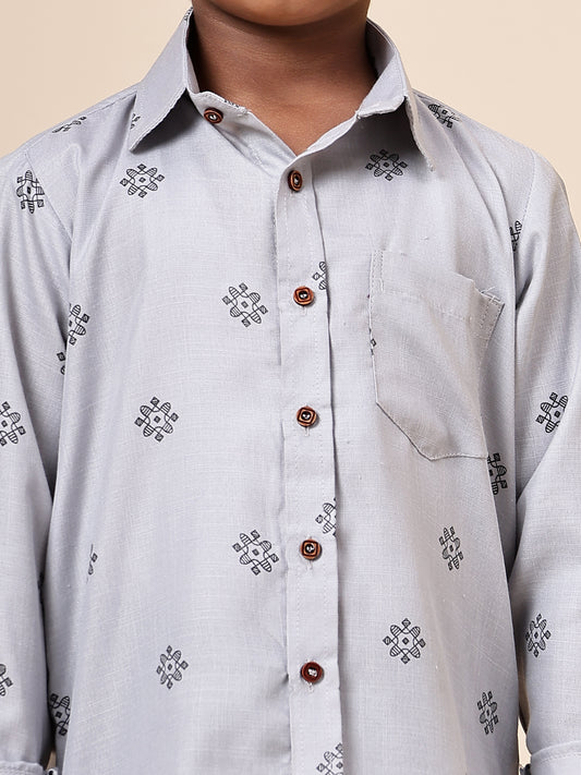 Karnam Junior - Boys Grey Printed Cotton Shirt