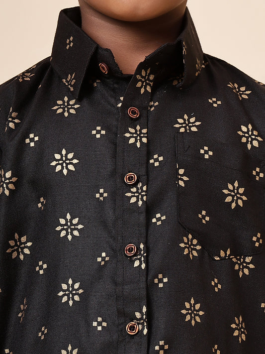 Karnam Junior - Boys Black and Gold Cotton Shirt