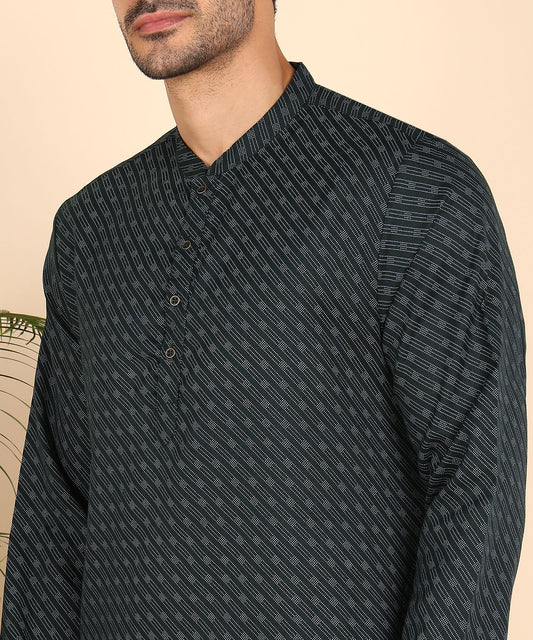 Oblique Printed Mens Cotton Kurta Set - Bottle Green