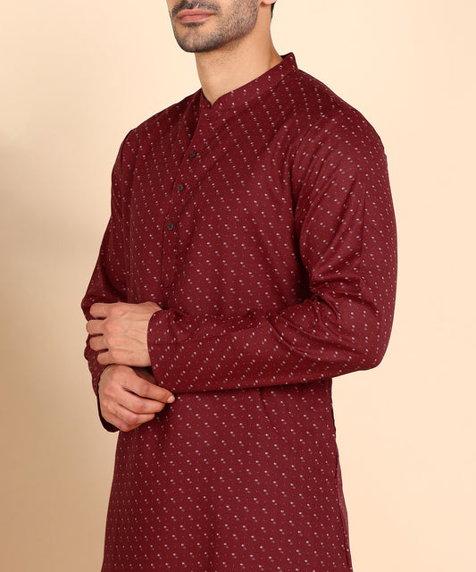 Oblique Printed Mens Cotton Kurta Set - Maroon