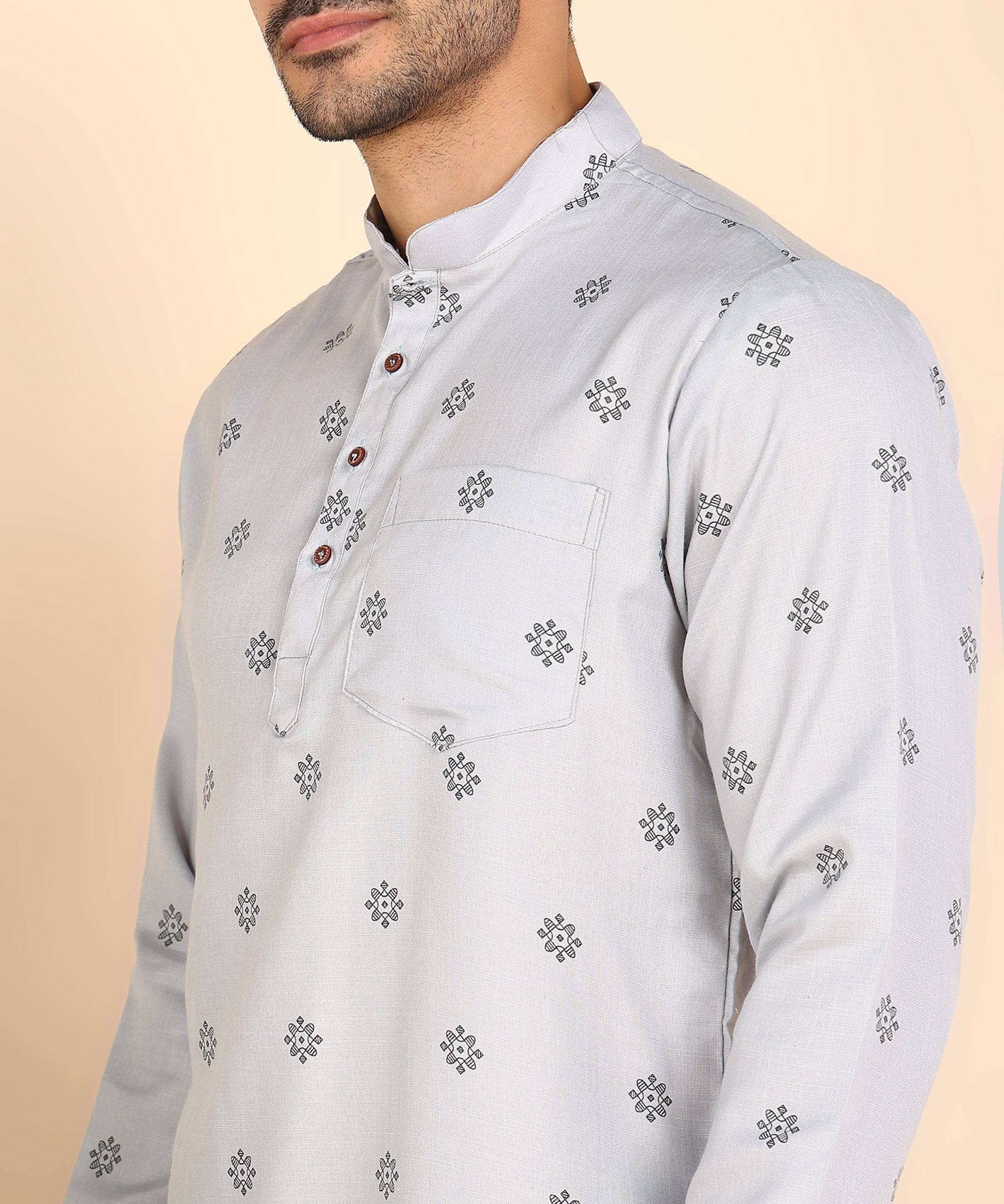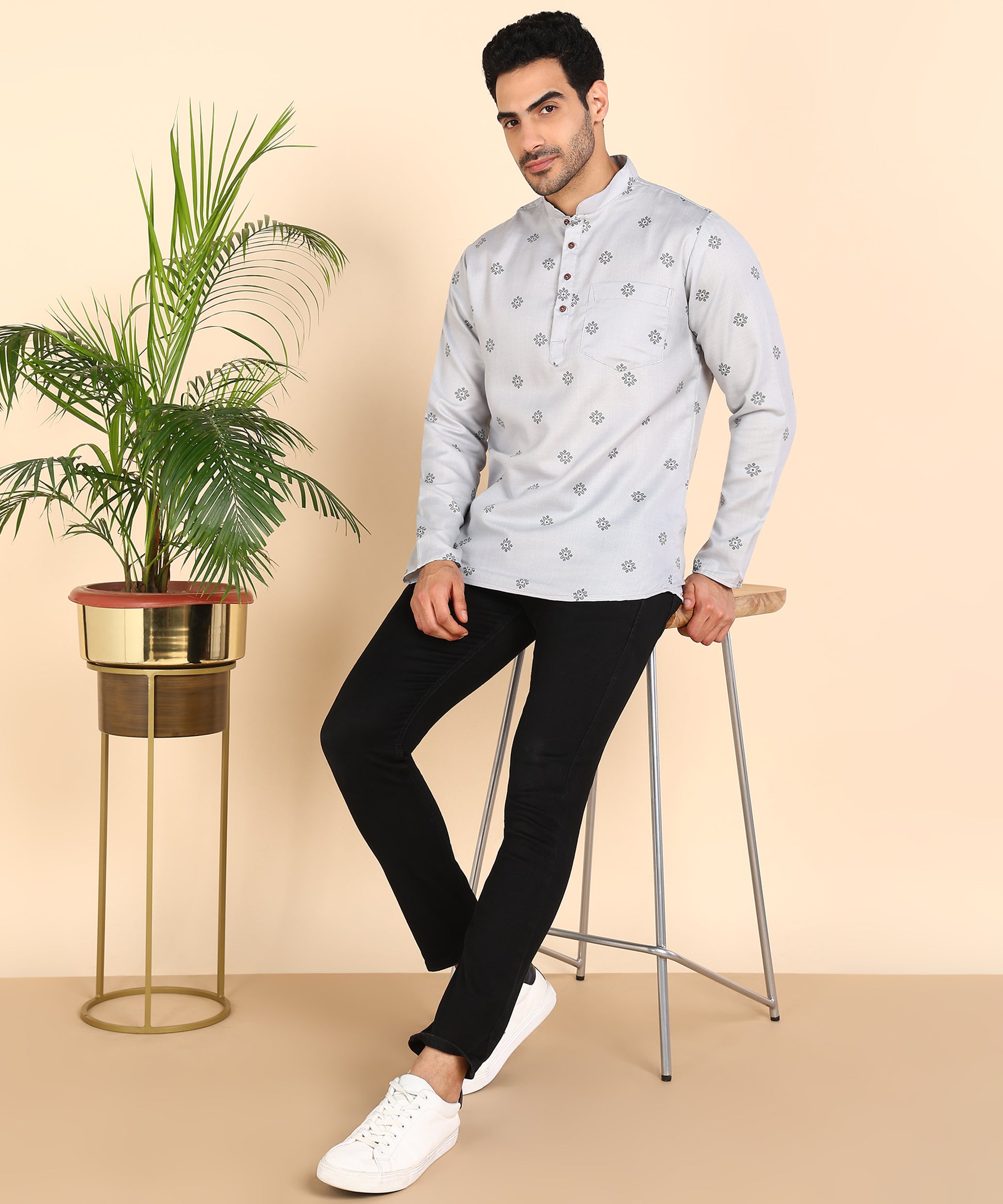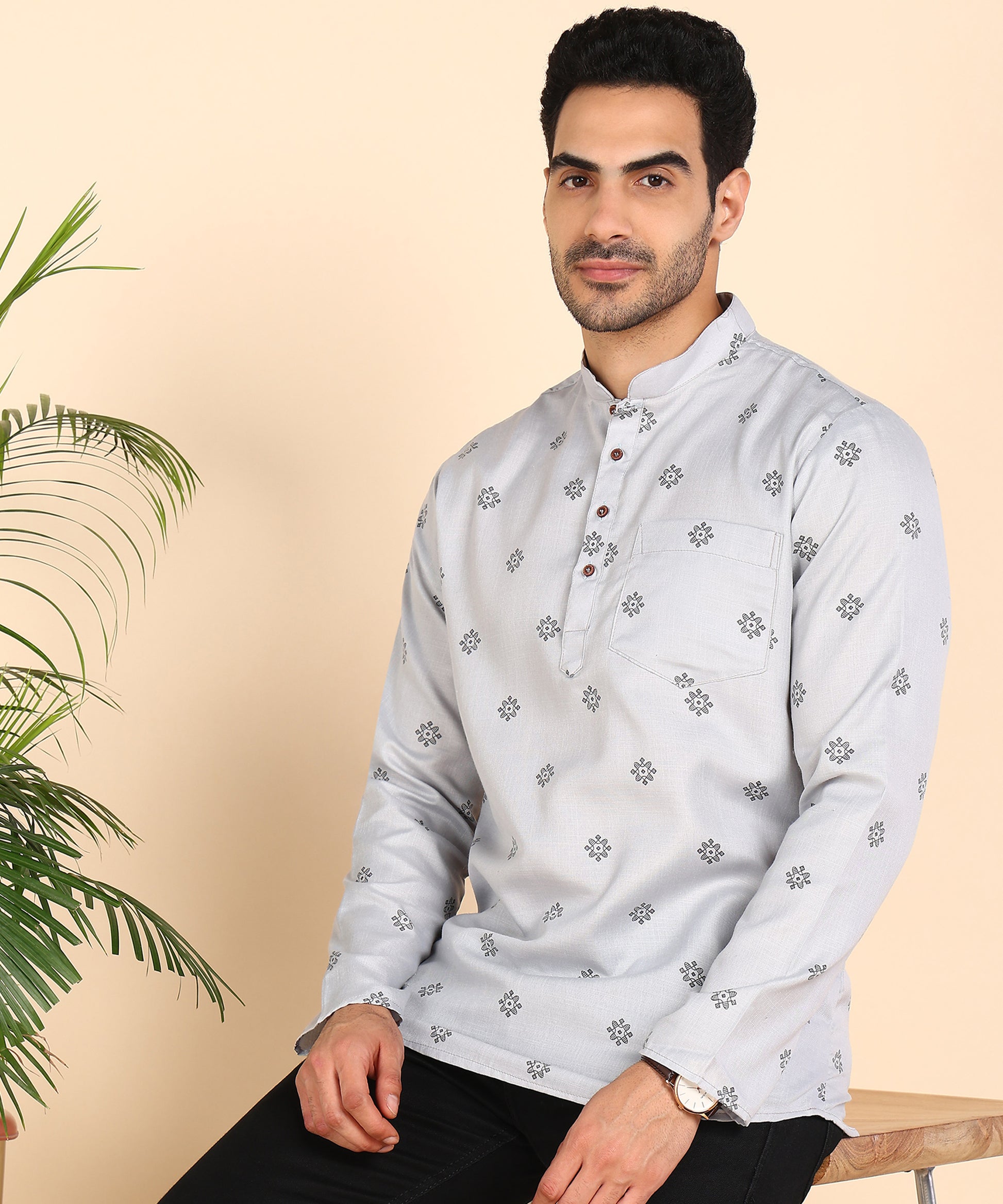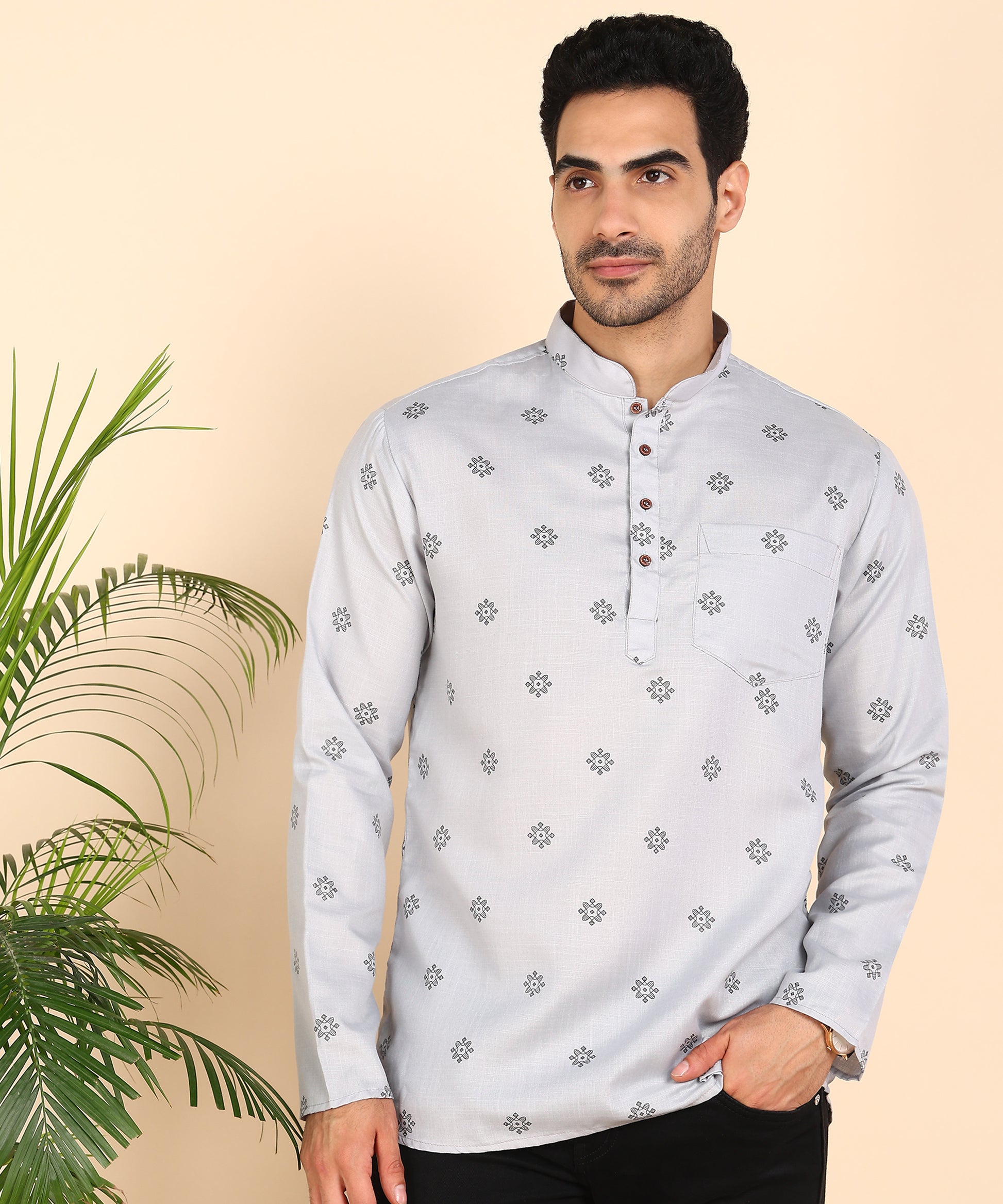 Grey Printed Short Kurta
