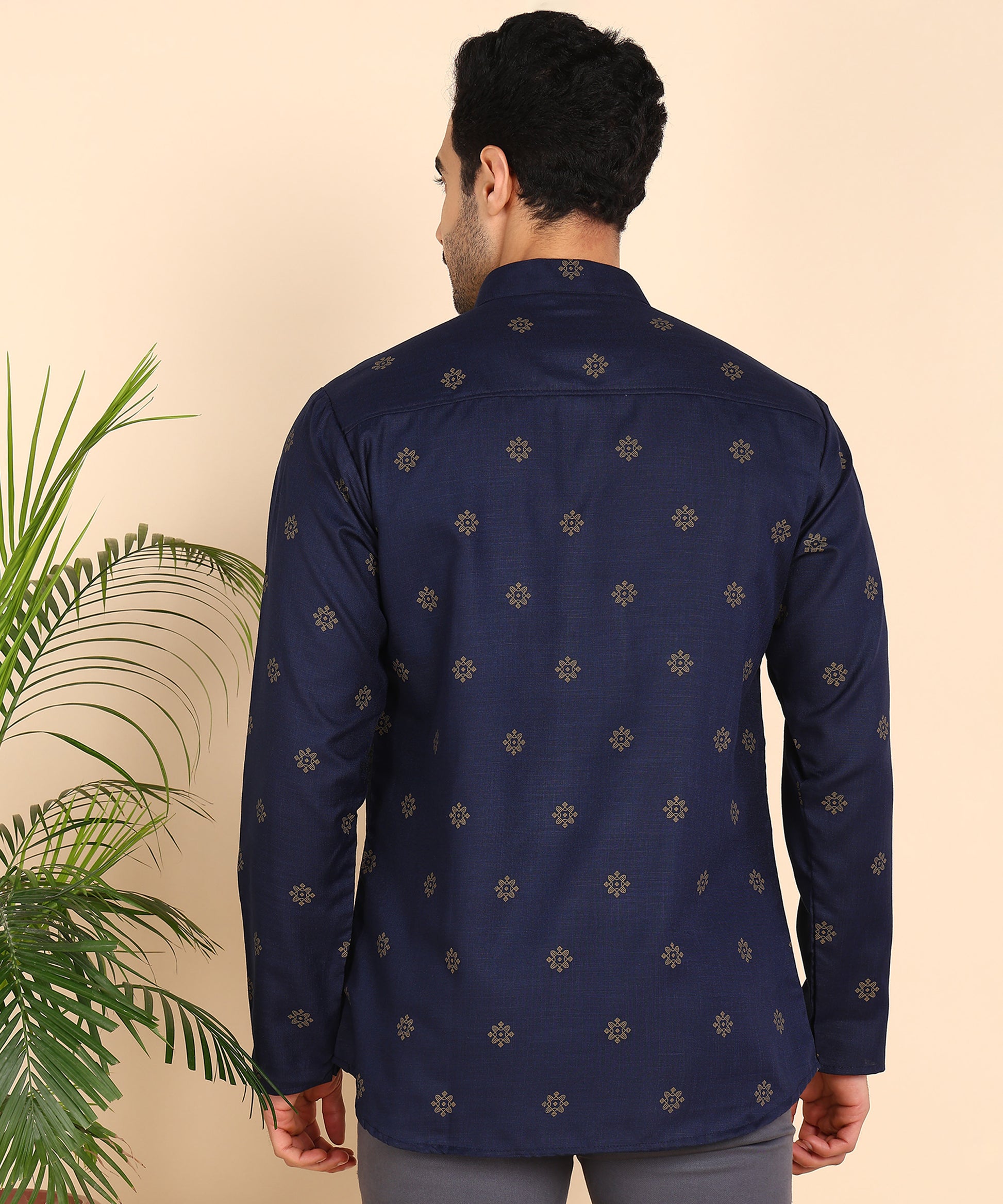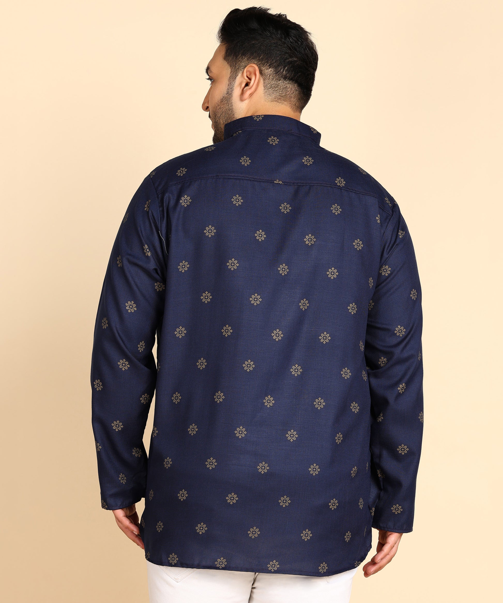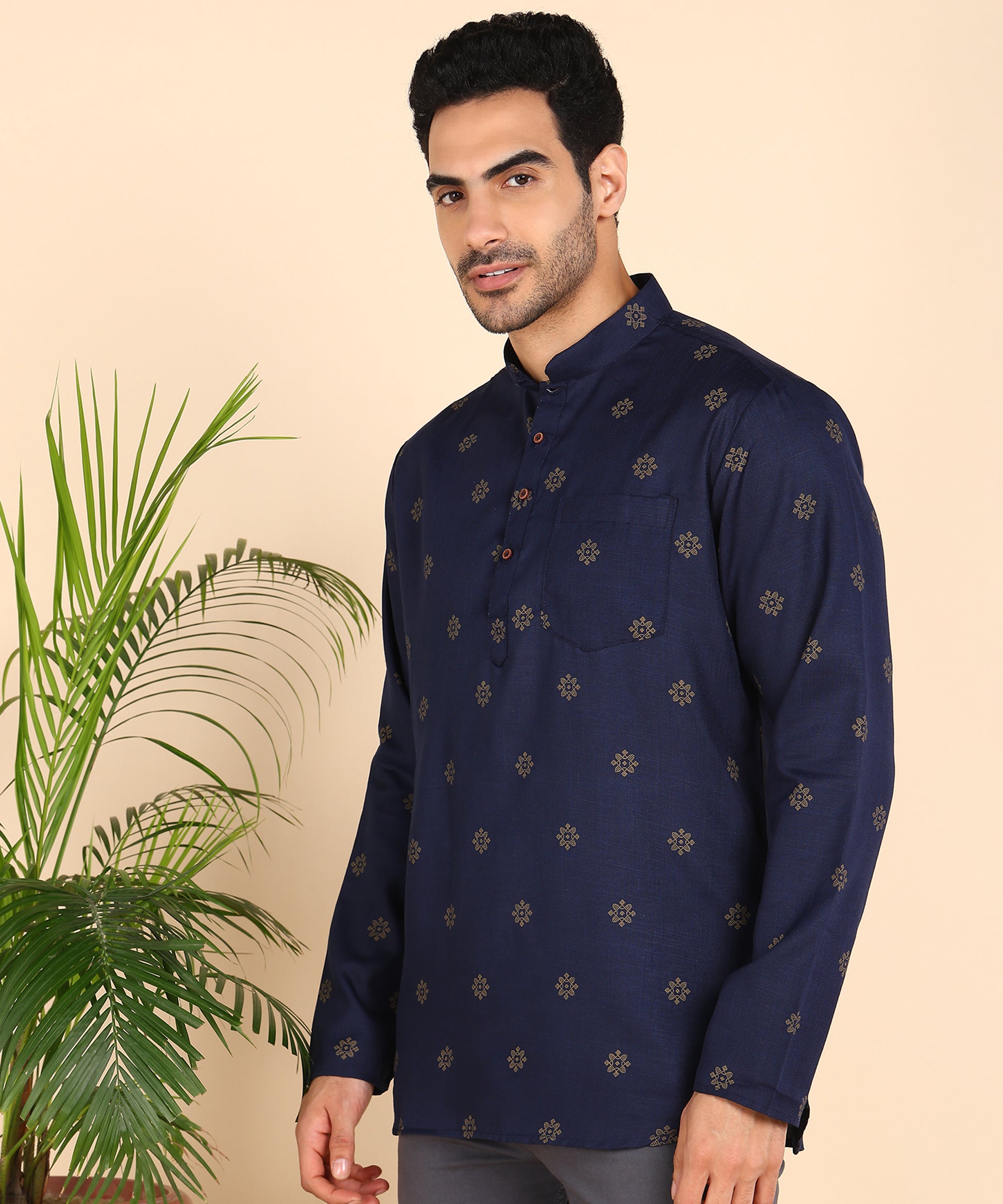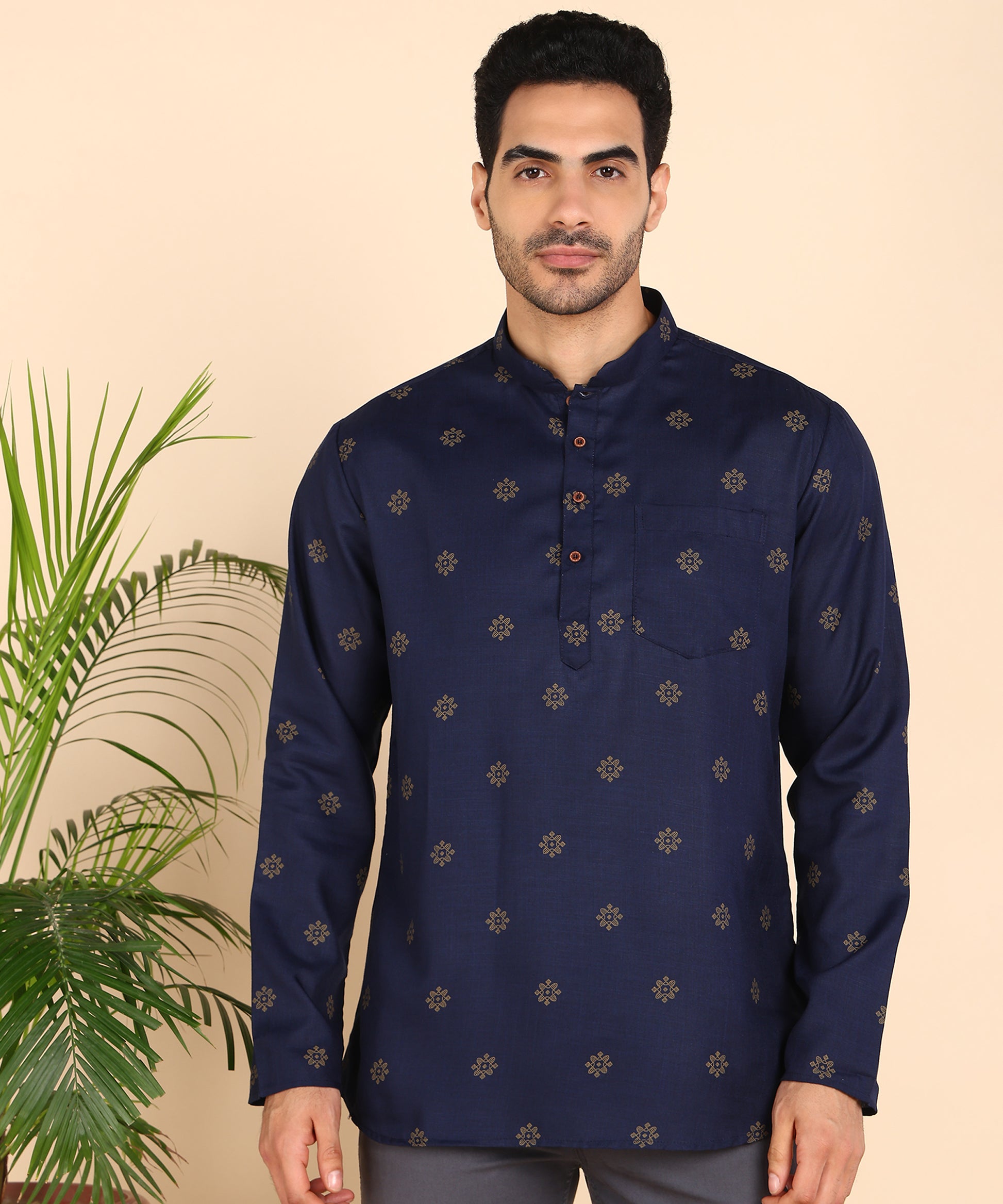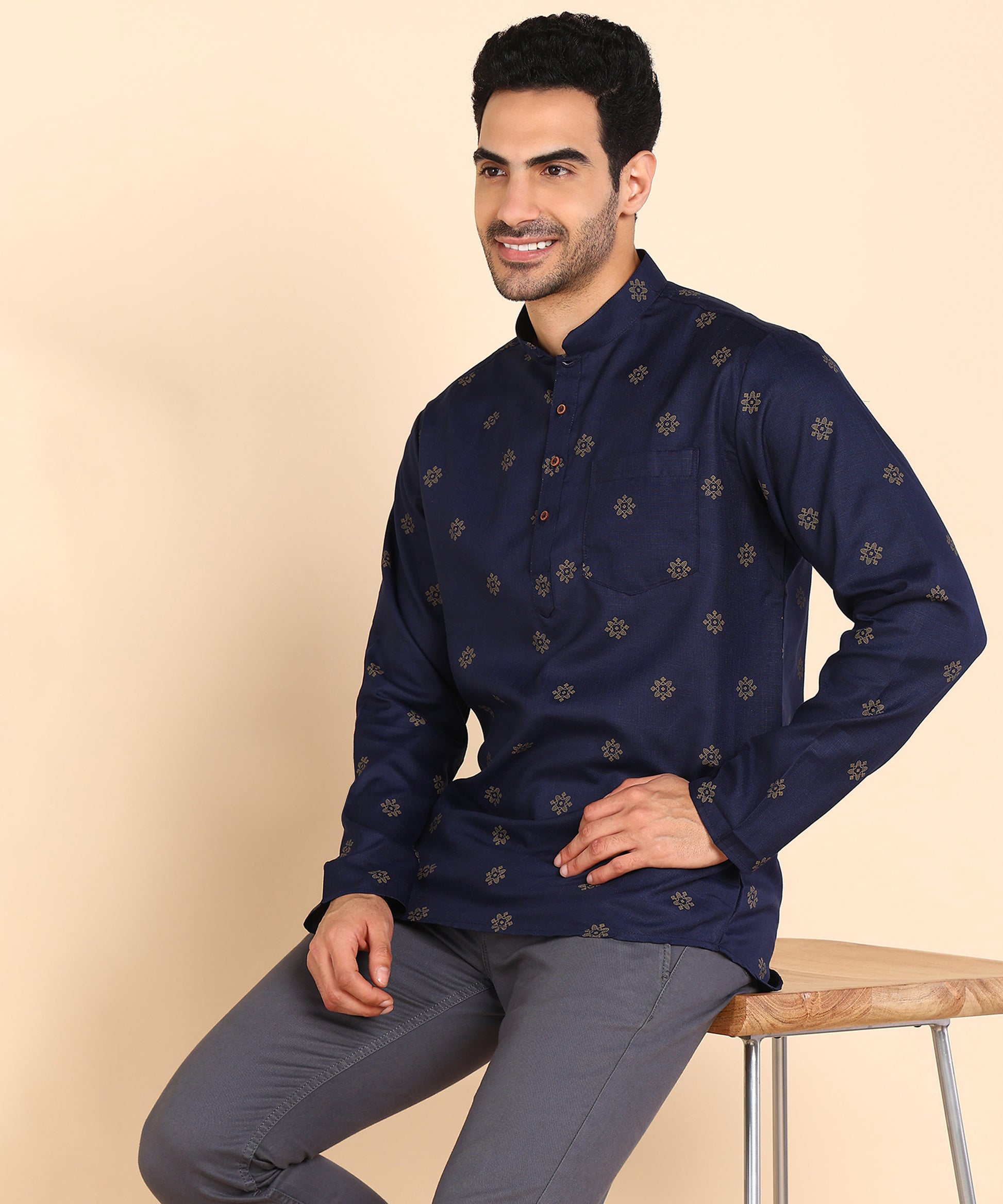 Blue and Gold Printed Short Kurta