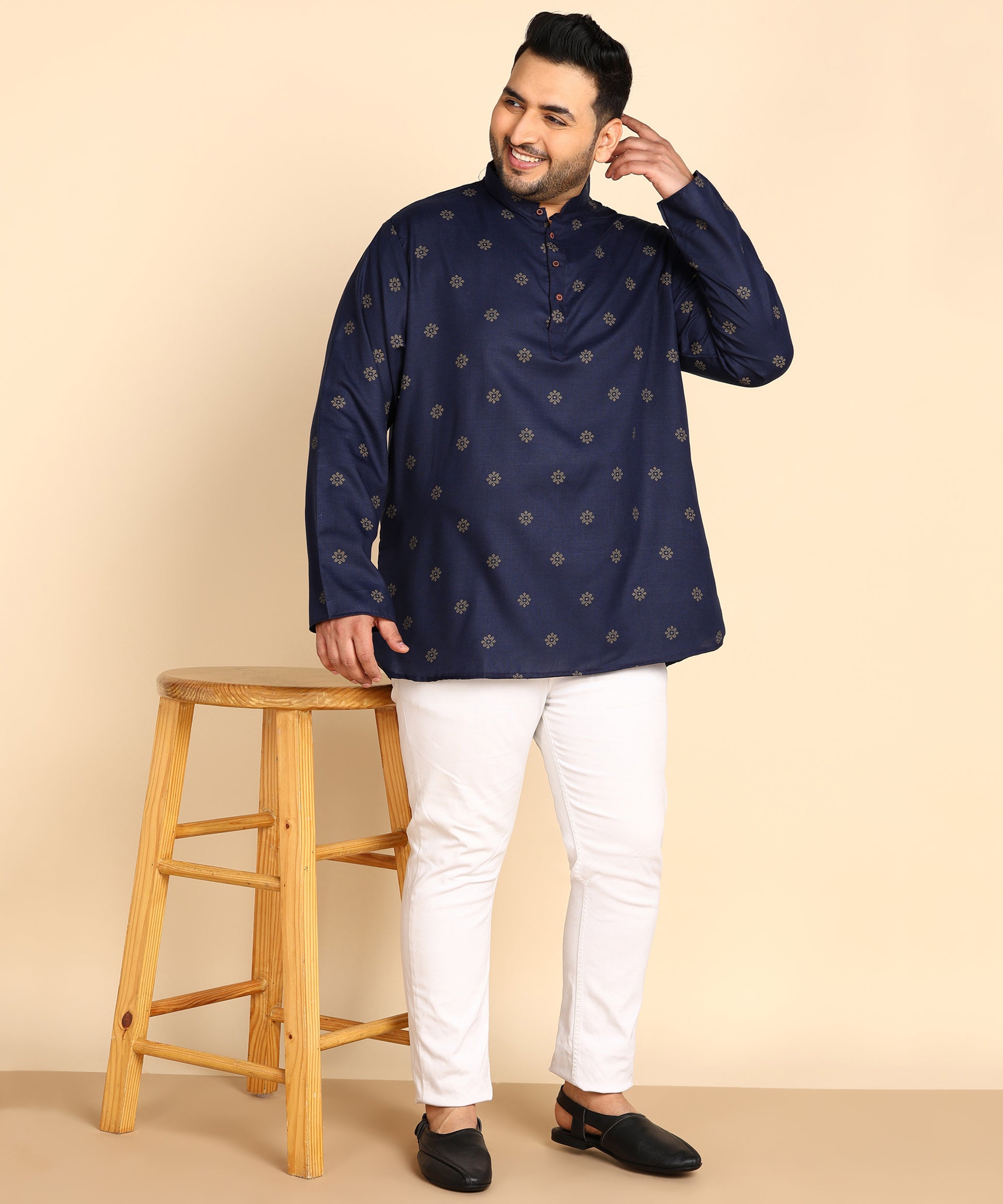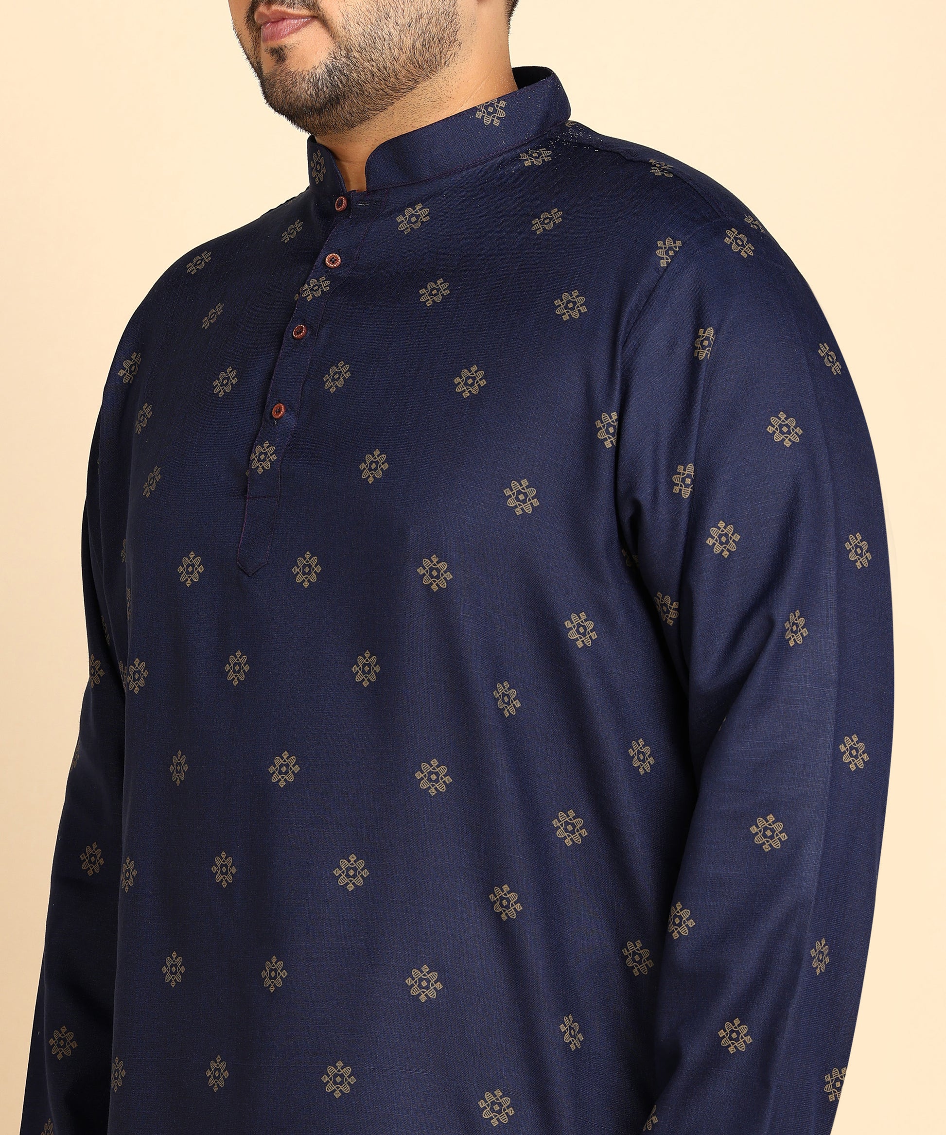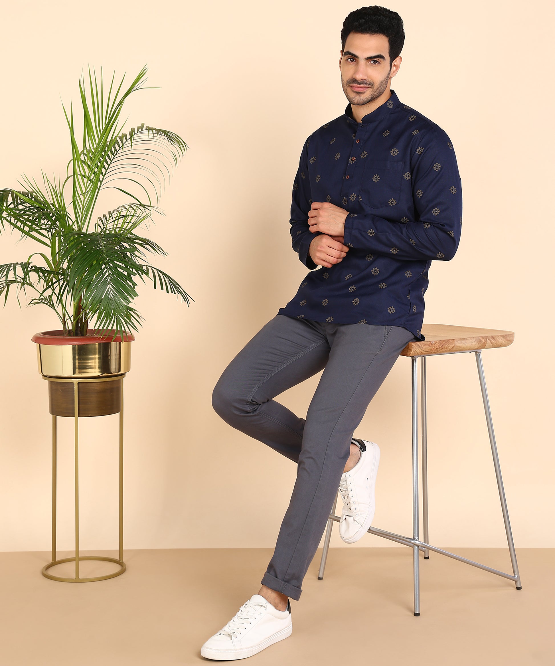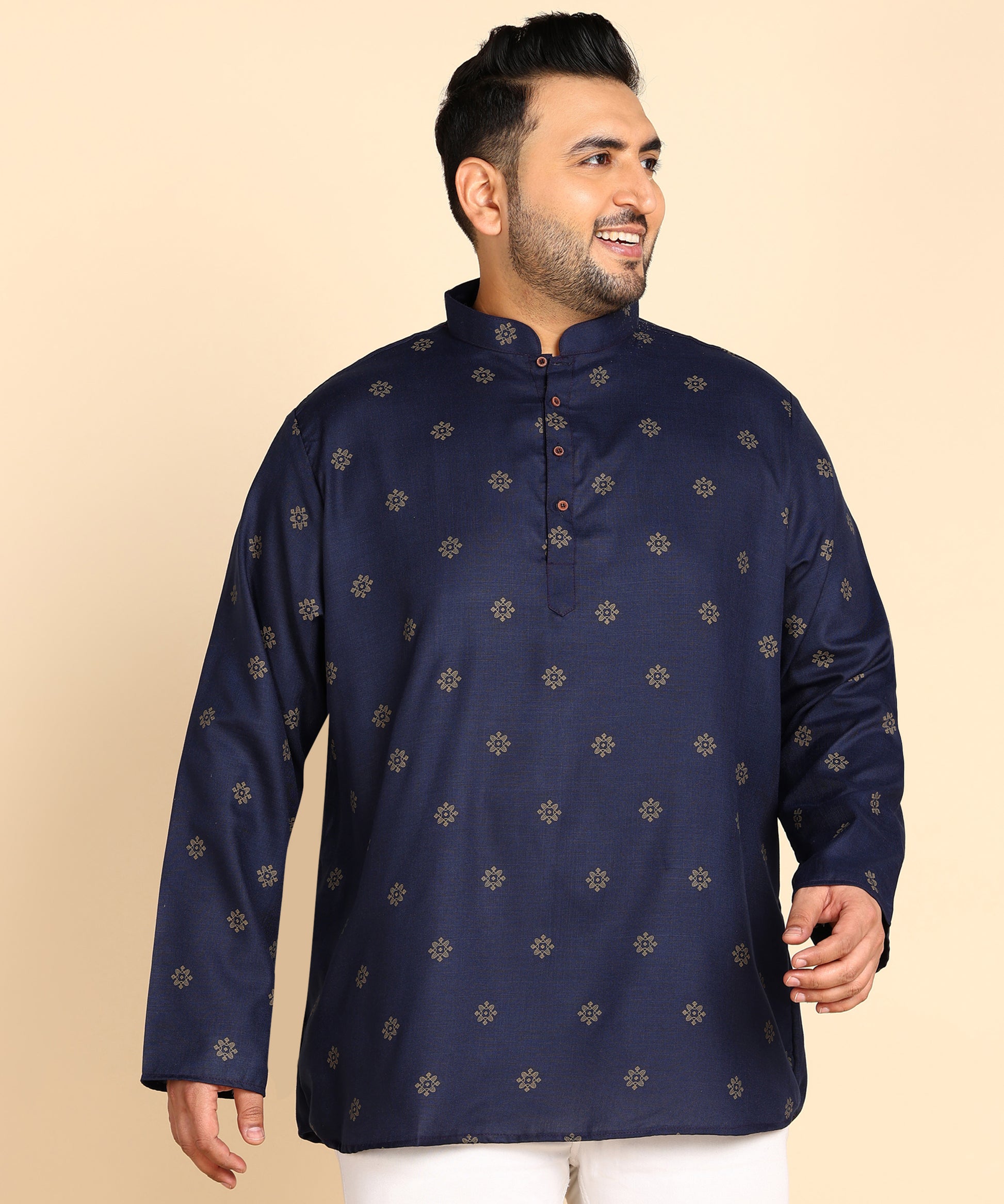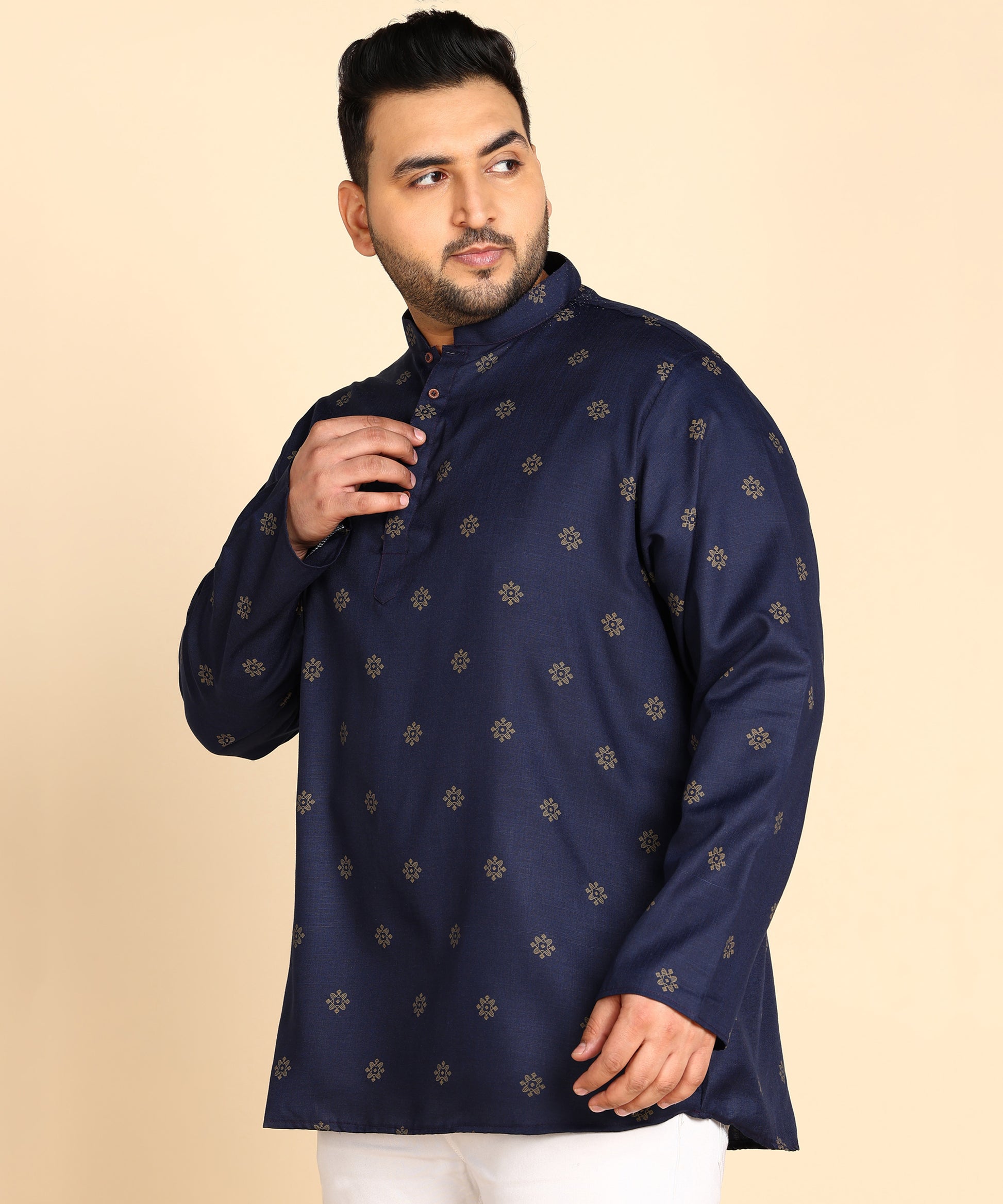 Blue and Gold Printed Short Kurta