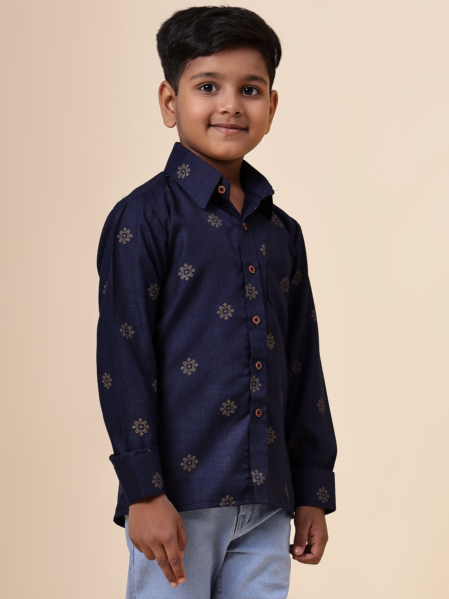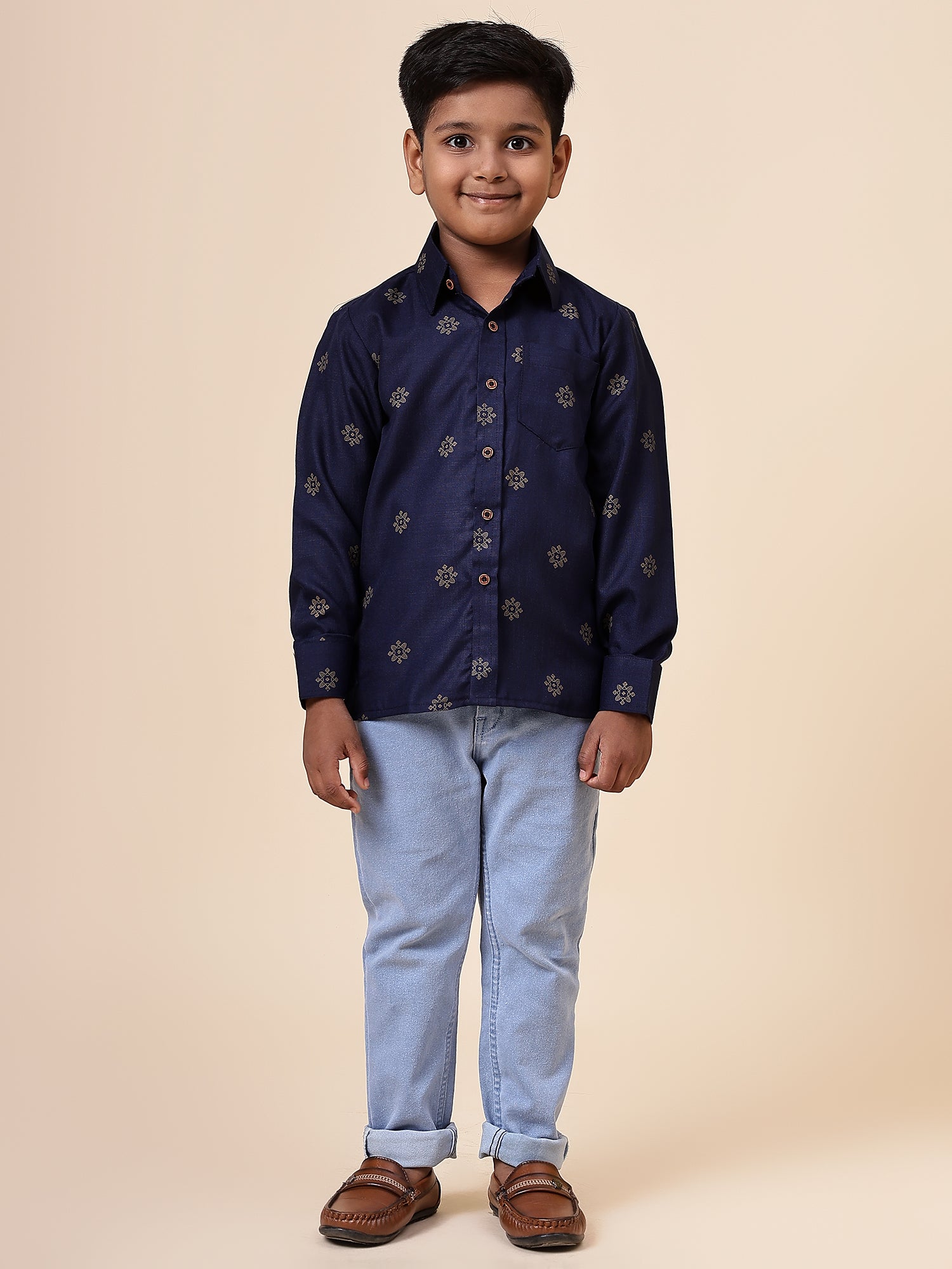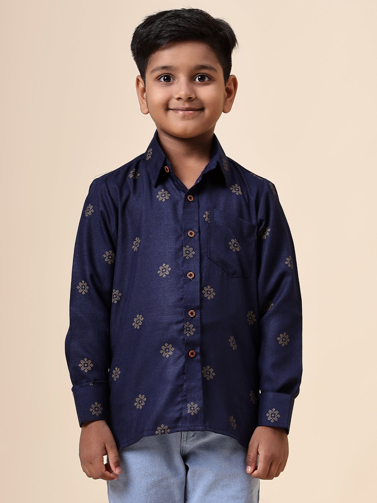 Karnam Junior - Boys Blue and Gold Cotton Shirt