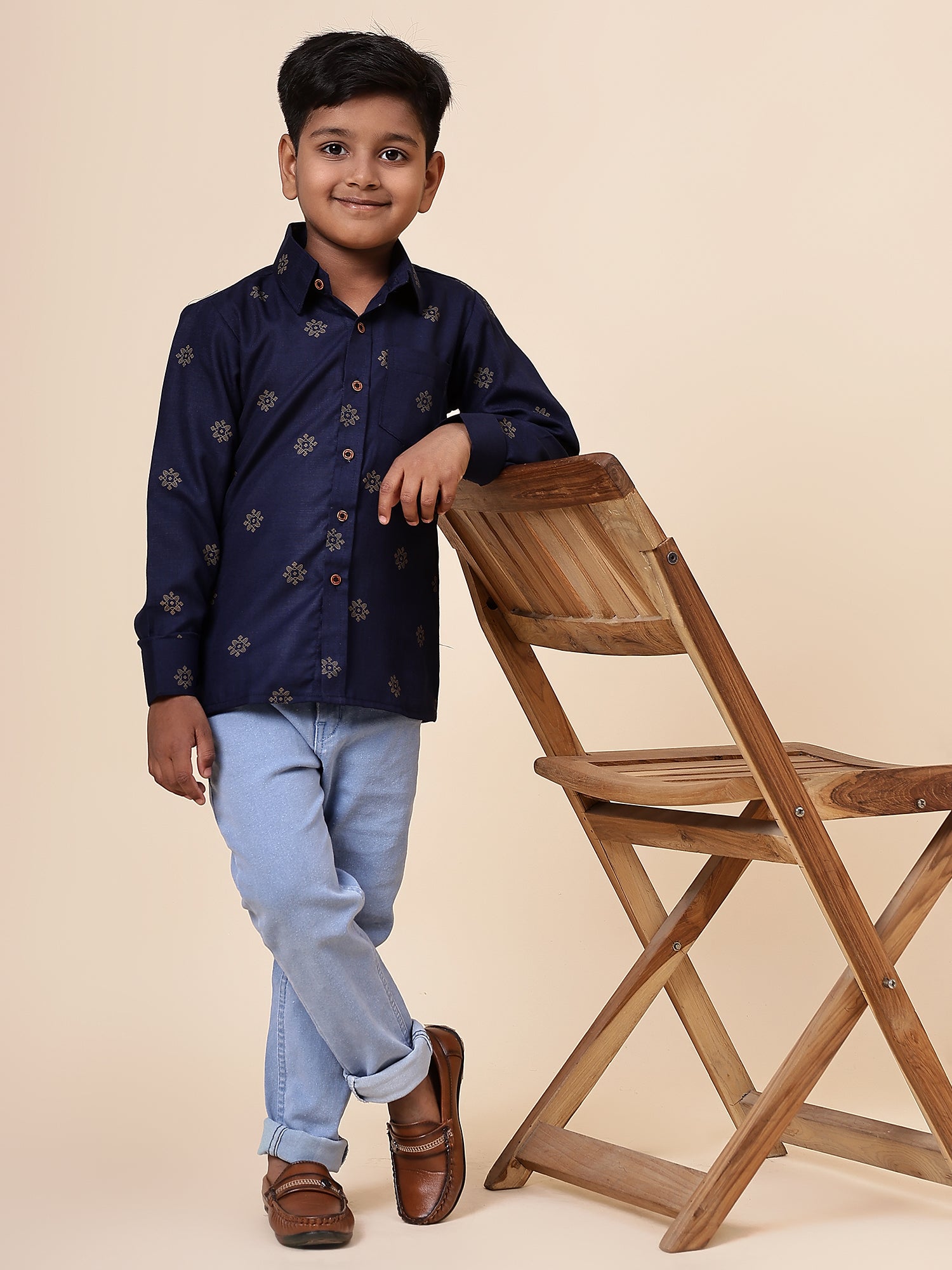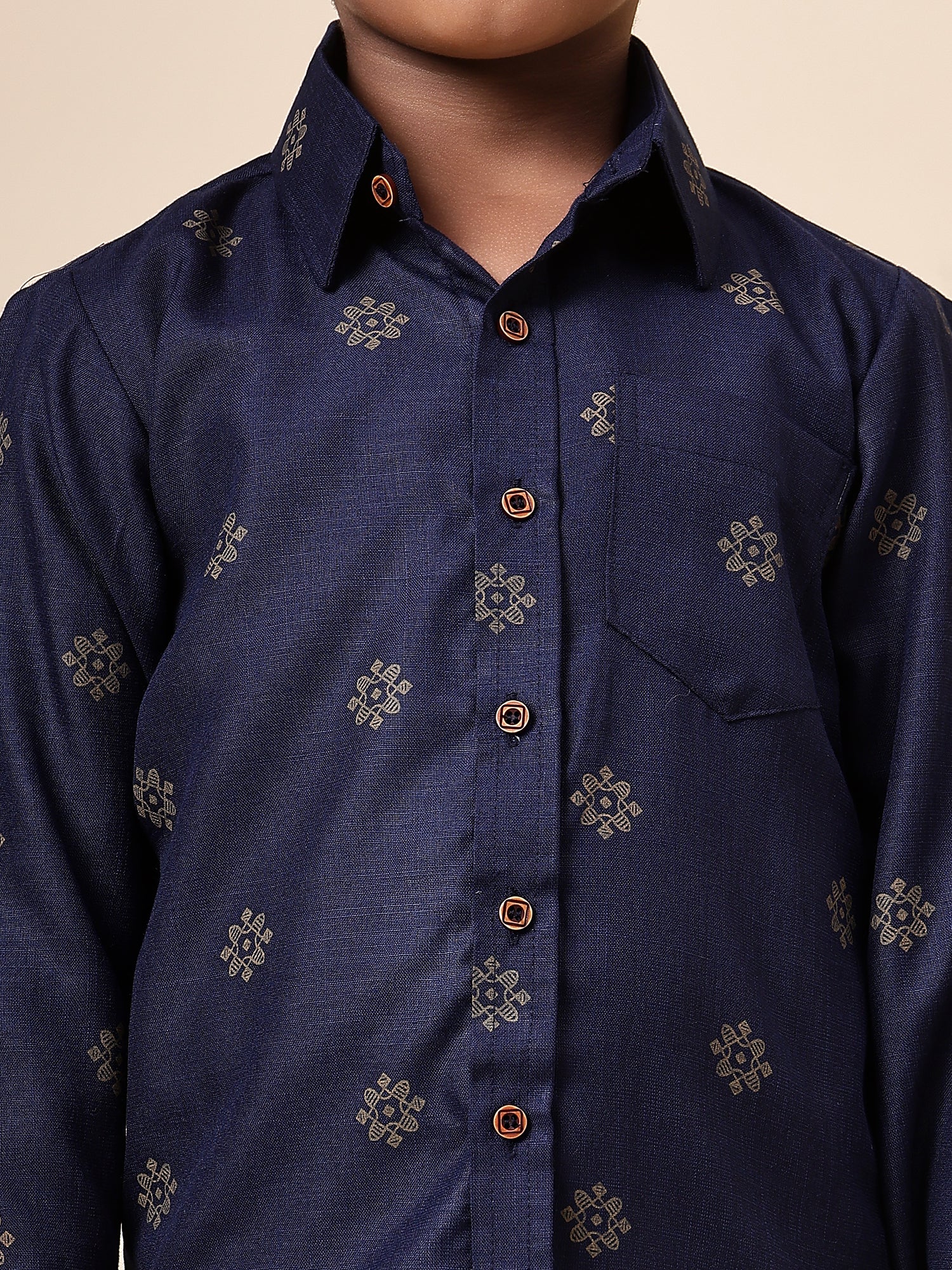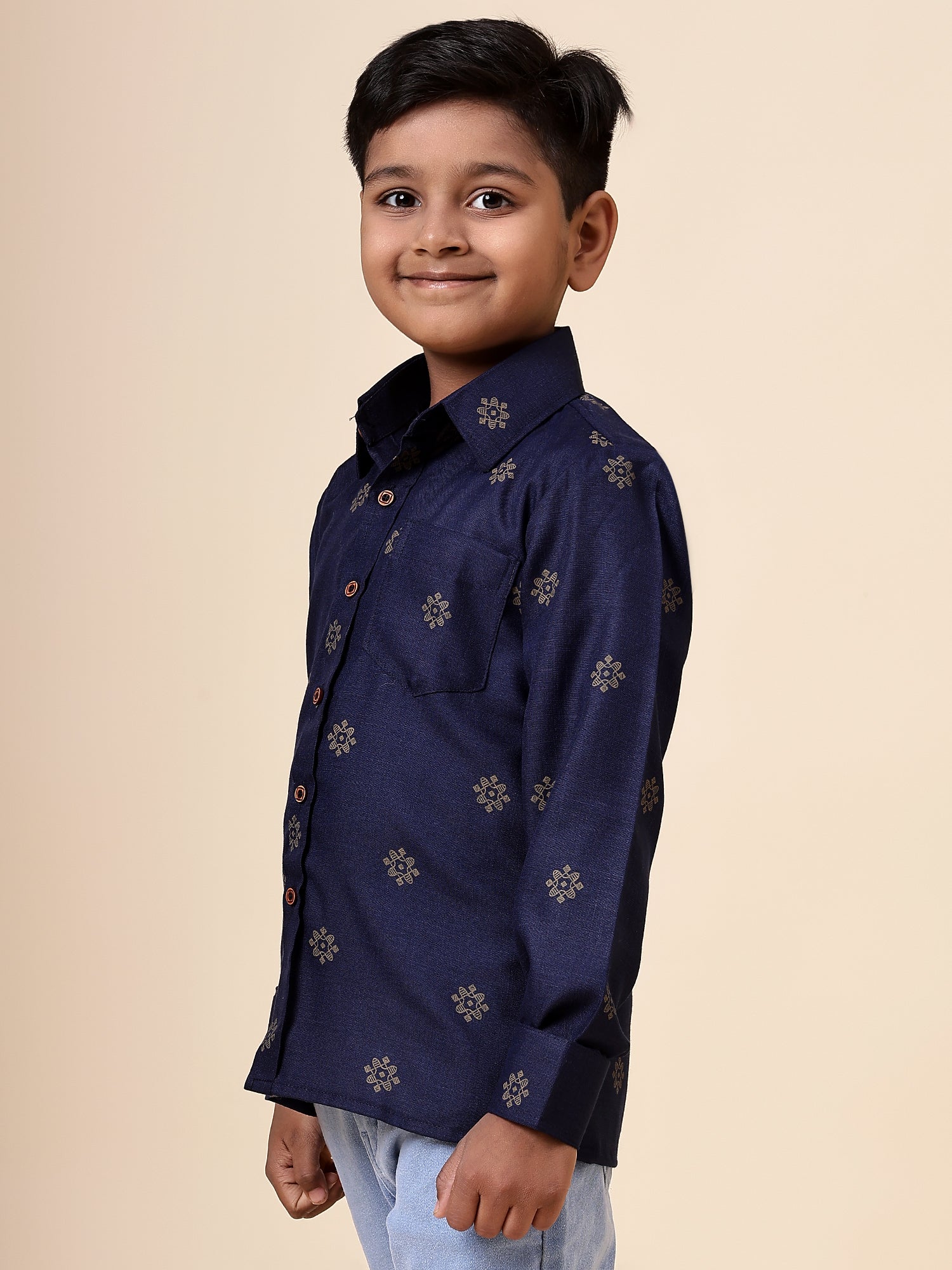 Karnam Junior - Boys Blue and Gold Cotton Shirt