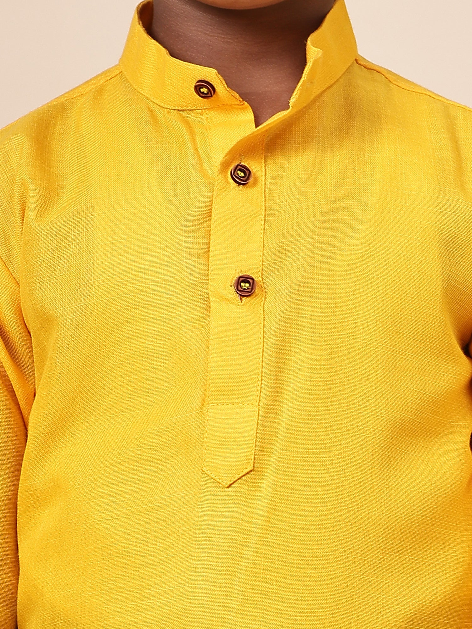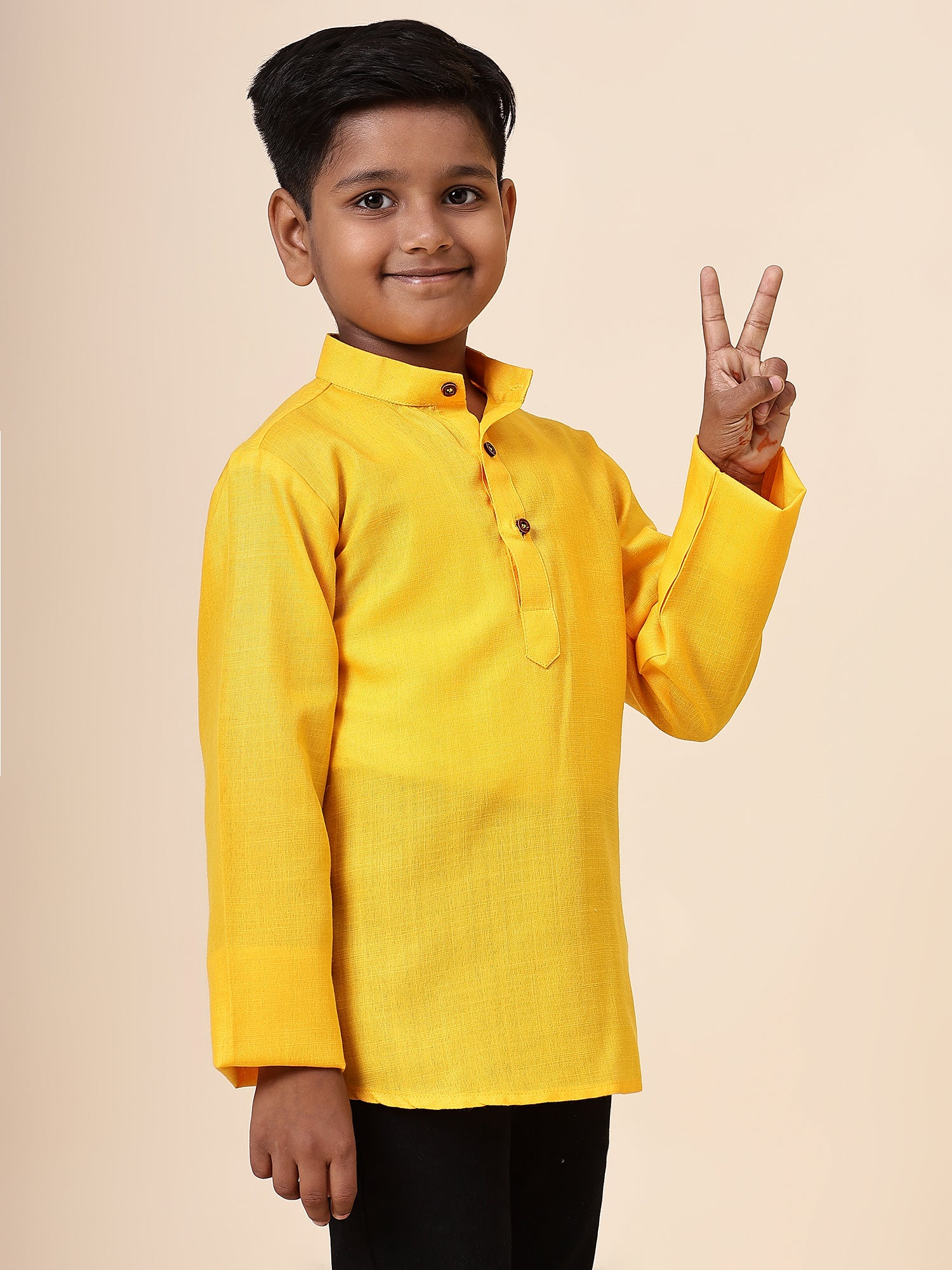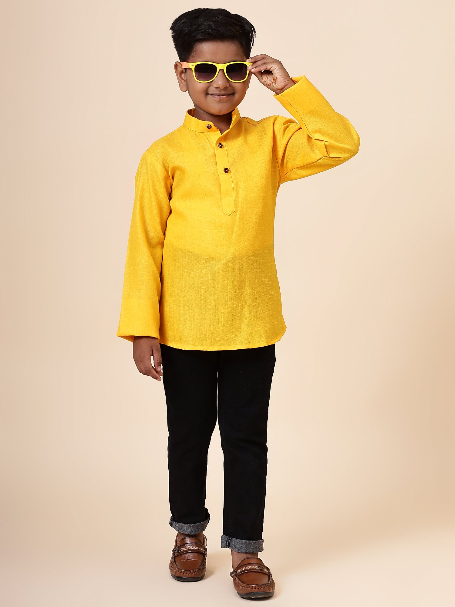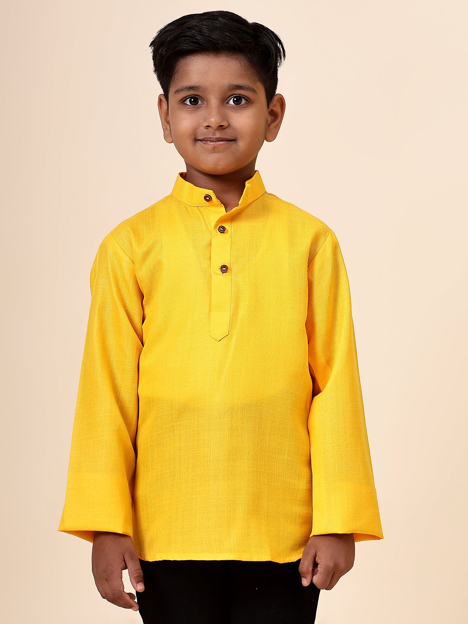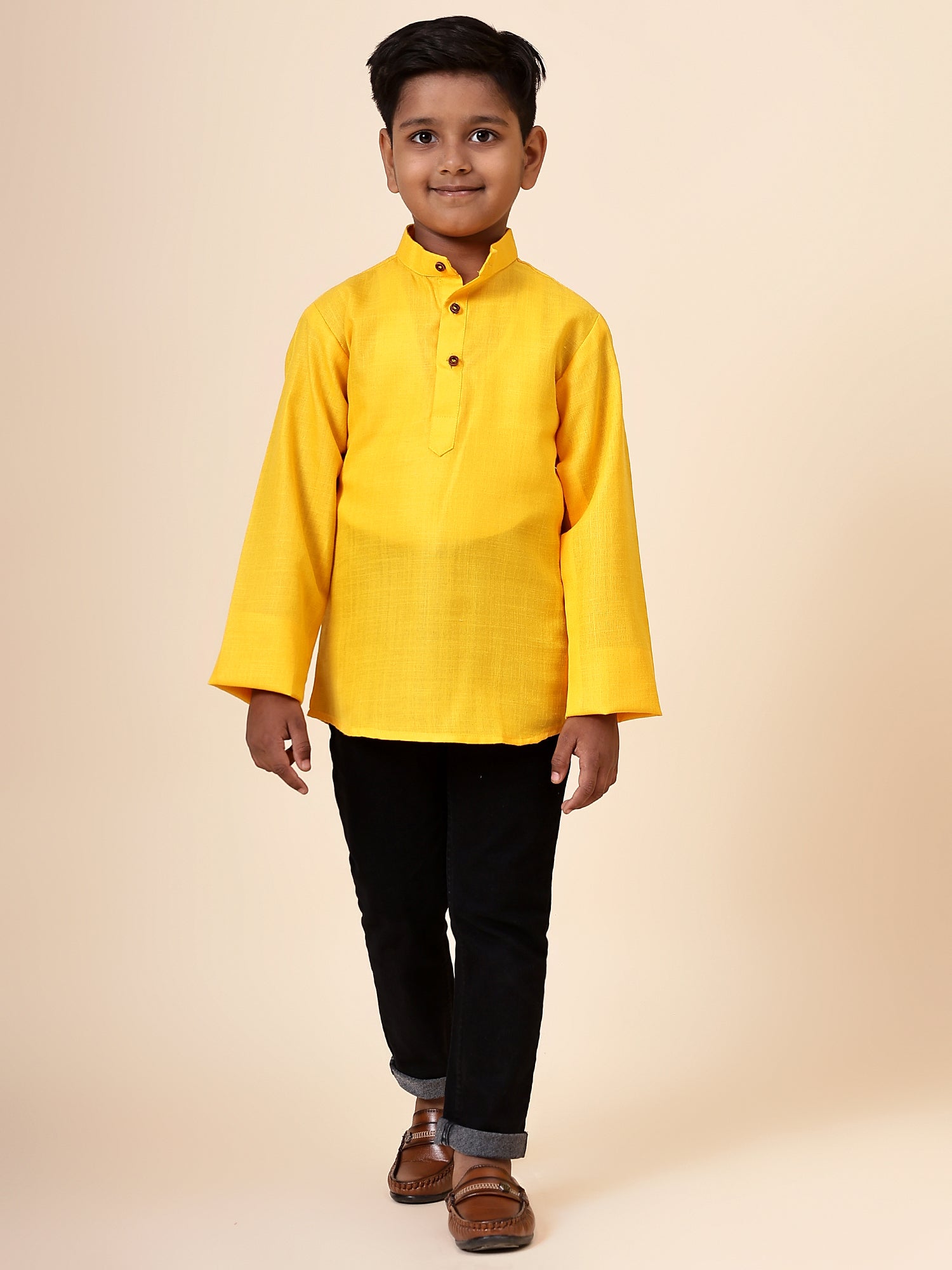Karnam Junior - Boys Bright Yellow Cotton Short Kurta