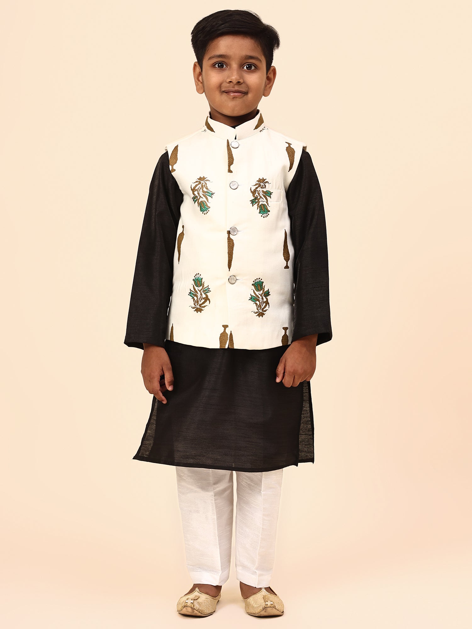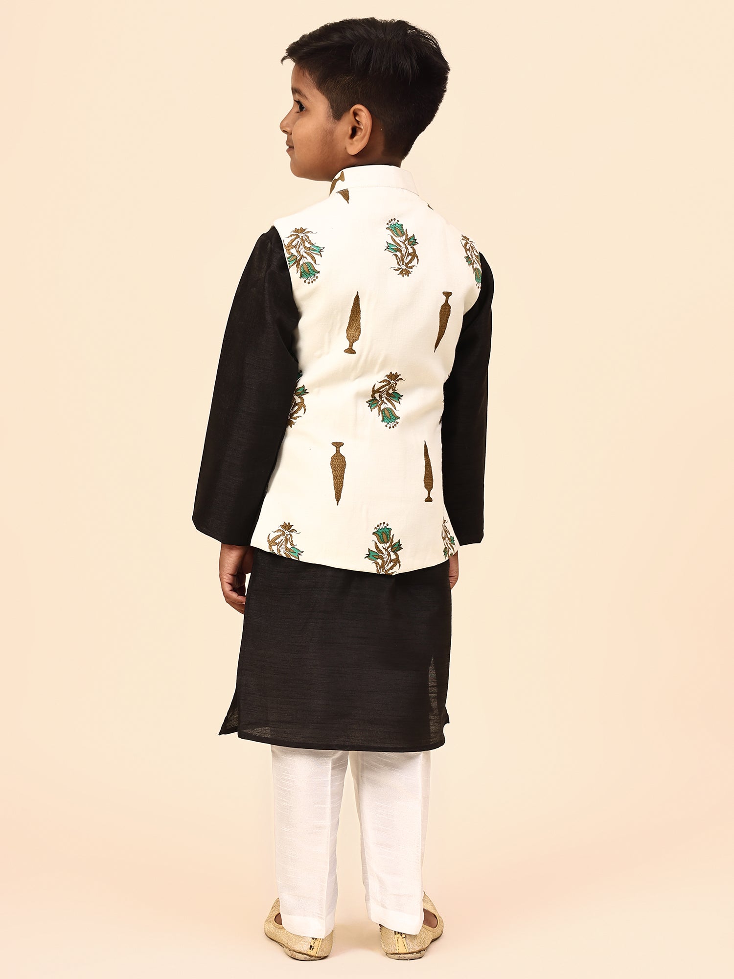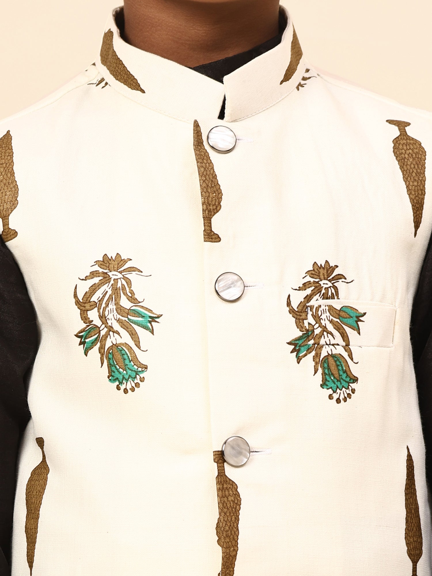 Karnam Junior - Boys Cream Foliage Printed Jacket Set