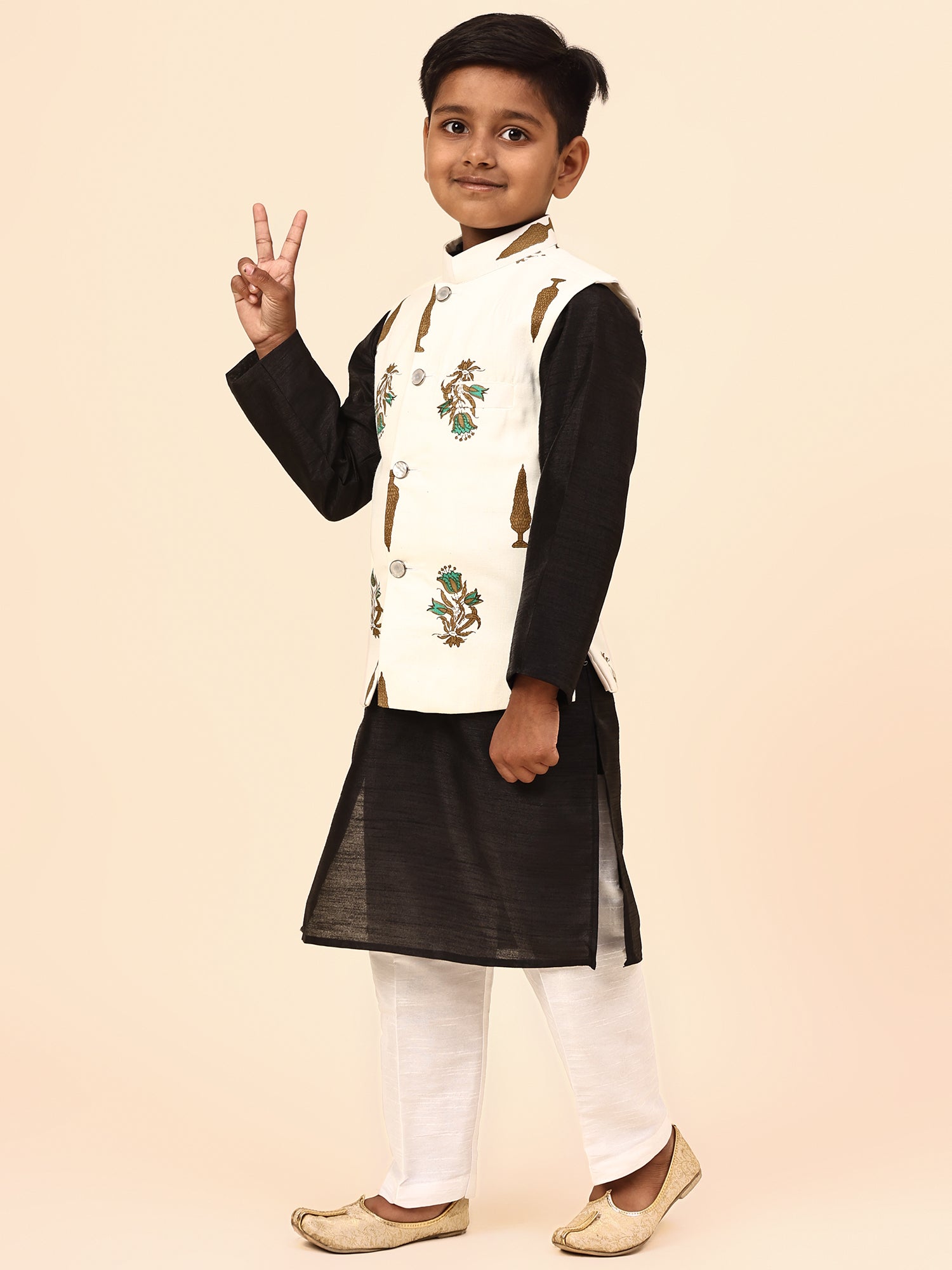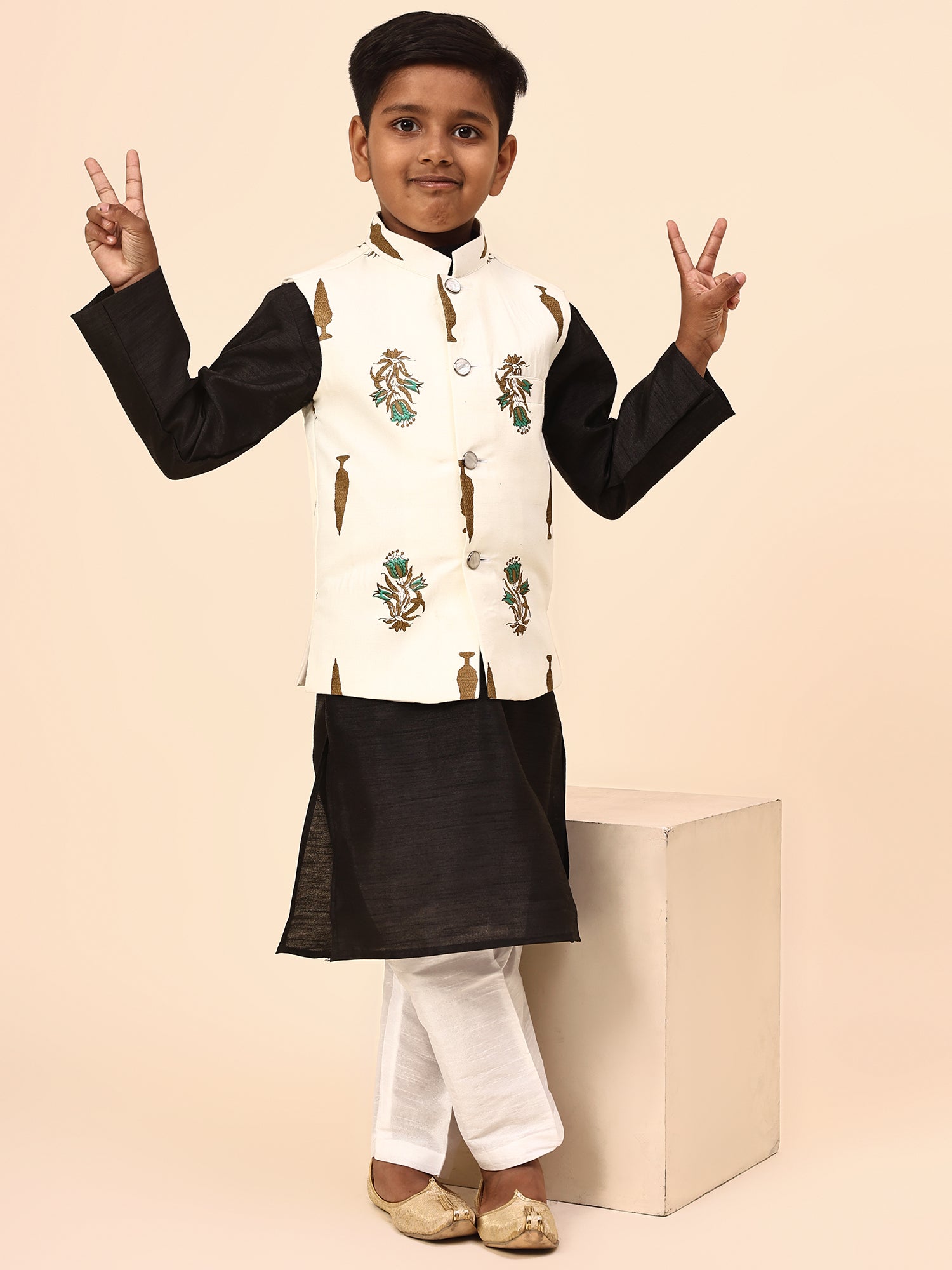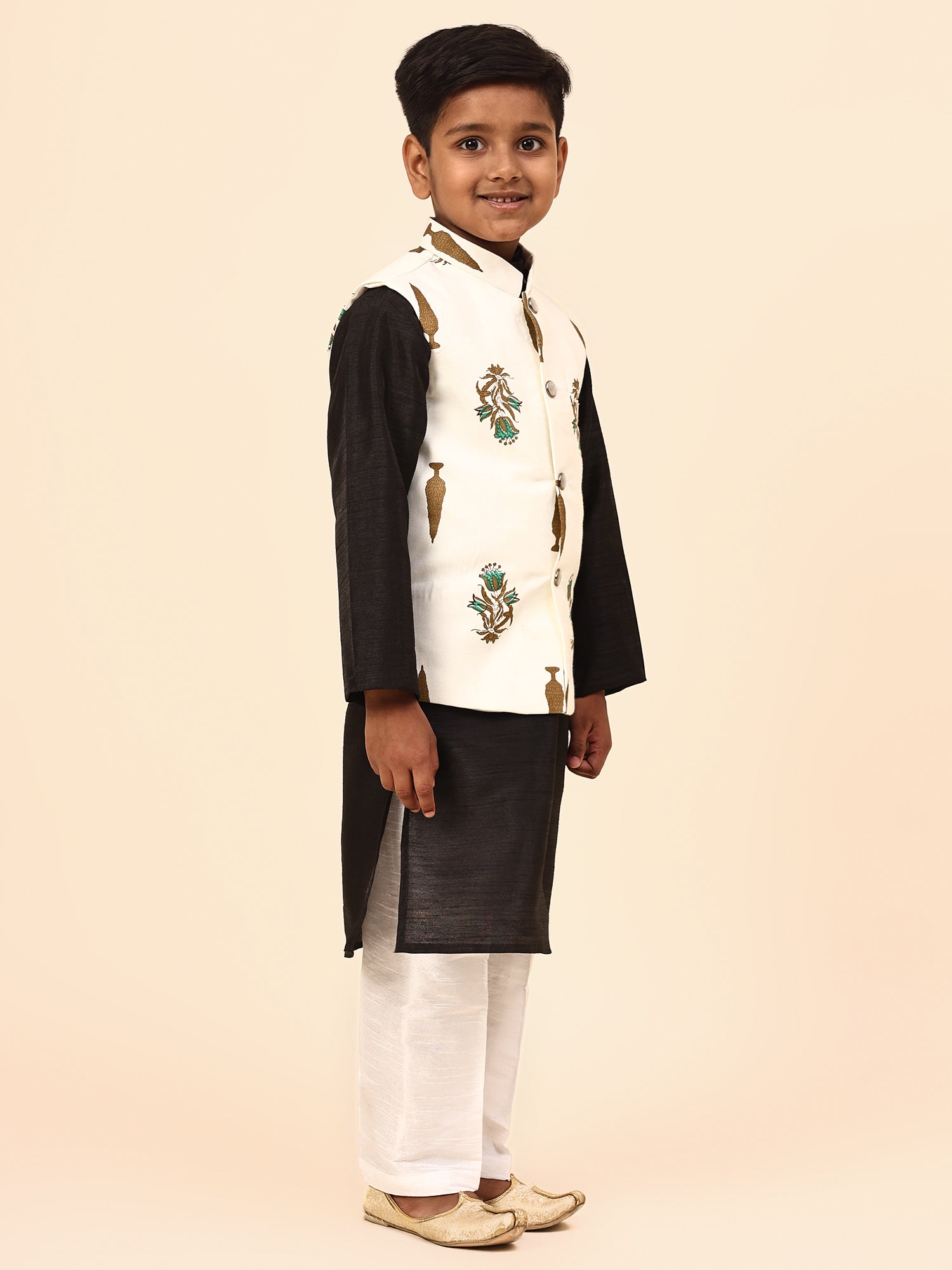 Karnam Junior - Boys Cream Foliage Printed Jacket Set
