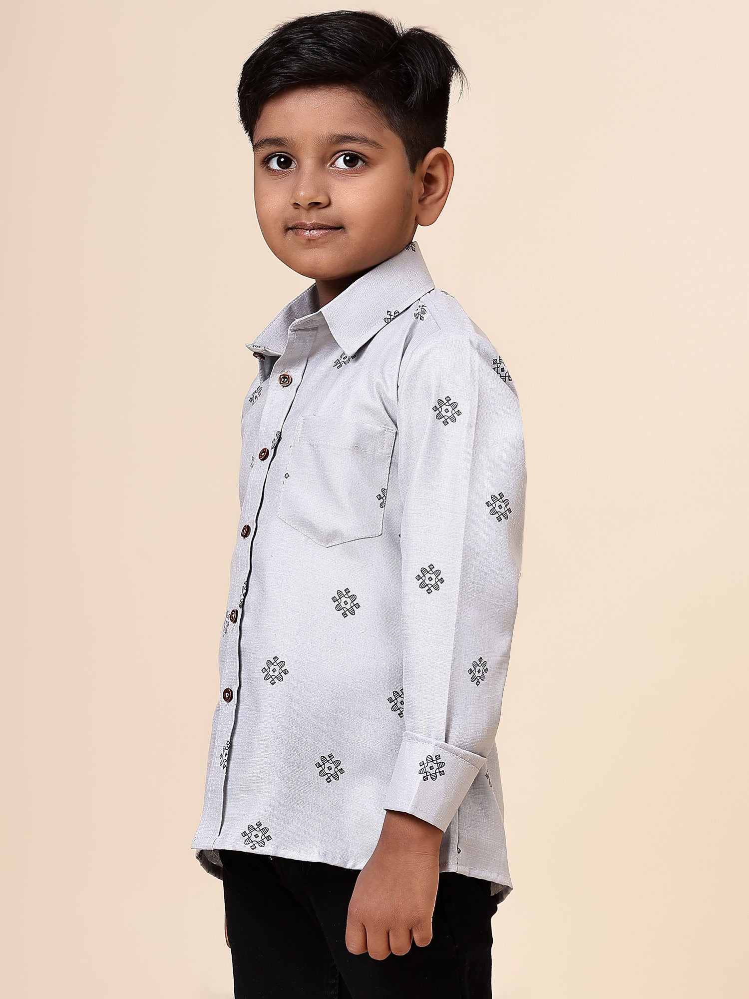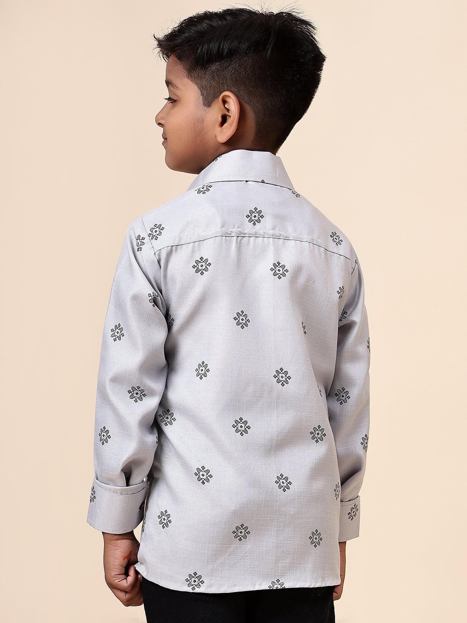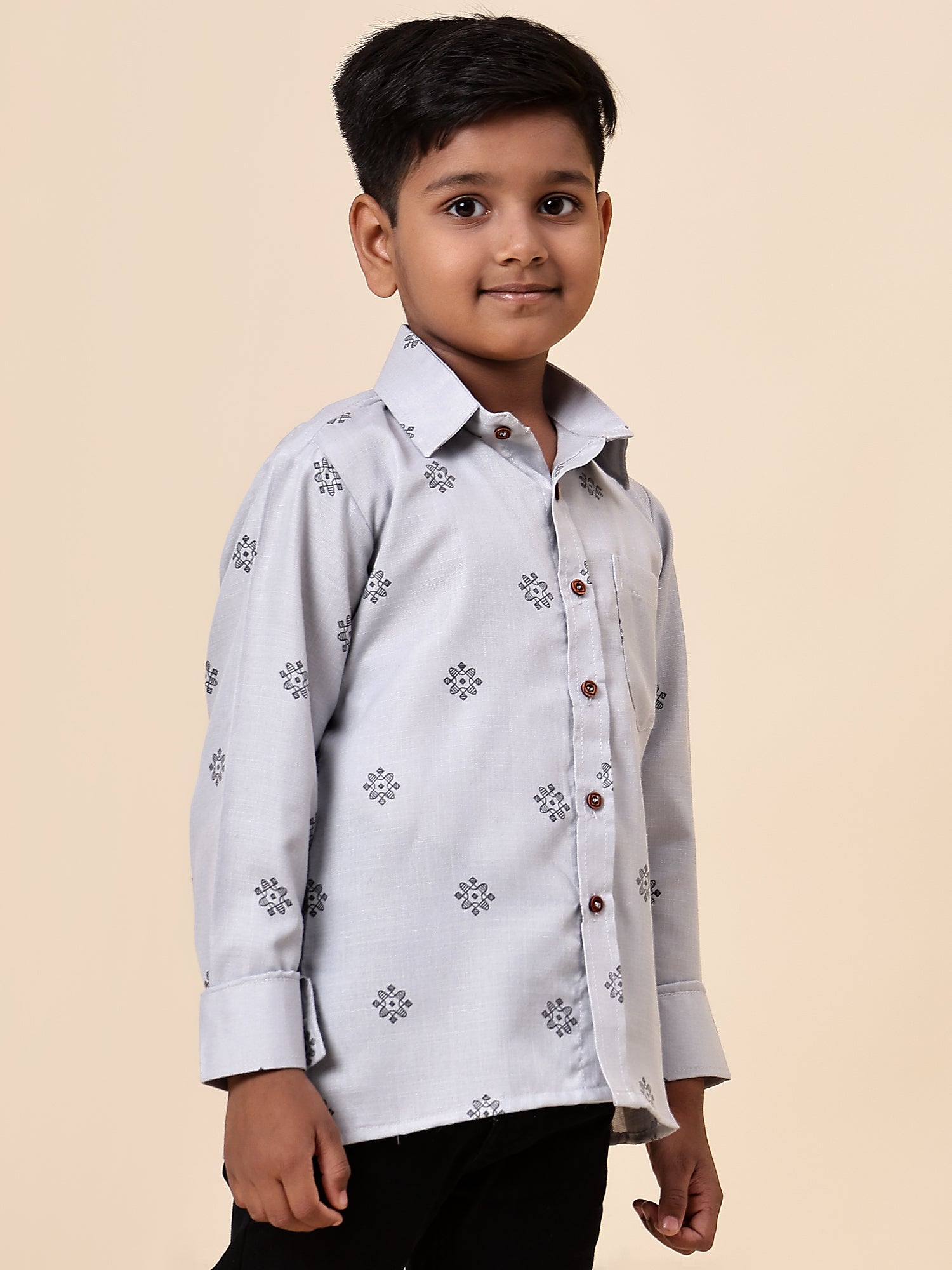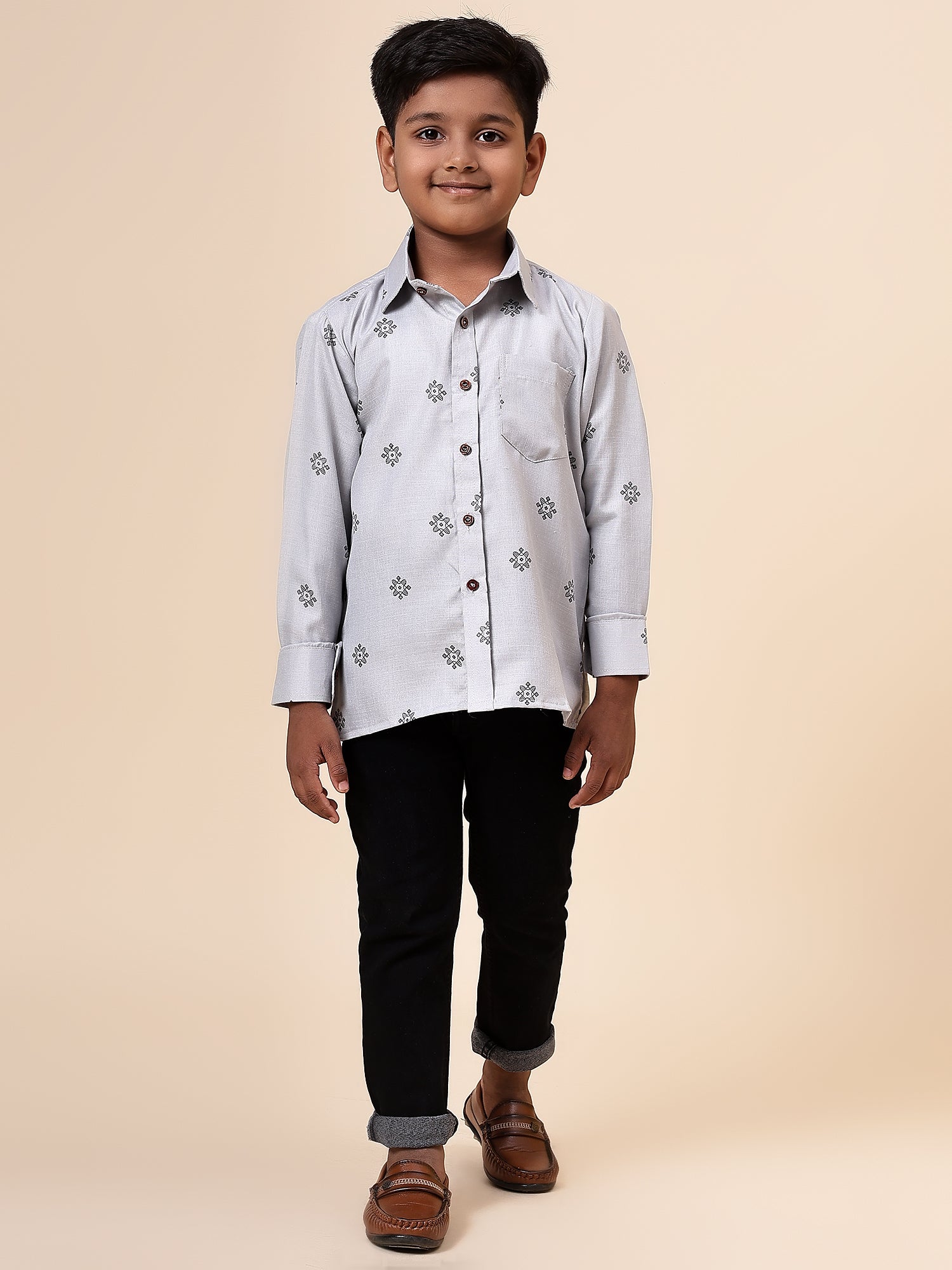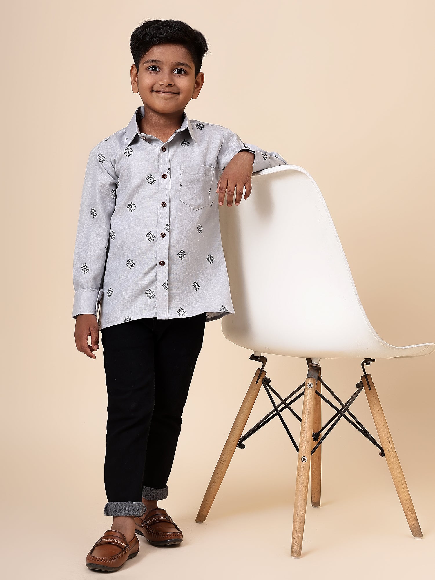 Karnam Junior - Boys Grey Printed Cotton Shirt