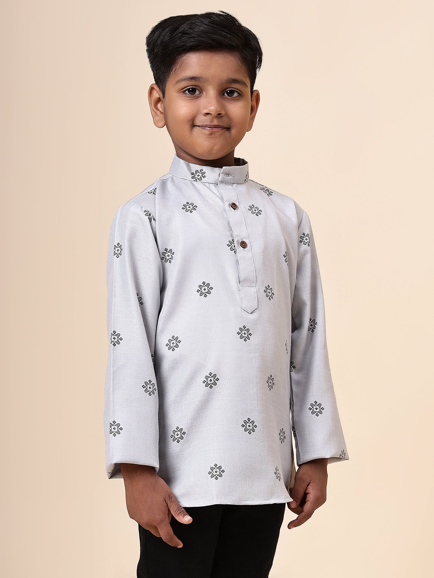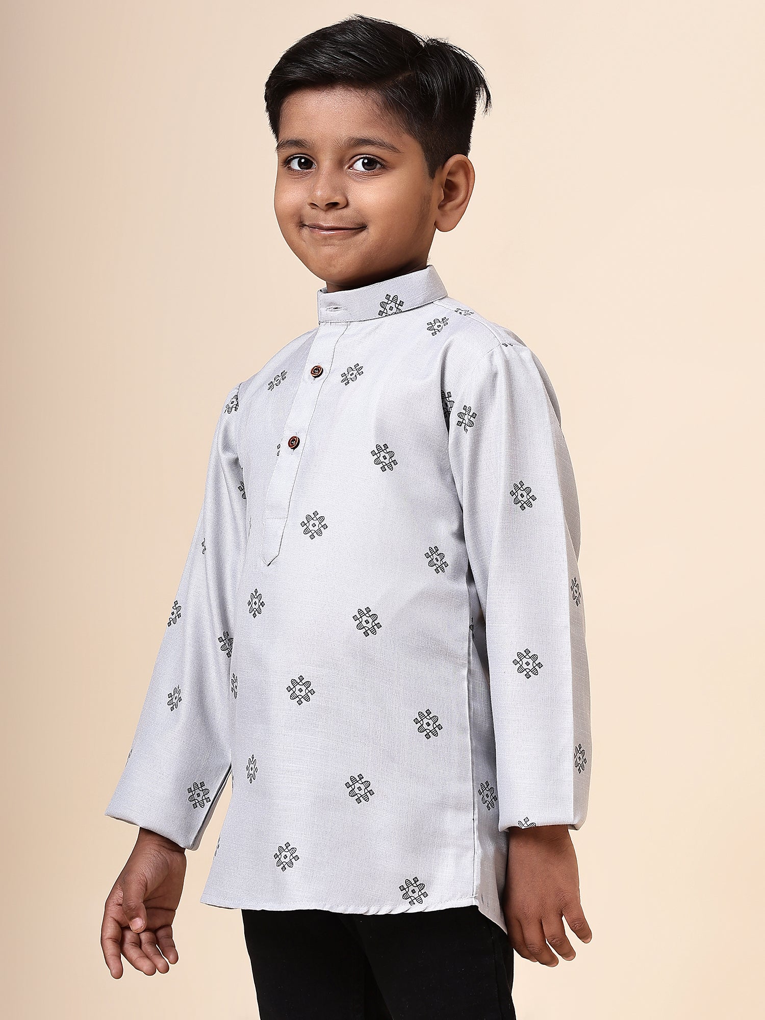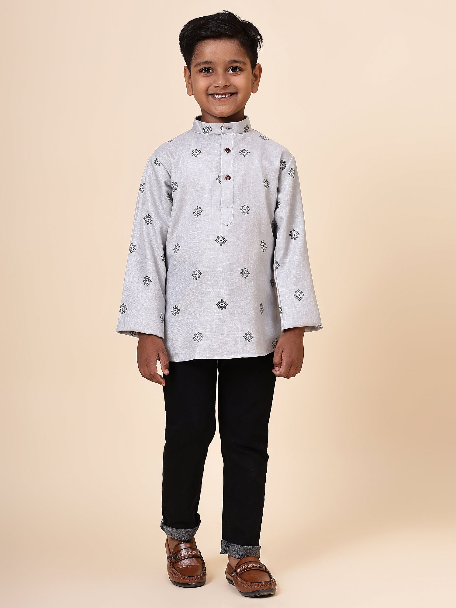 Karnam Junior - Boys Grey Printed Cotton Short Kurta
