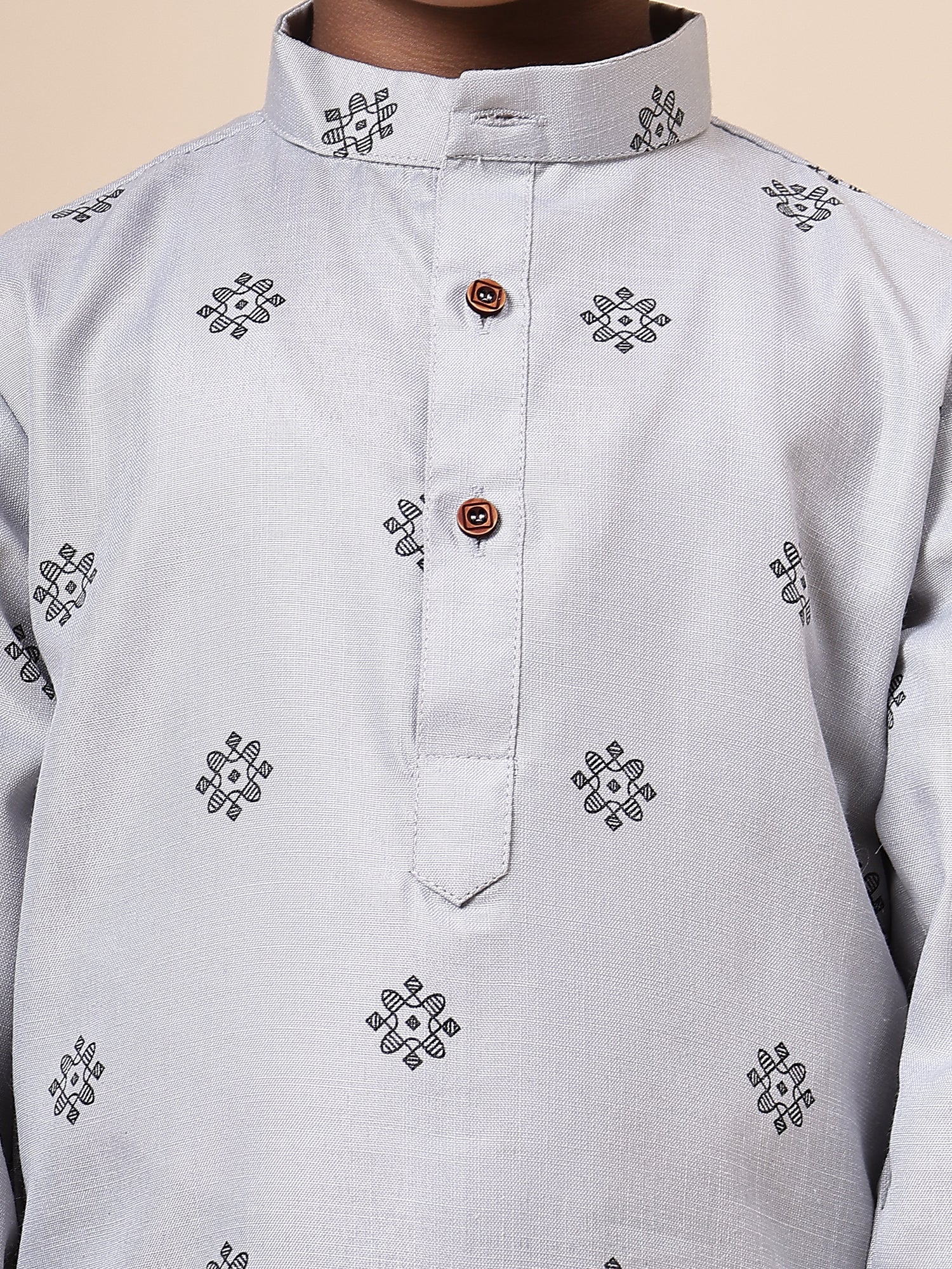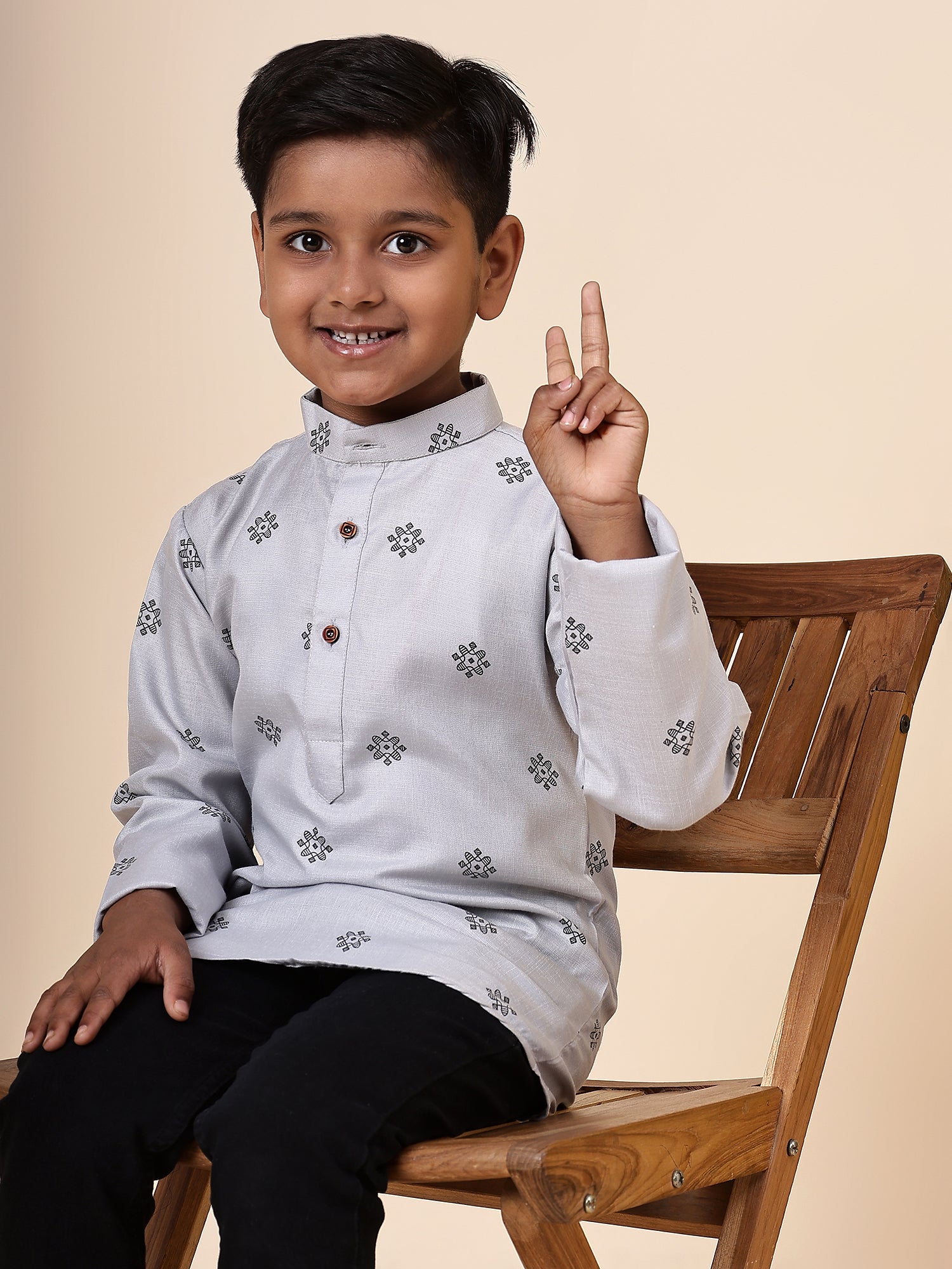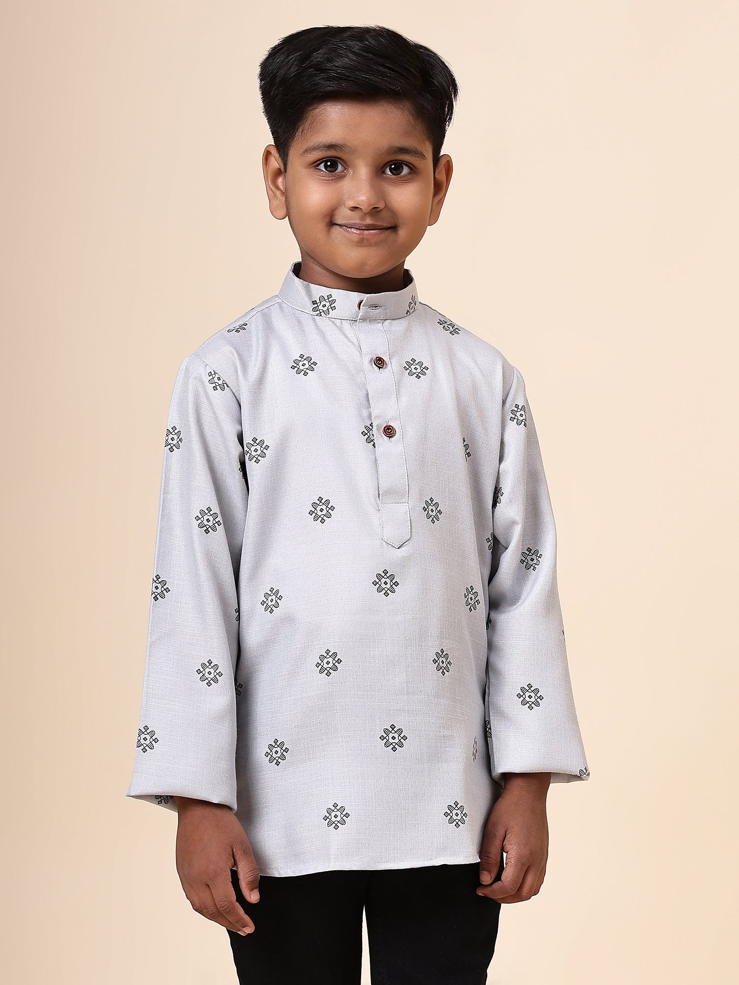 Karnam Junior - Boys Grey Printed Cotton Short Kurta