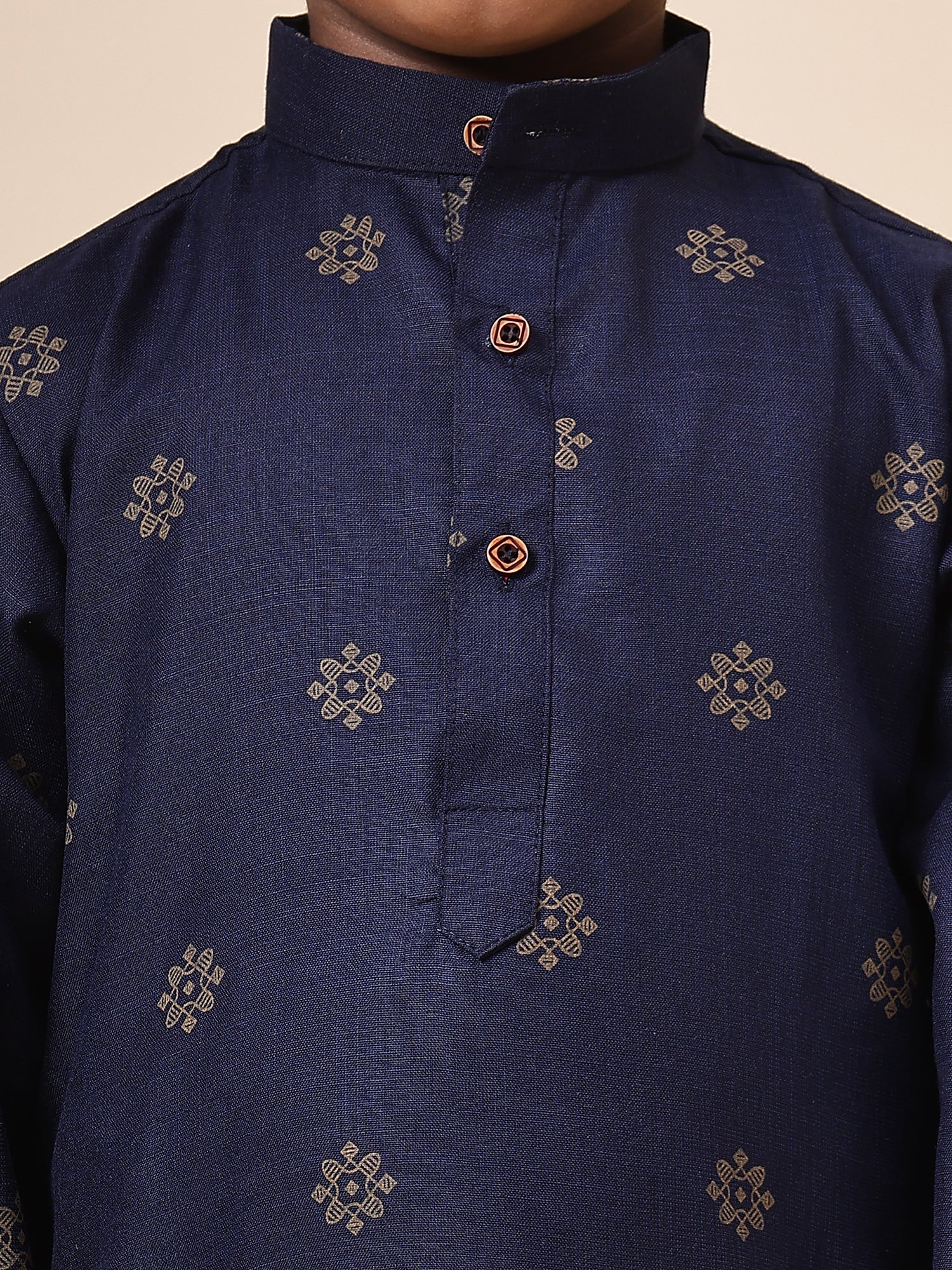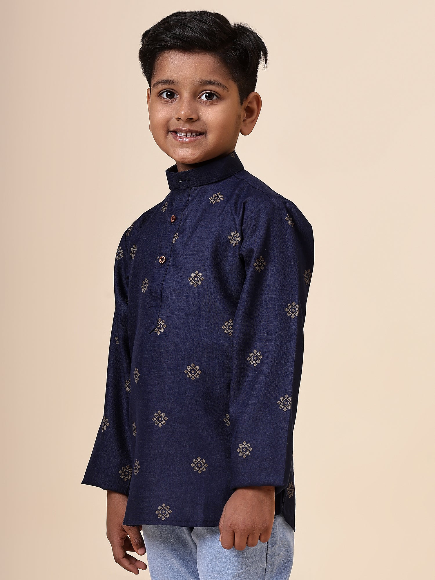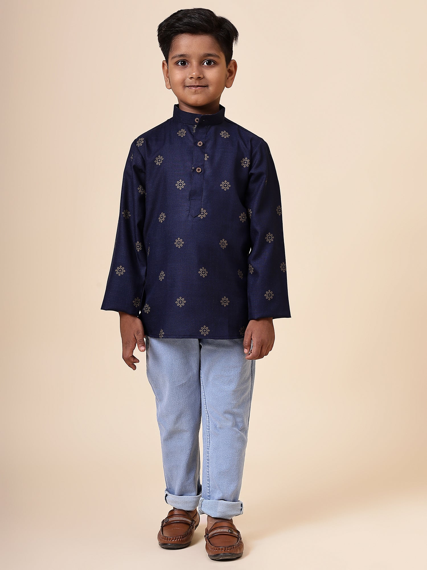 Karnam Junior - Boys Navy Blue and Gold Cotton Short Kurta