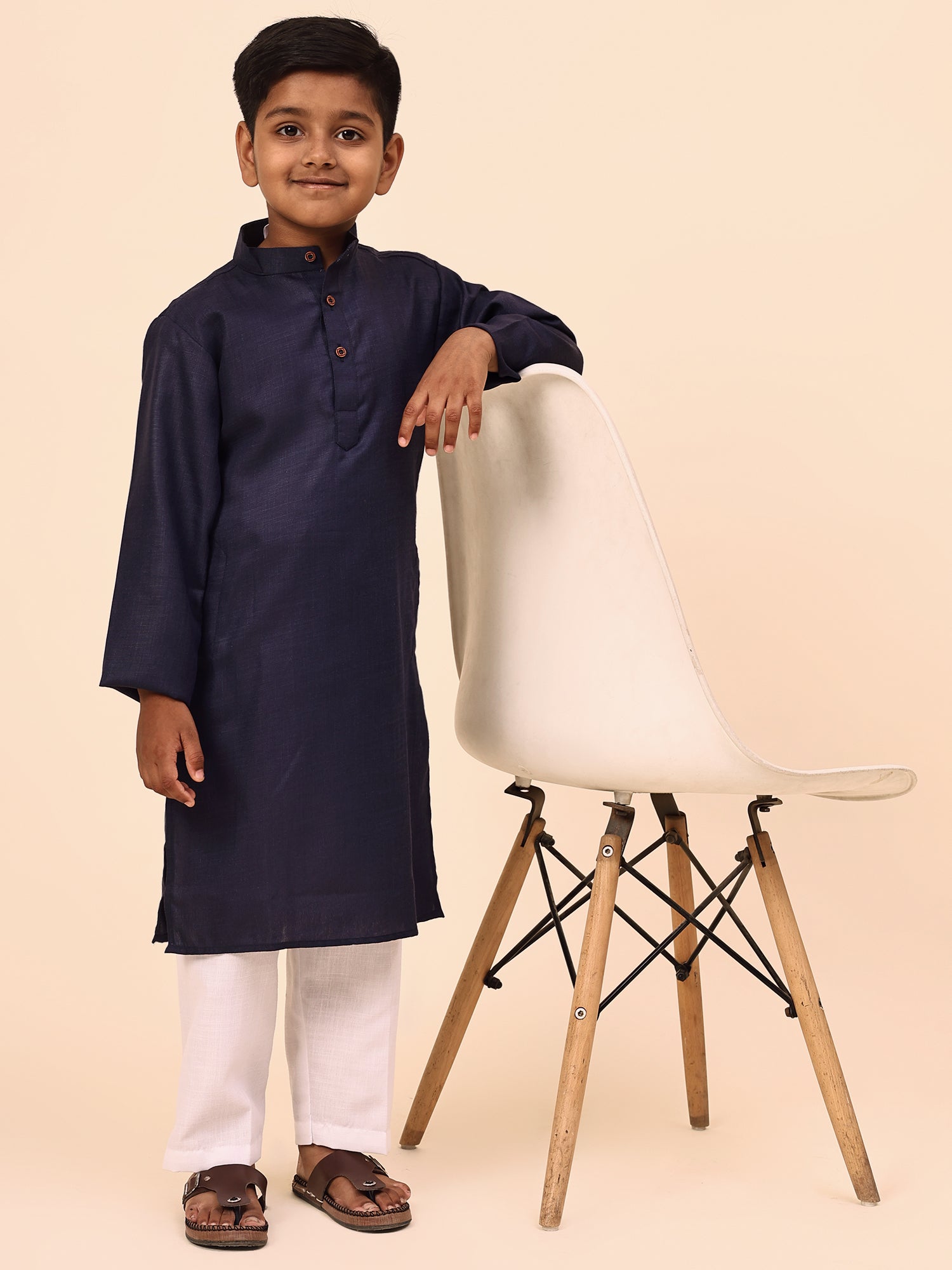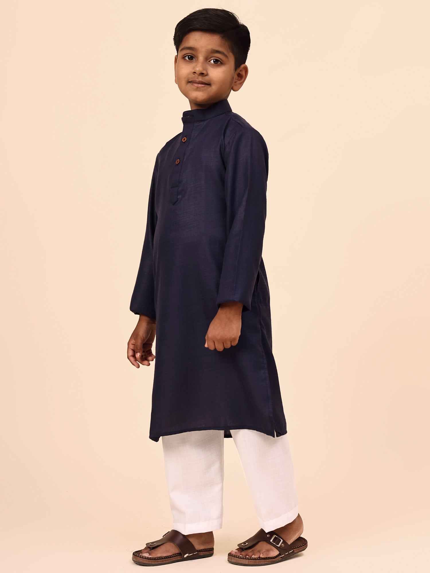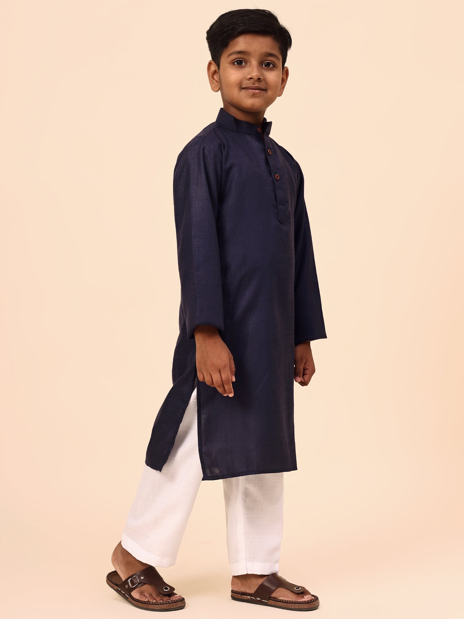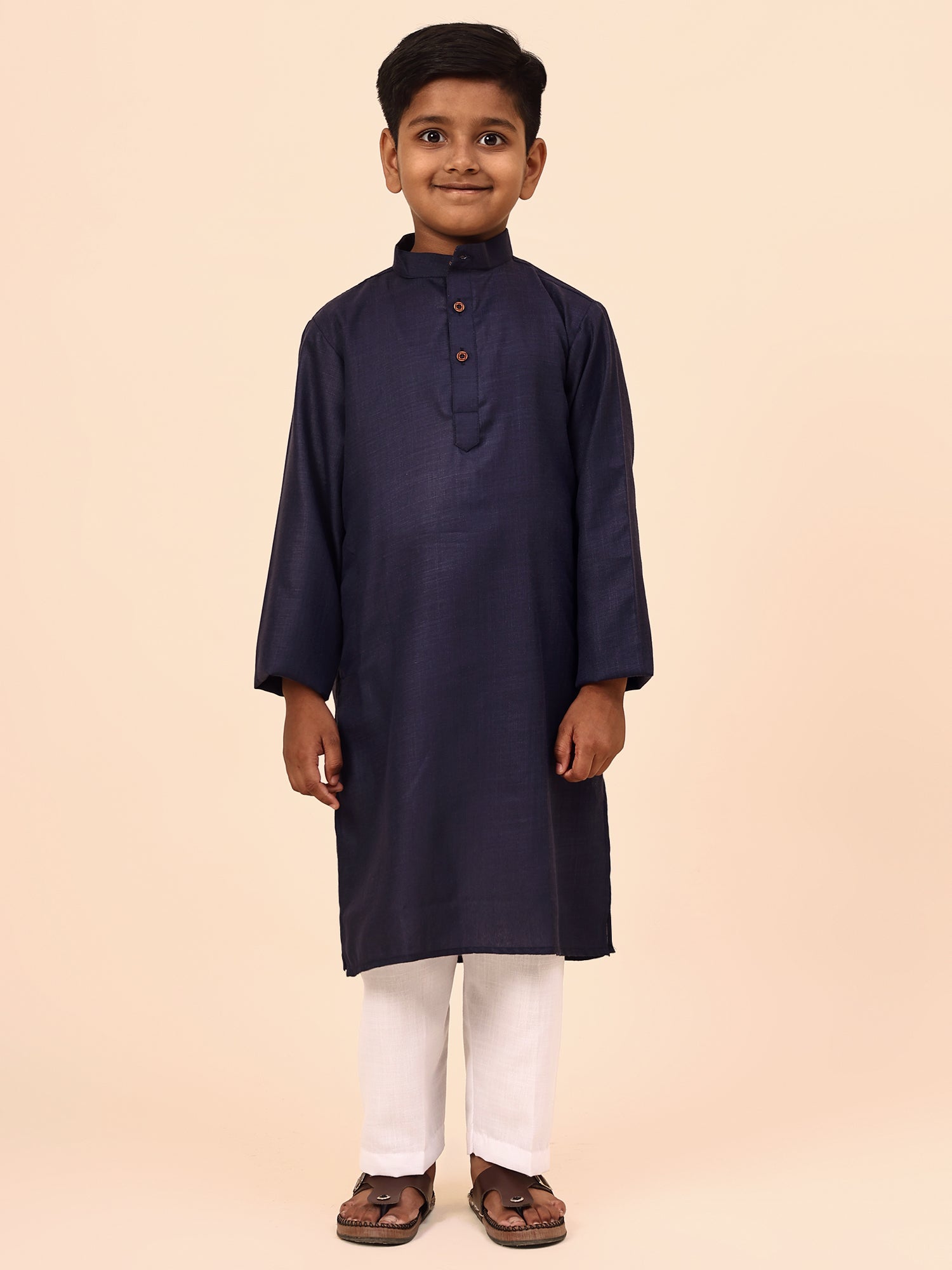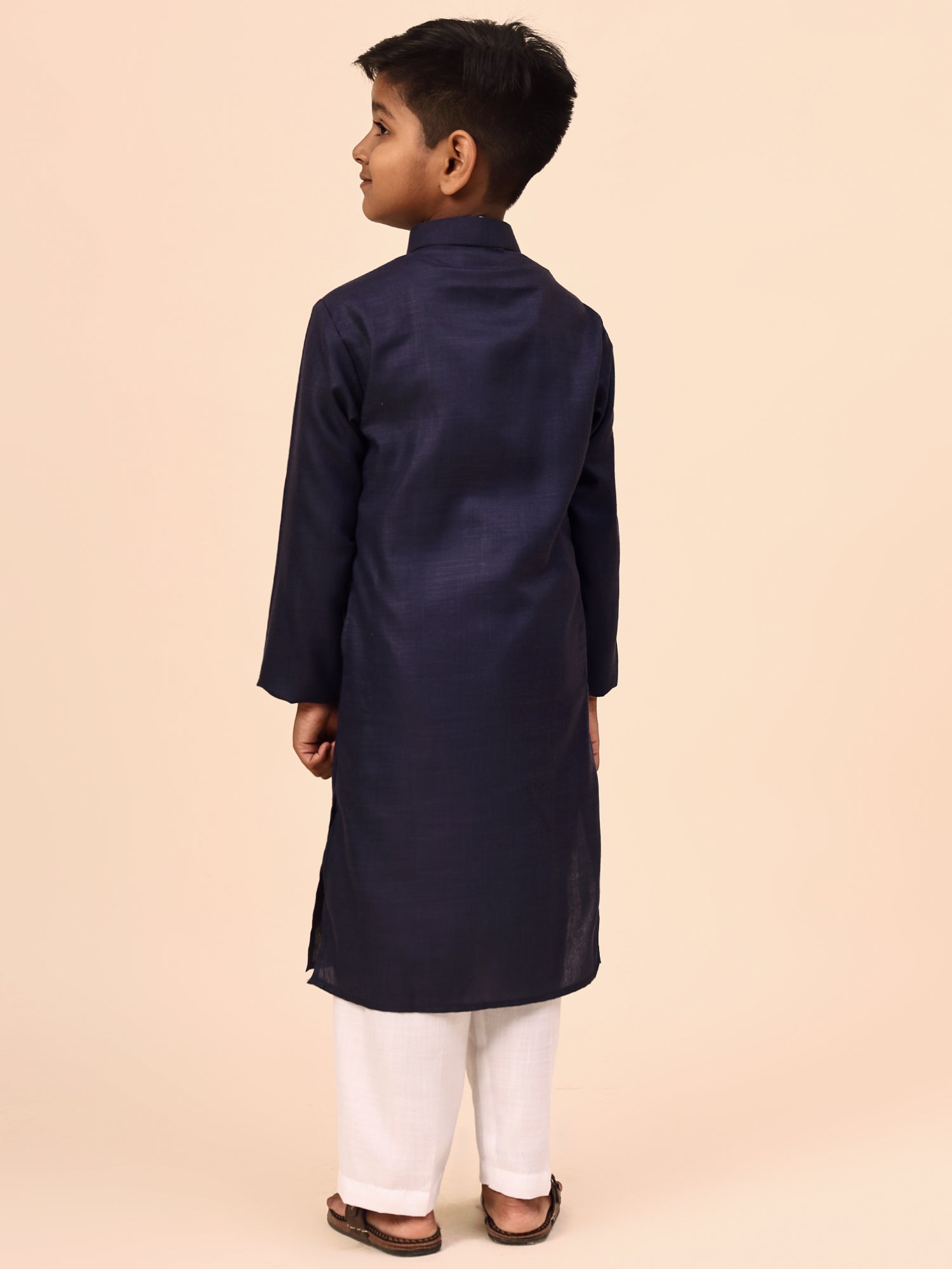 Karnam Junior - Boys Navy Blue Cotton Kurta Set
