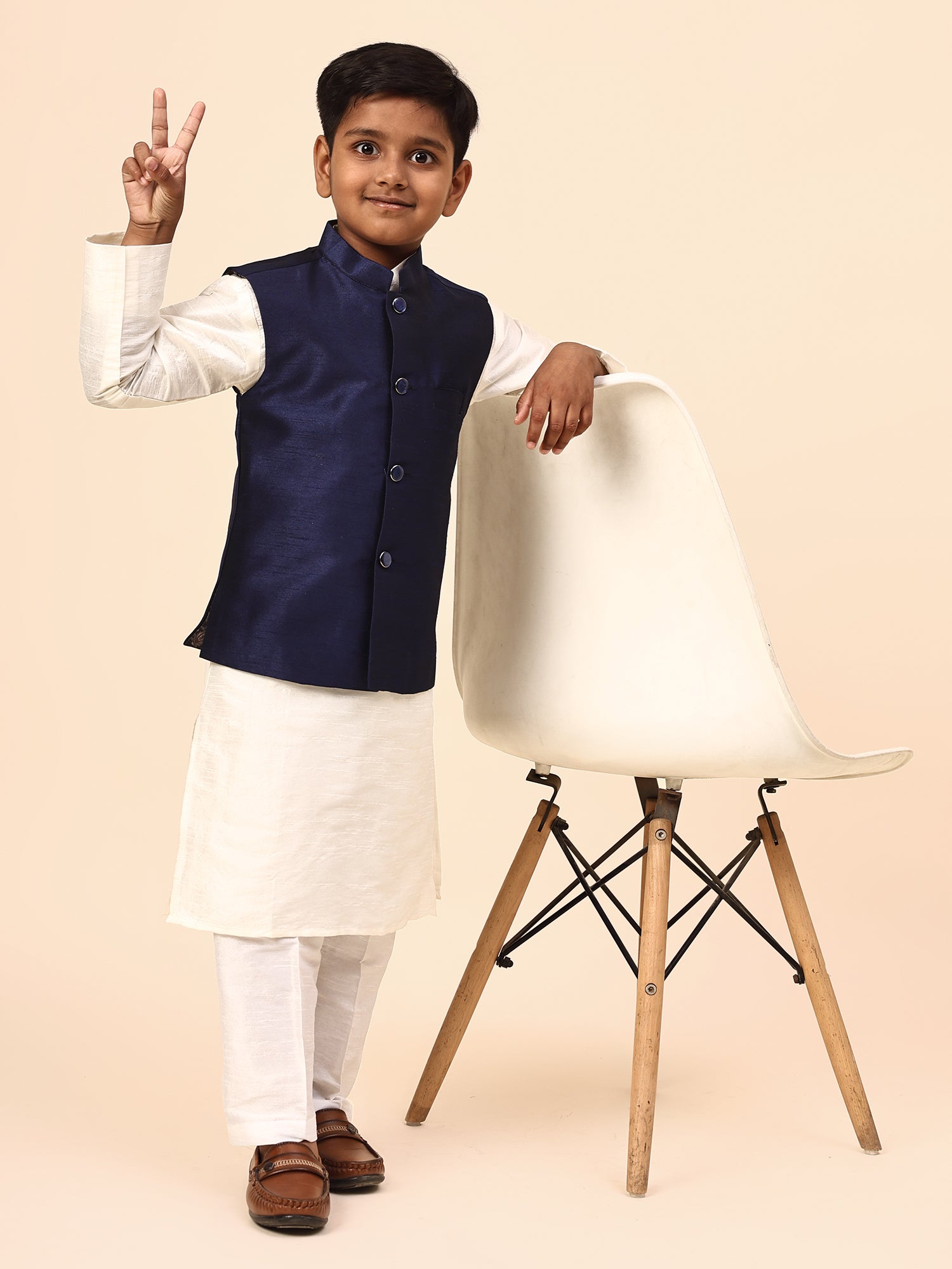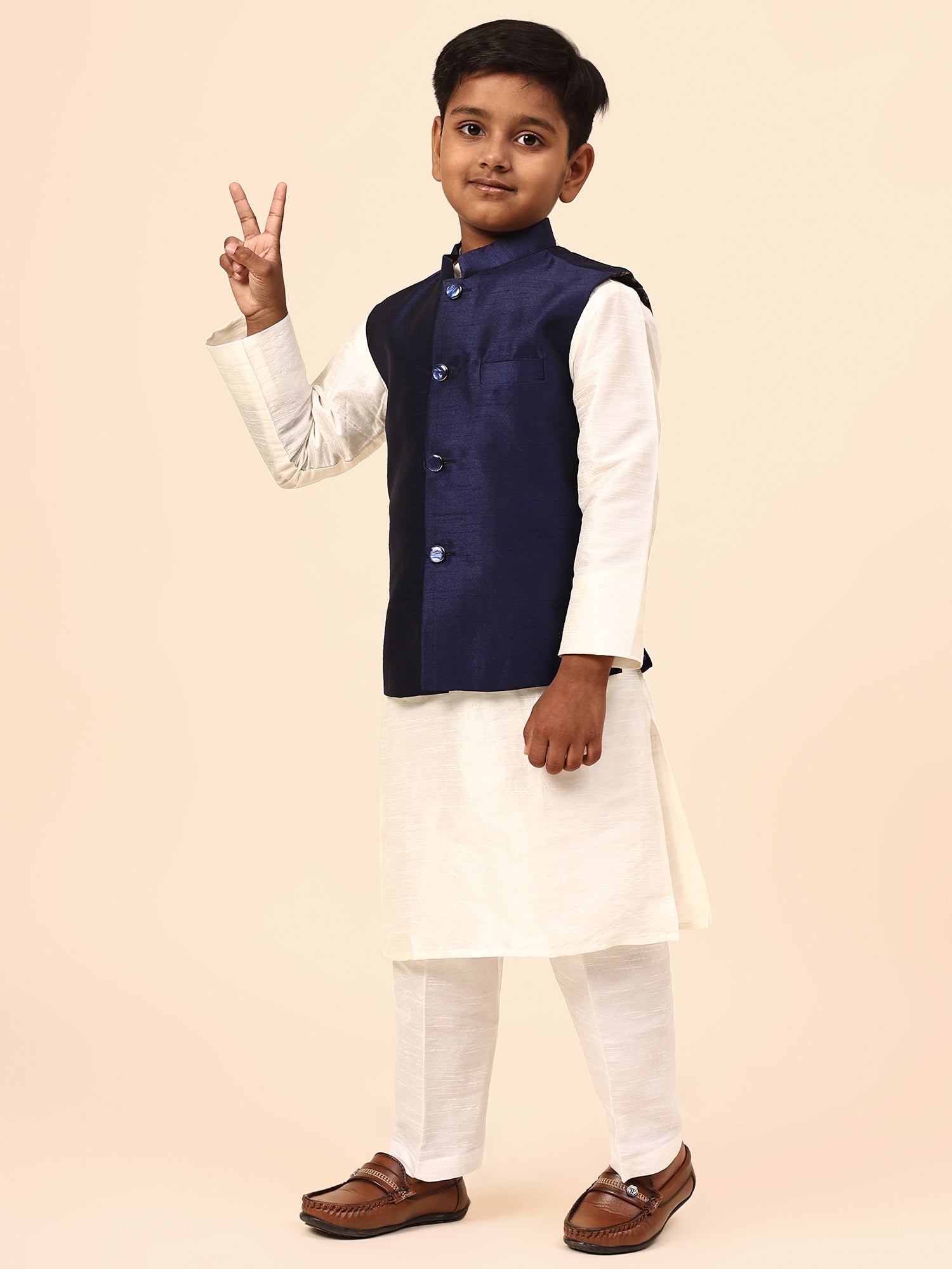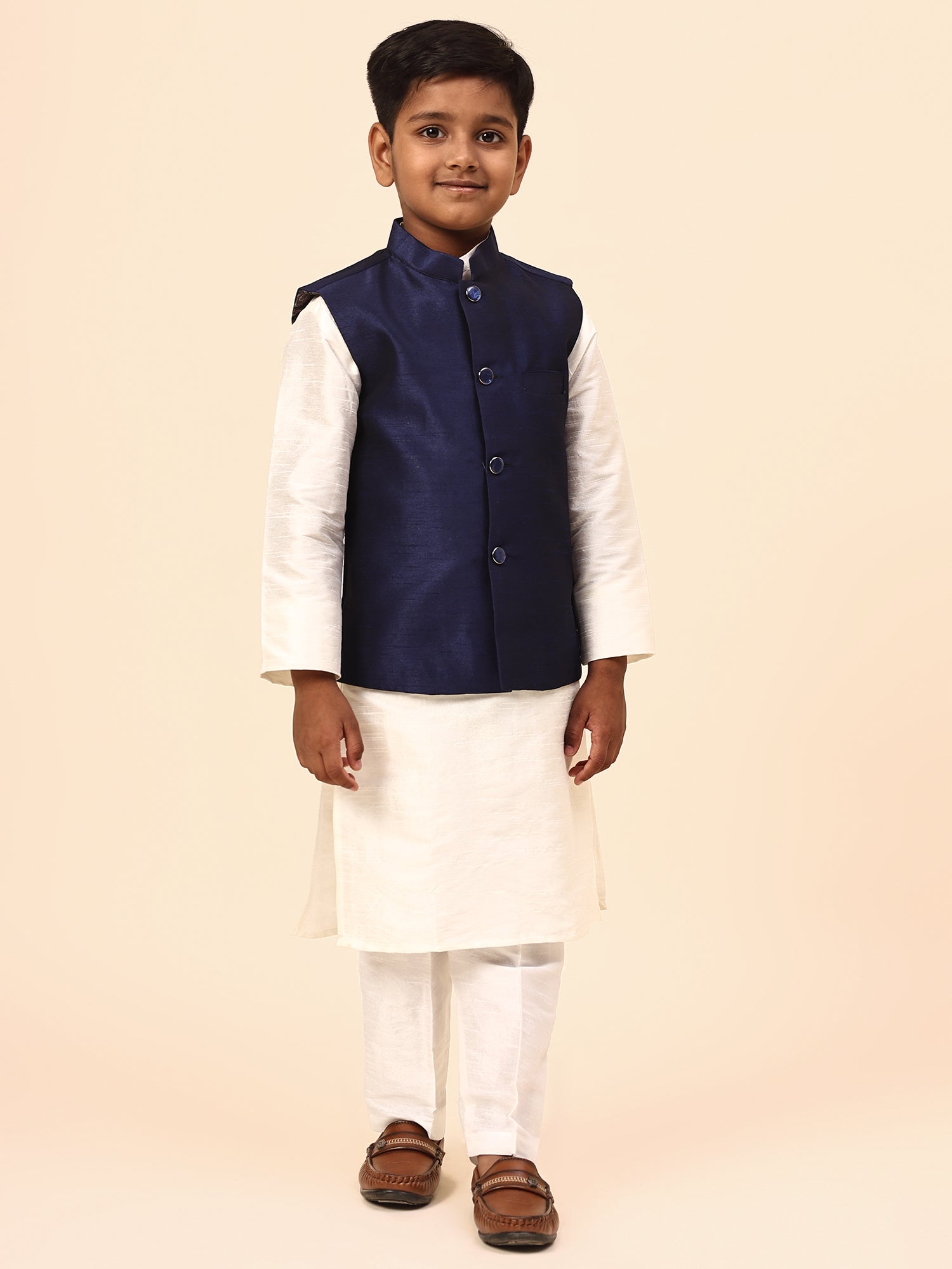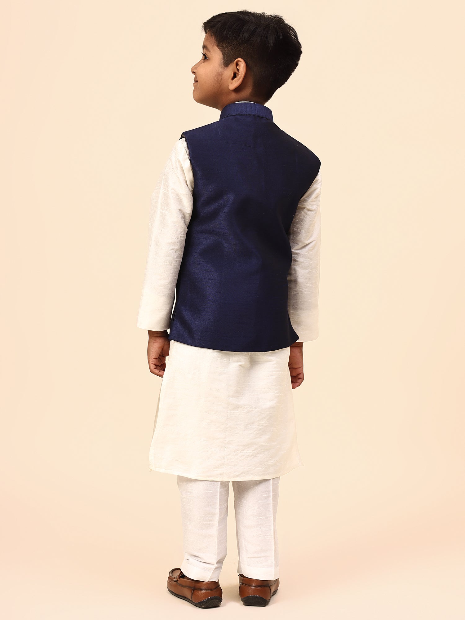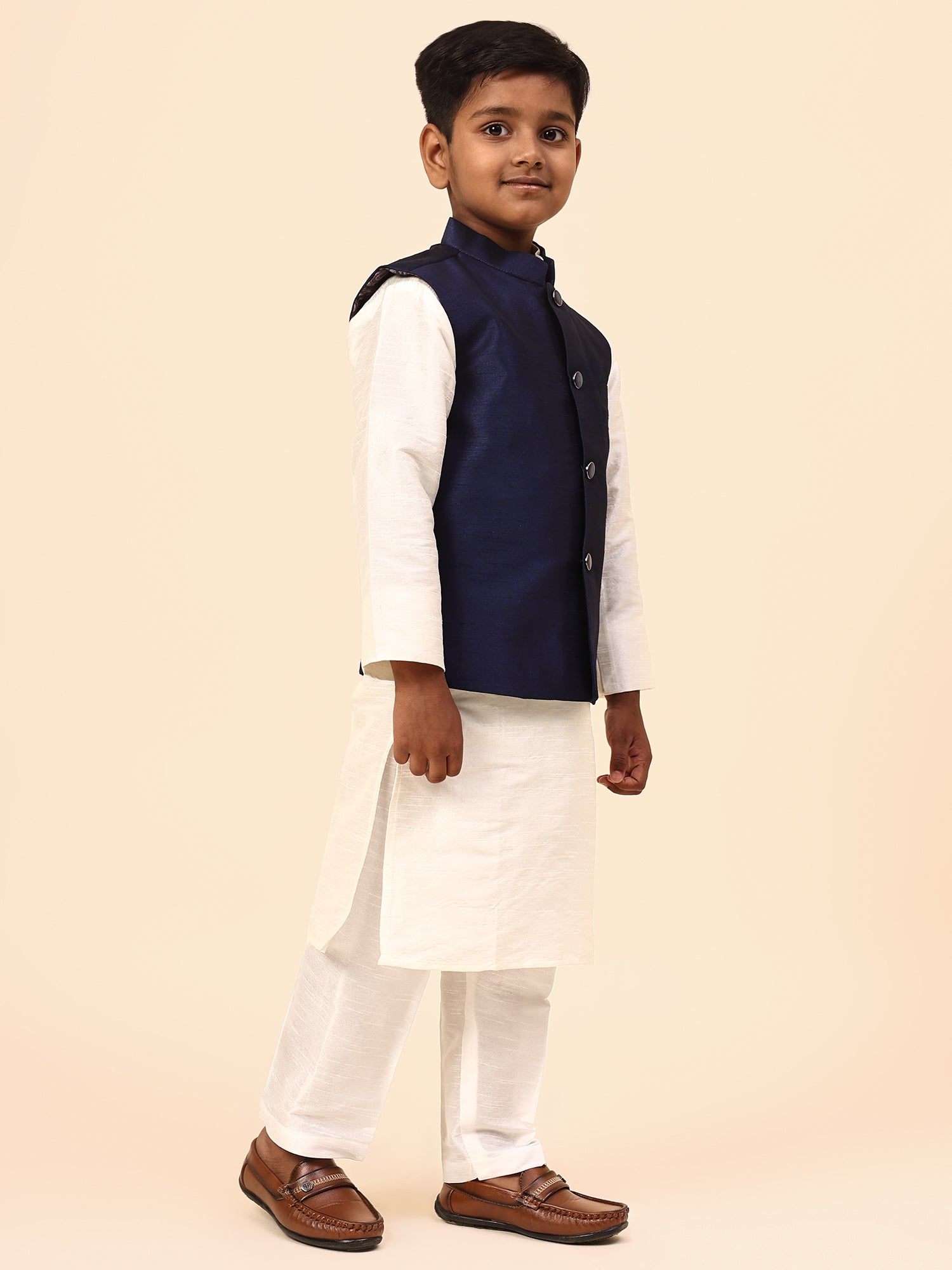 Karnam Junior - Boys Navy Blue Silk Jacket Set