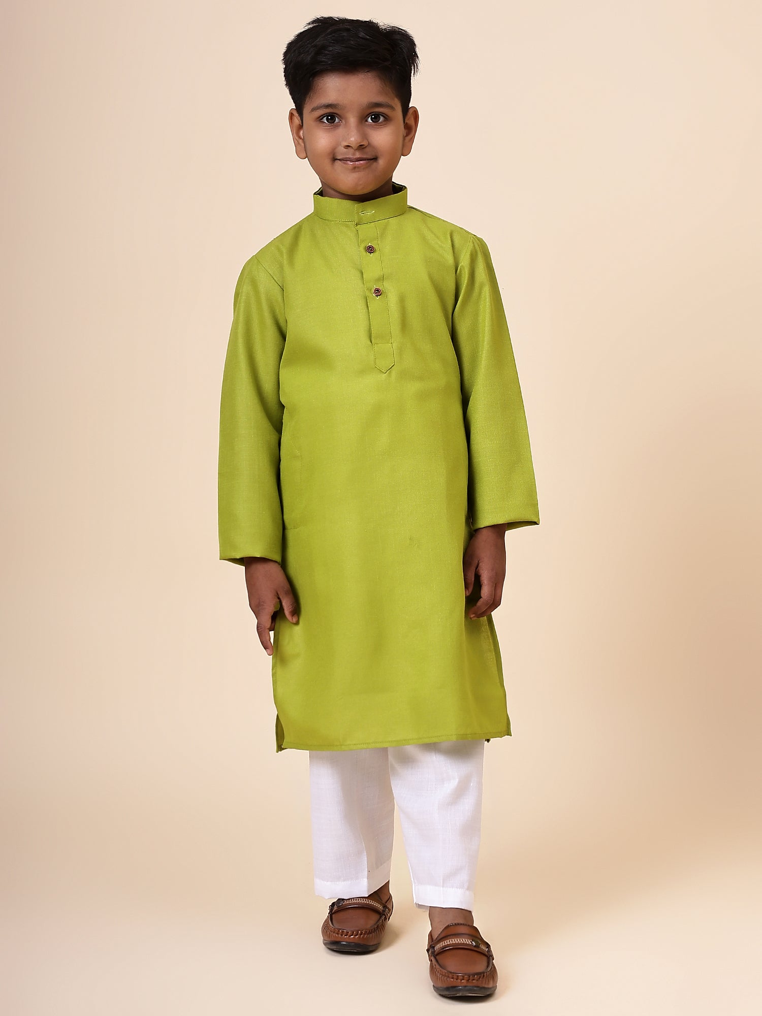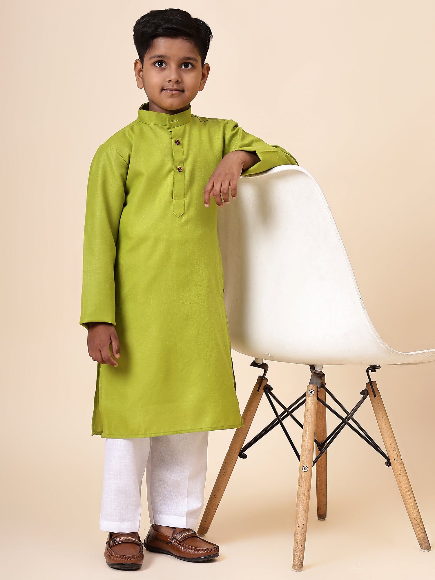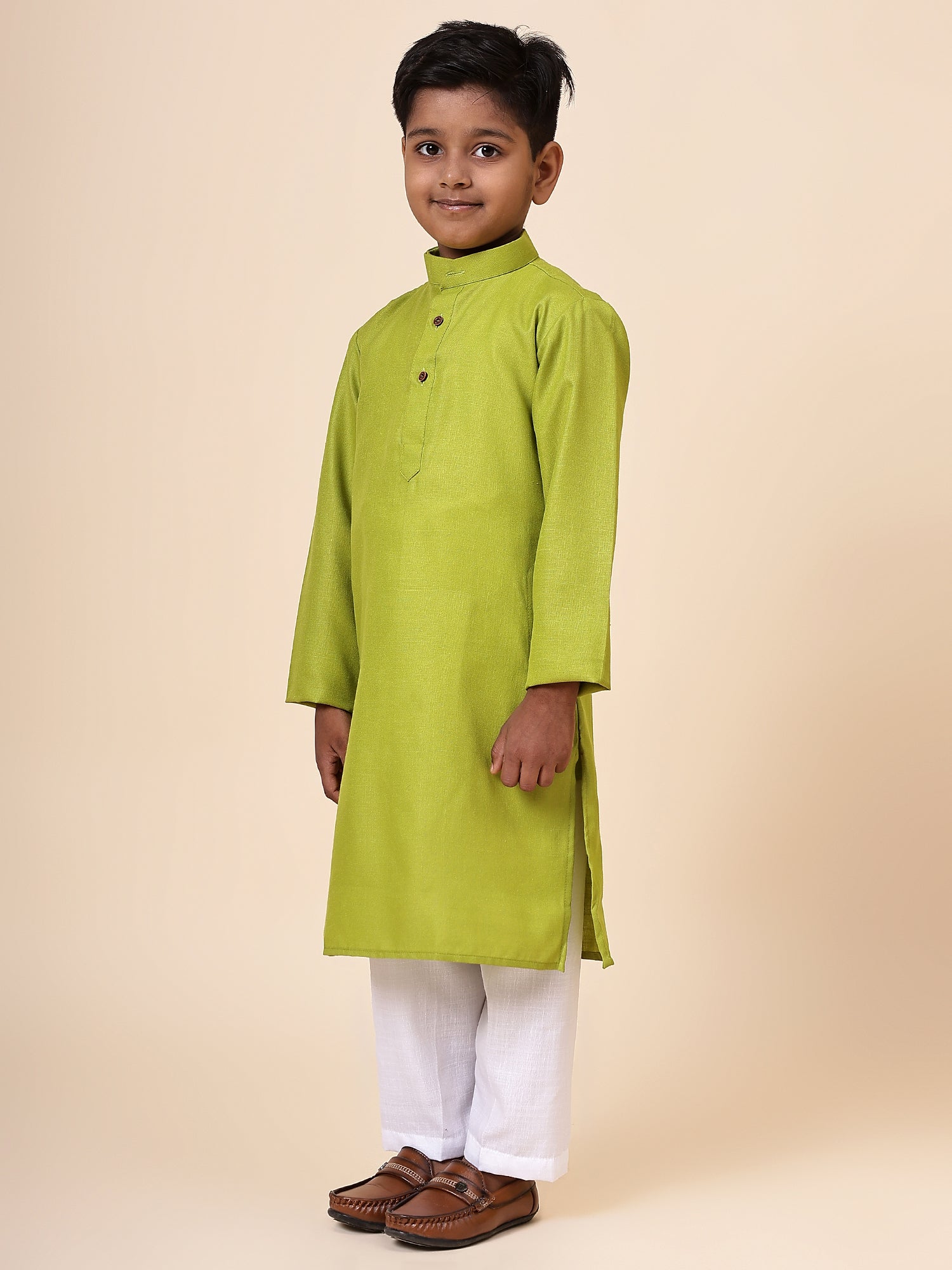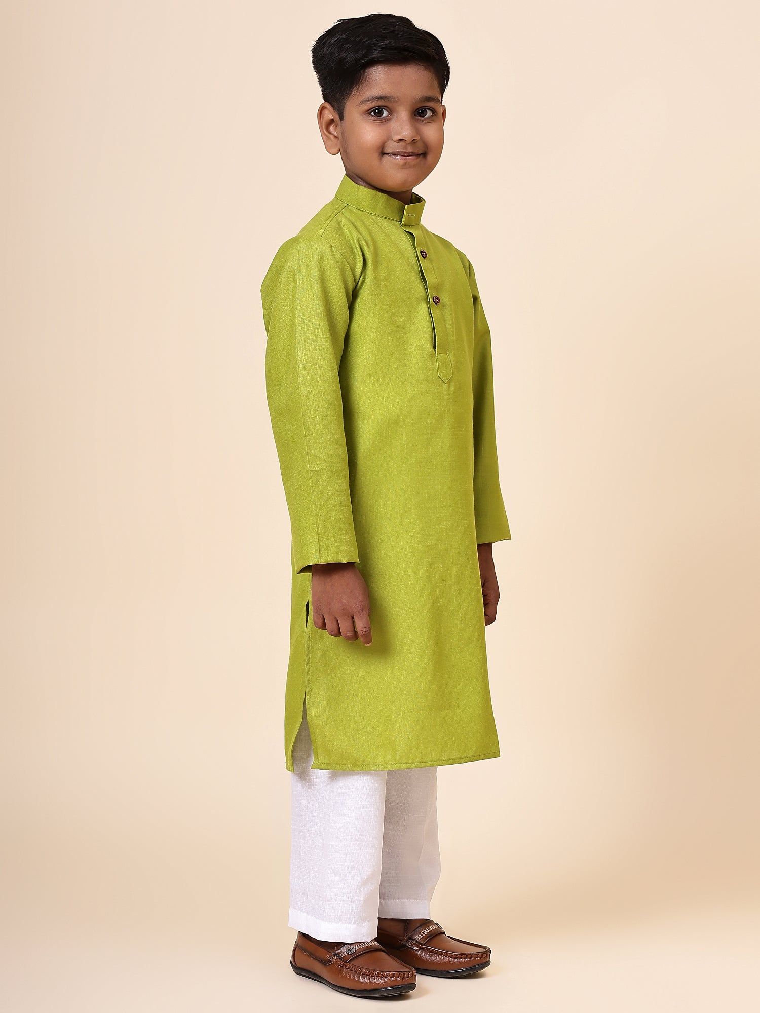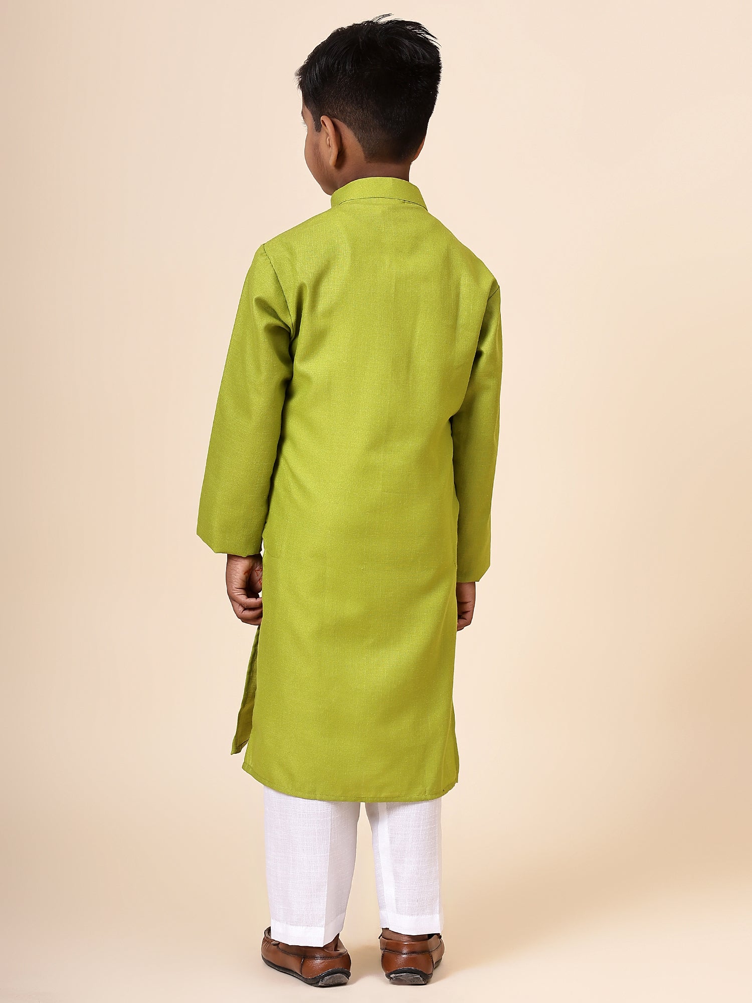Karnam Junior - Boys Olive Green Cotton Kurta Set