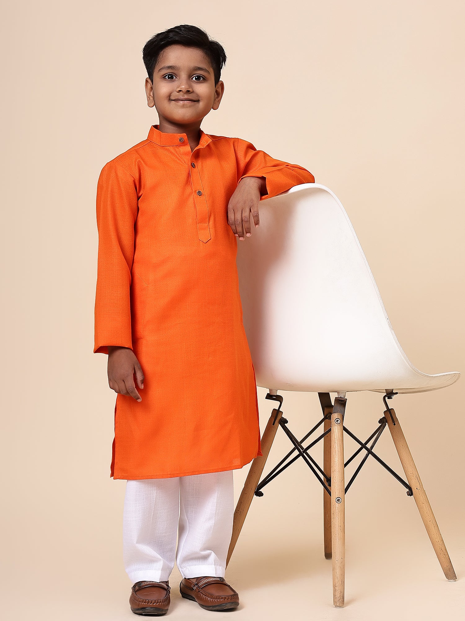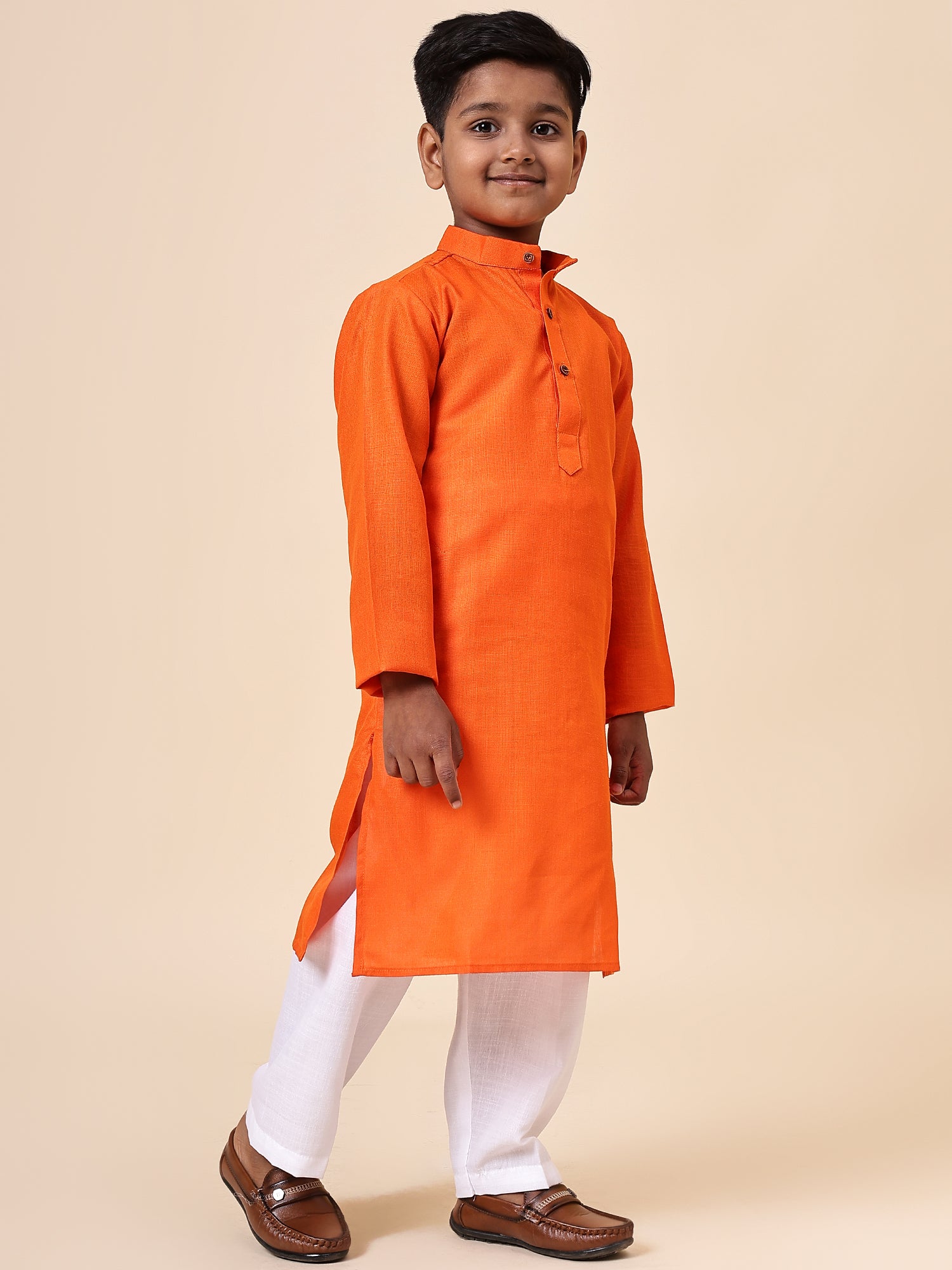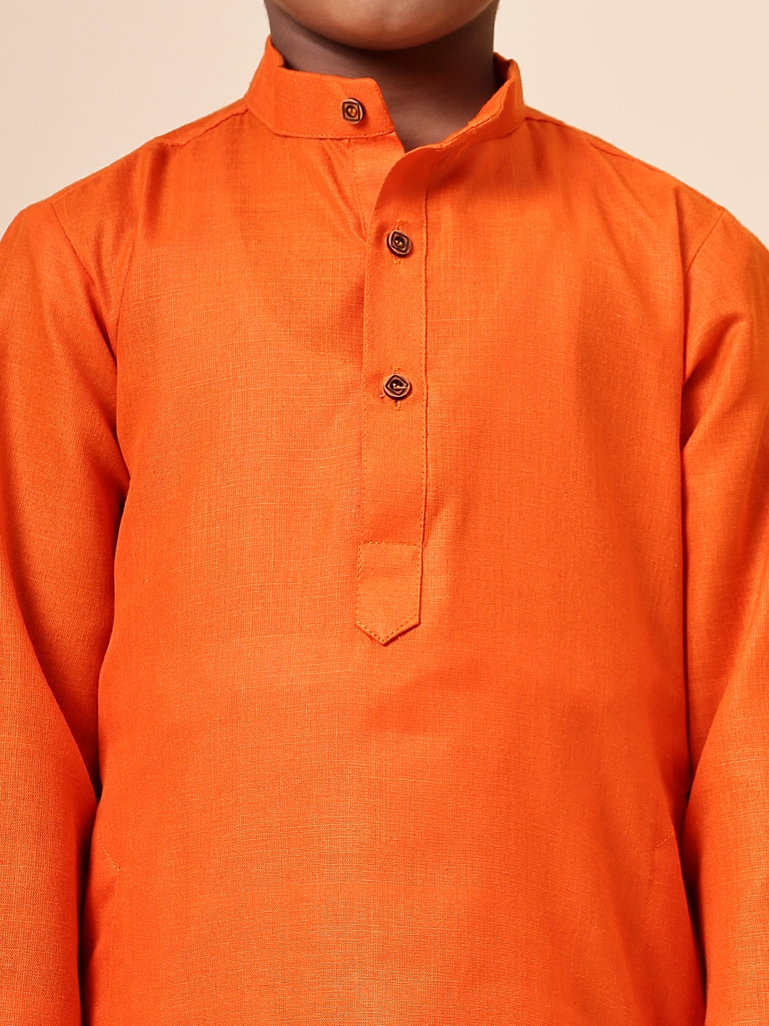 Karnam Junior - Boys Orange Cotton Kurta Set