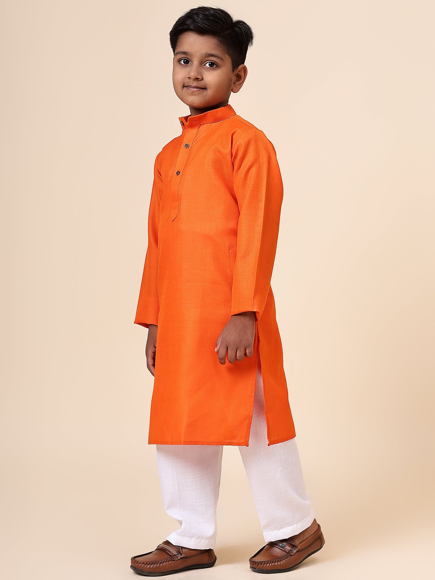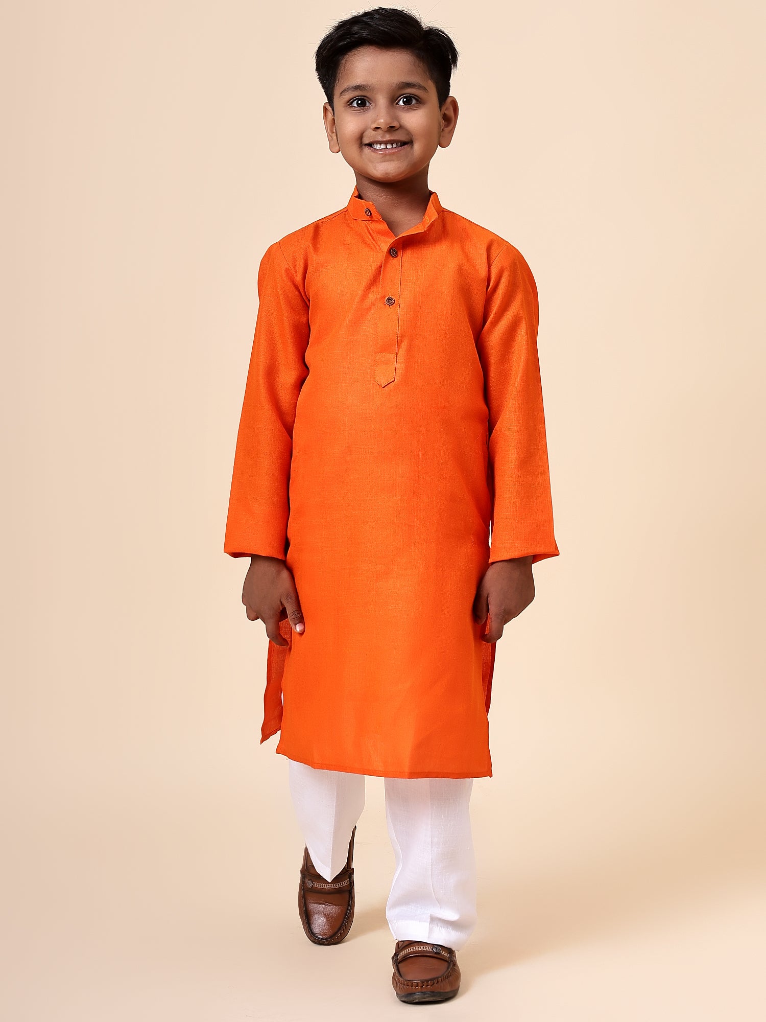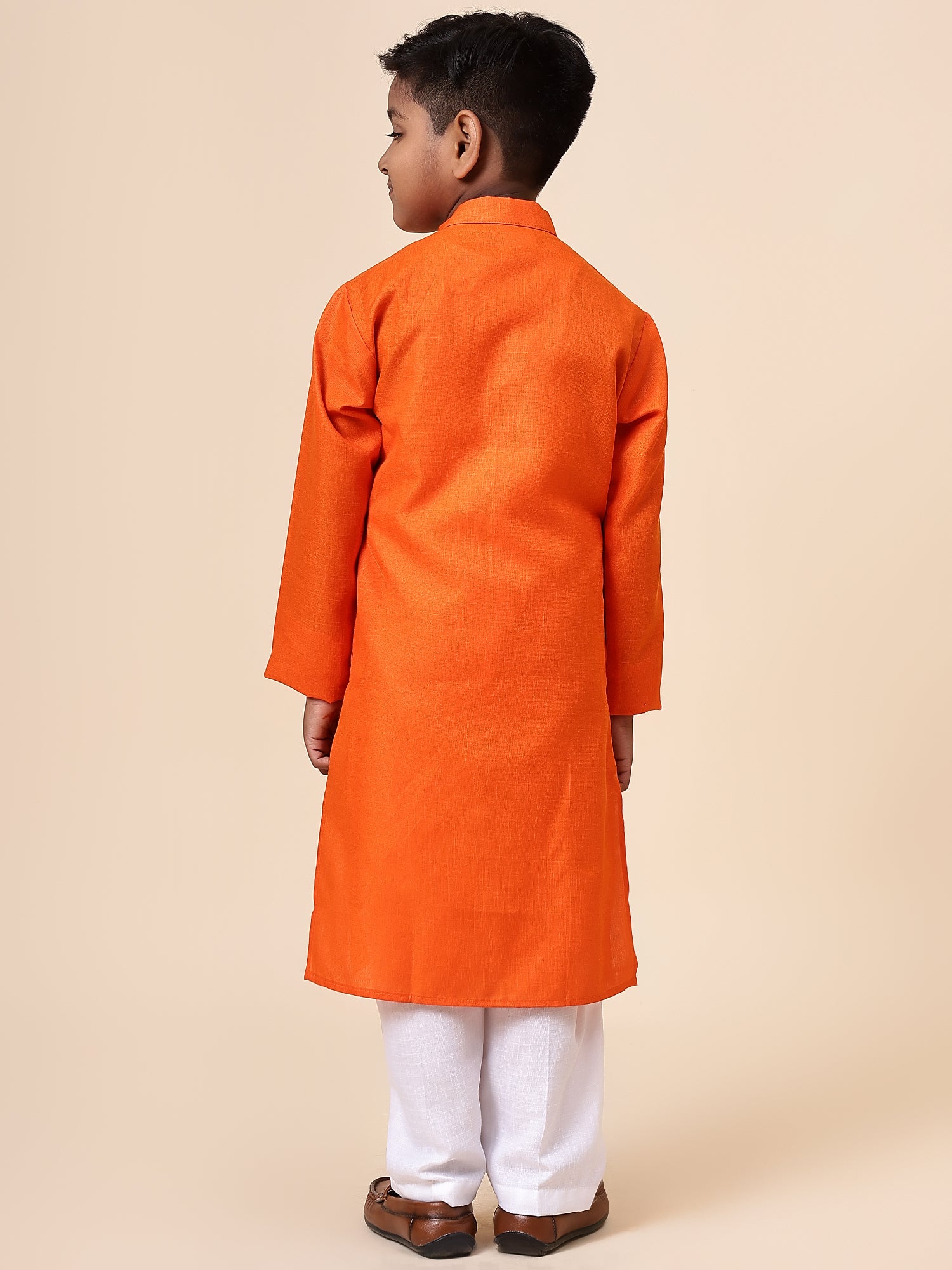 Karnam Junior - Boys Orange Cotton Kurta Set