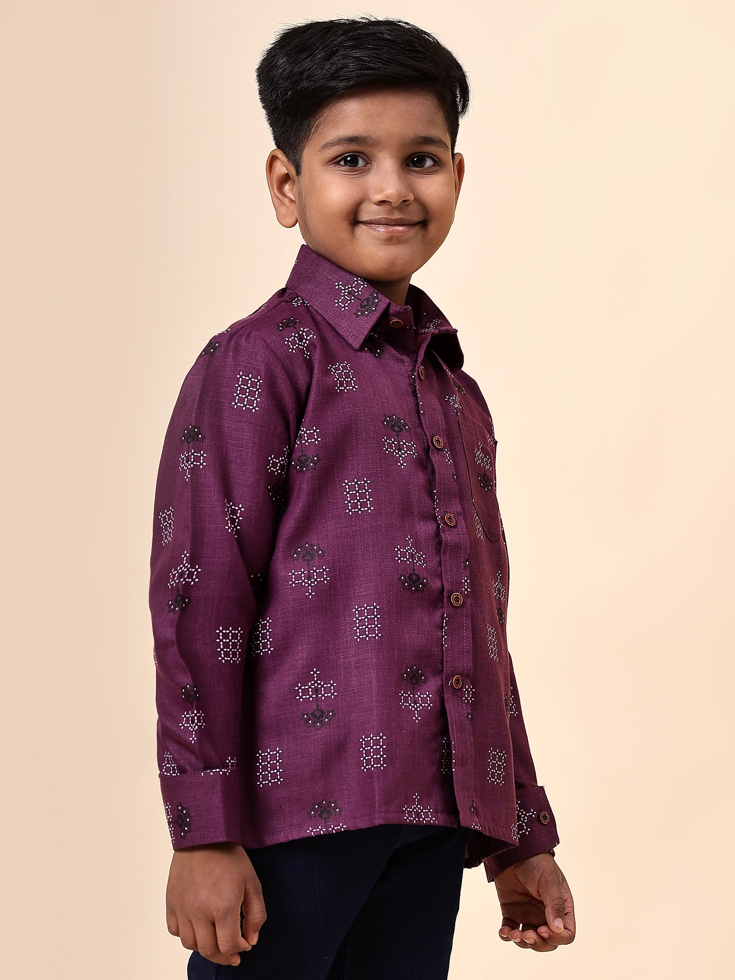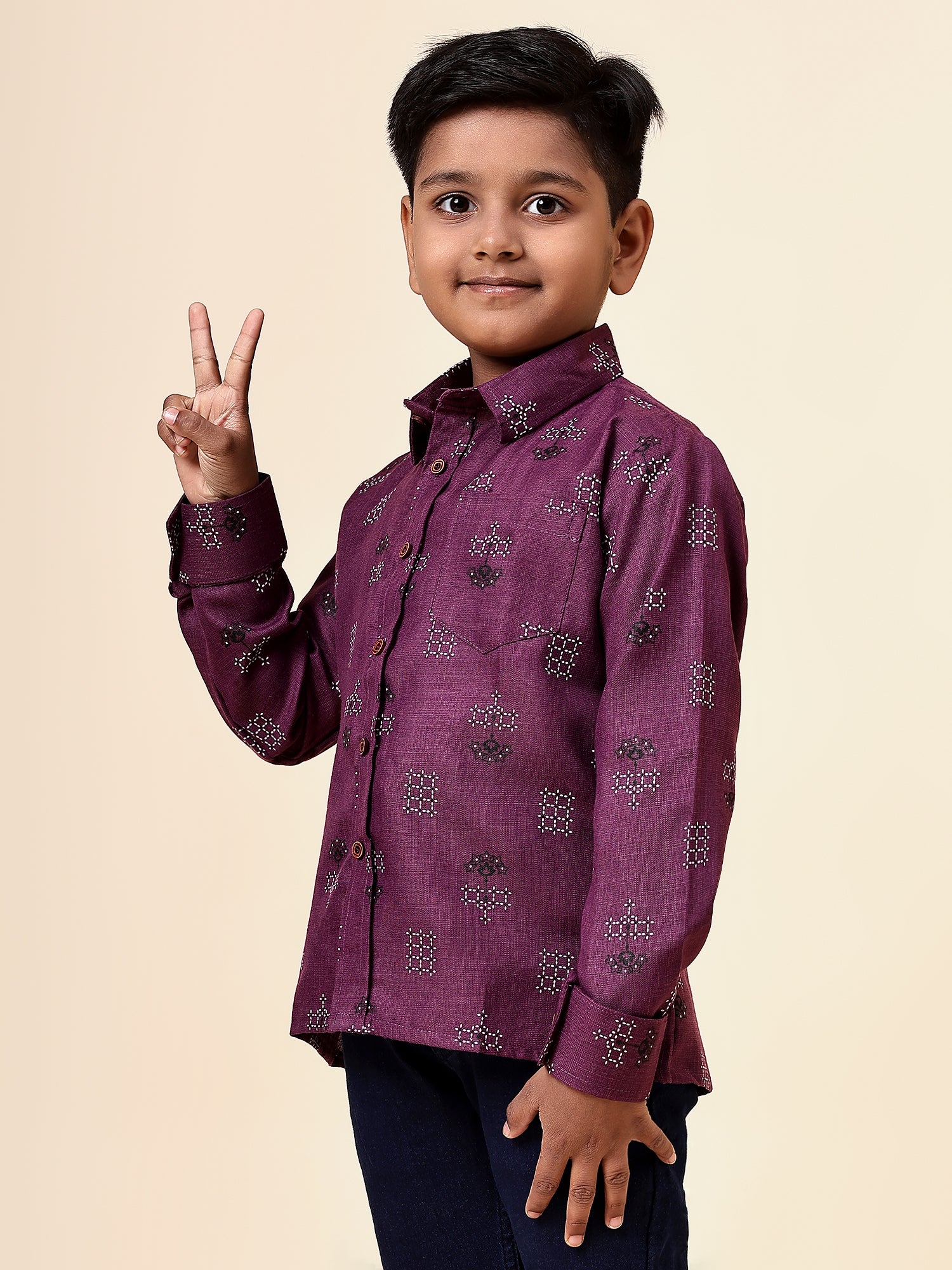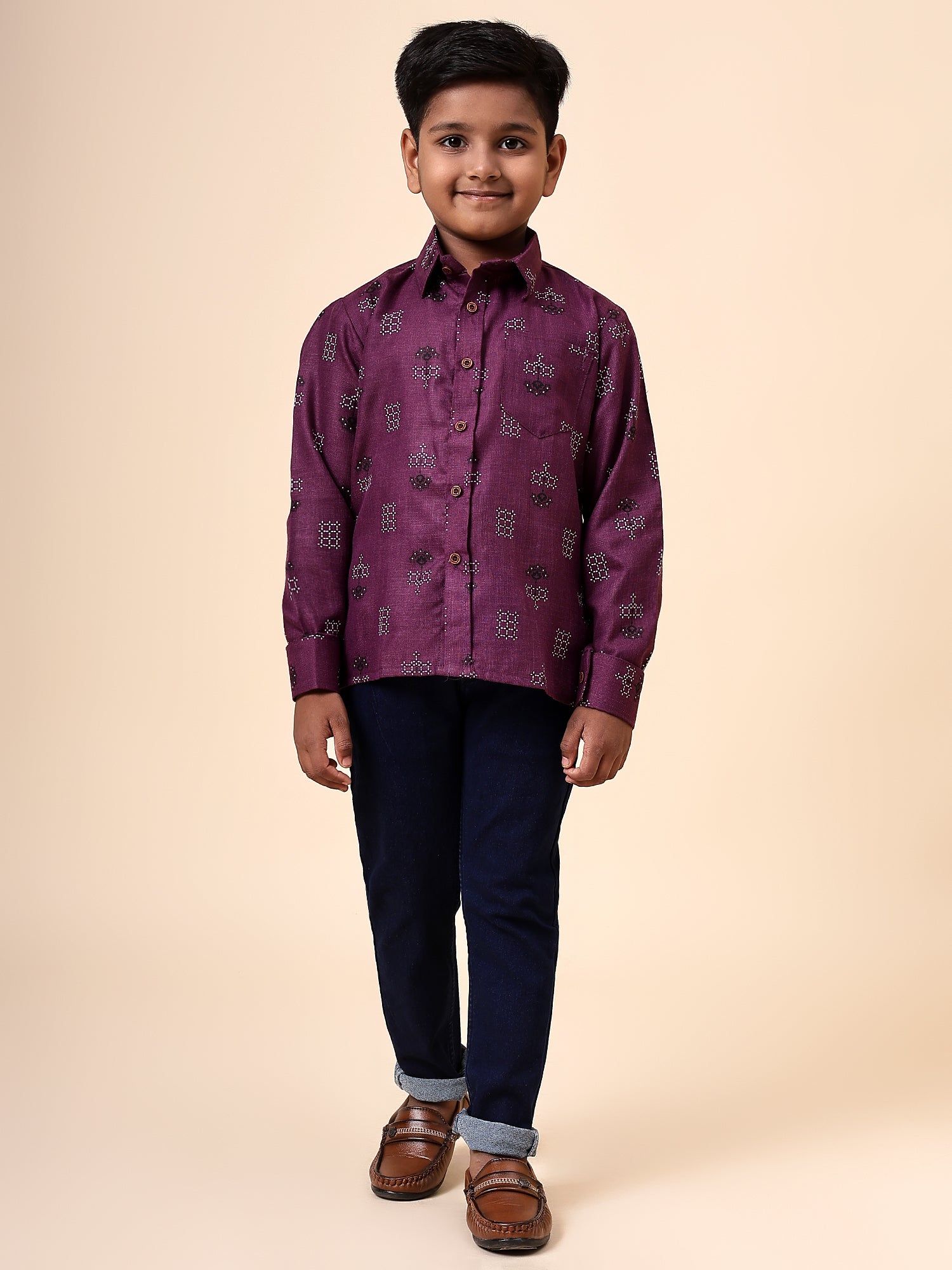 Karnam Junior - Boys Purple Square Printed Cotton Shirt