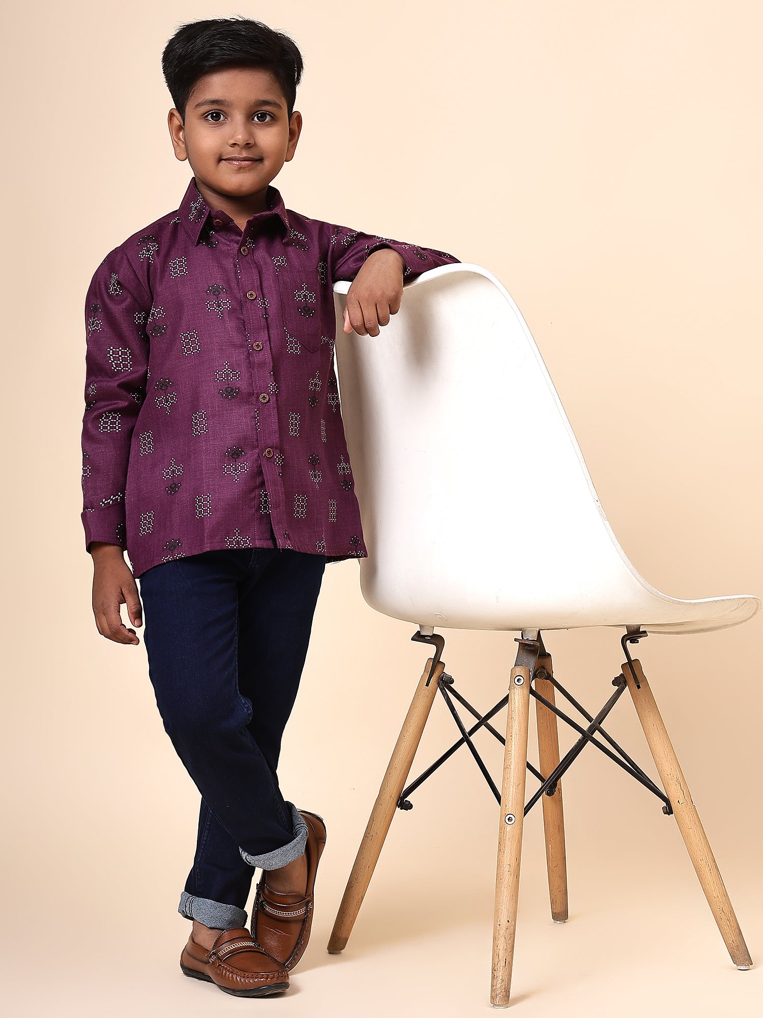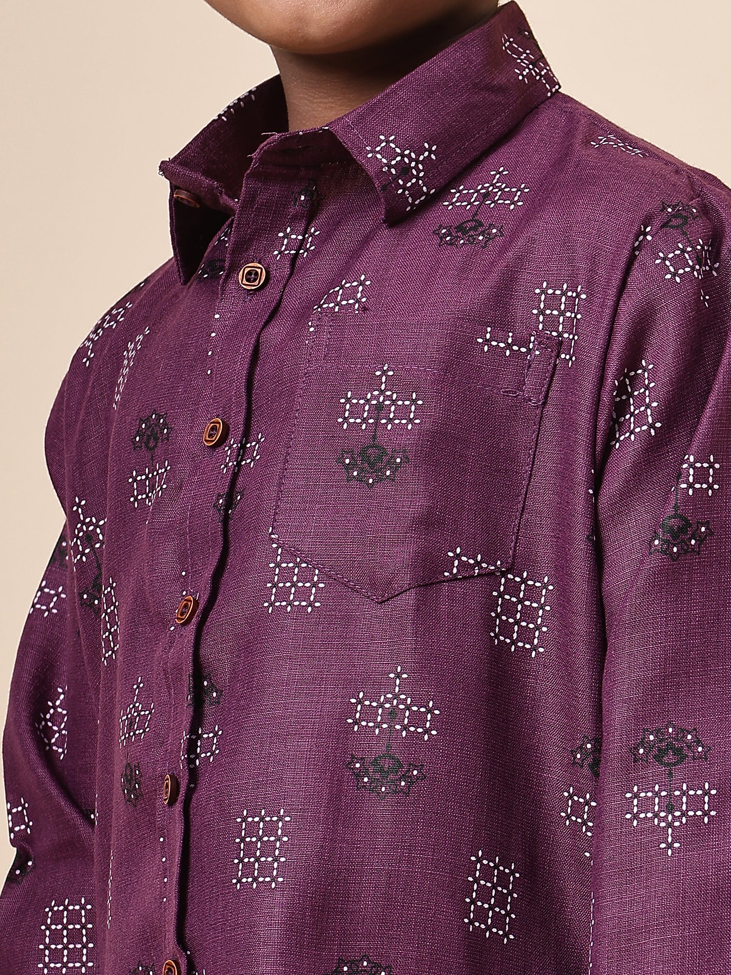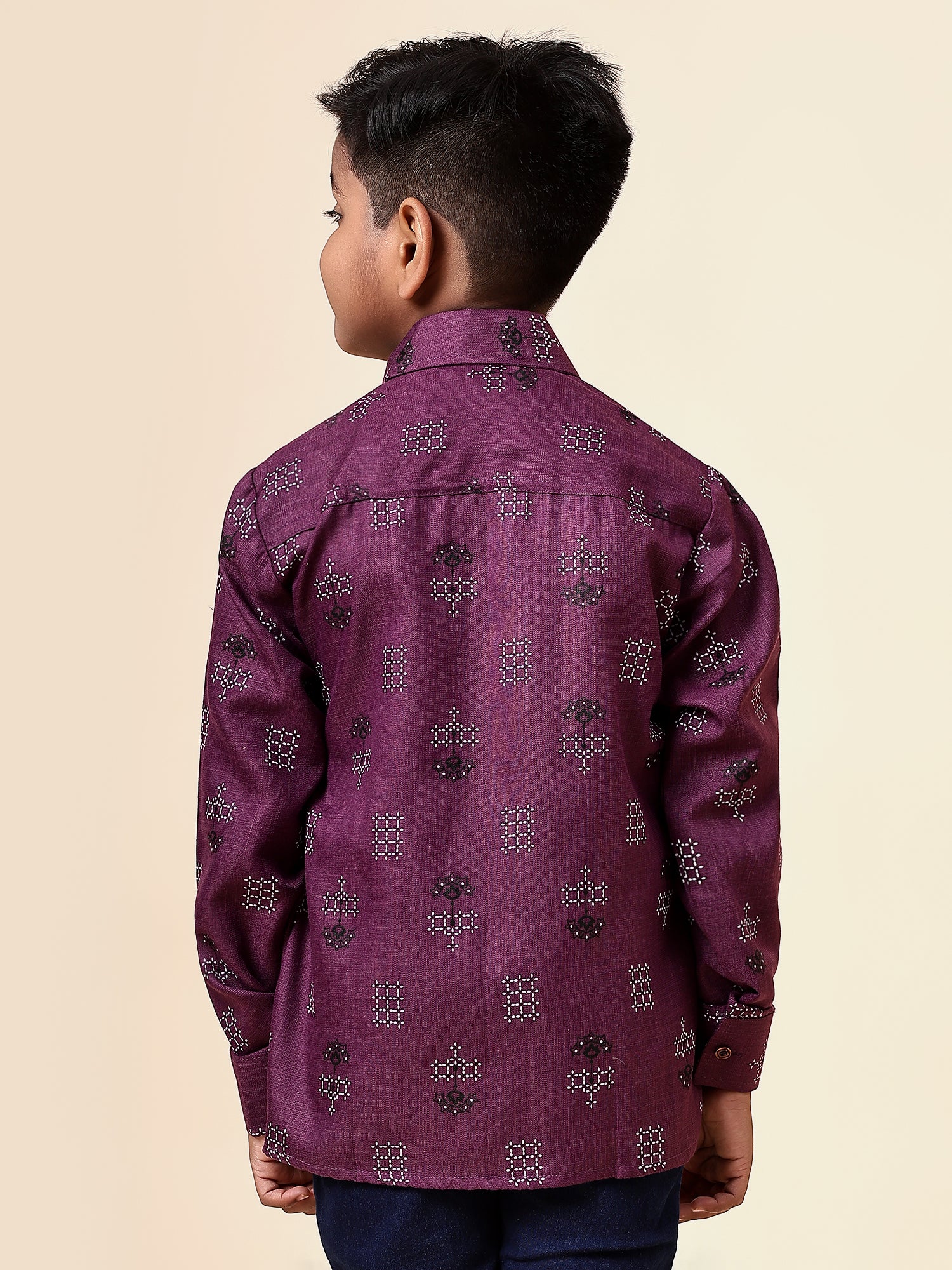 Karnam Junior - Boys Purple Square Printed Cotton Shirt