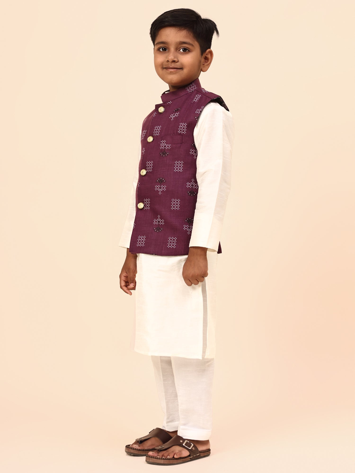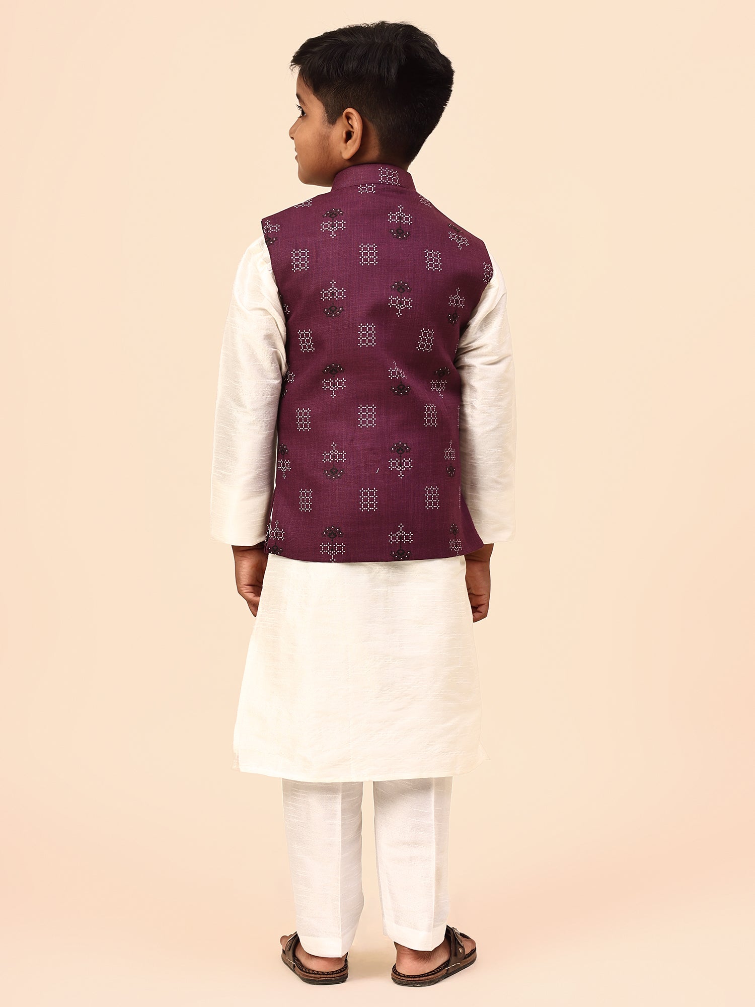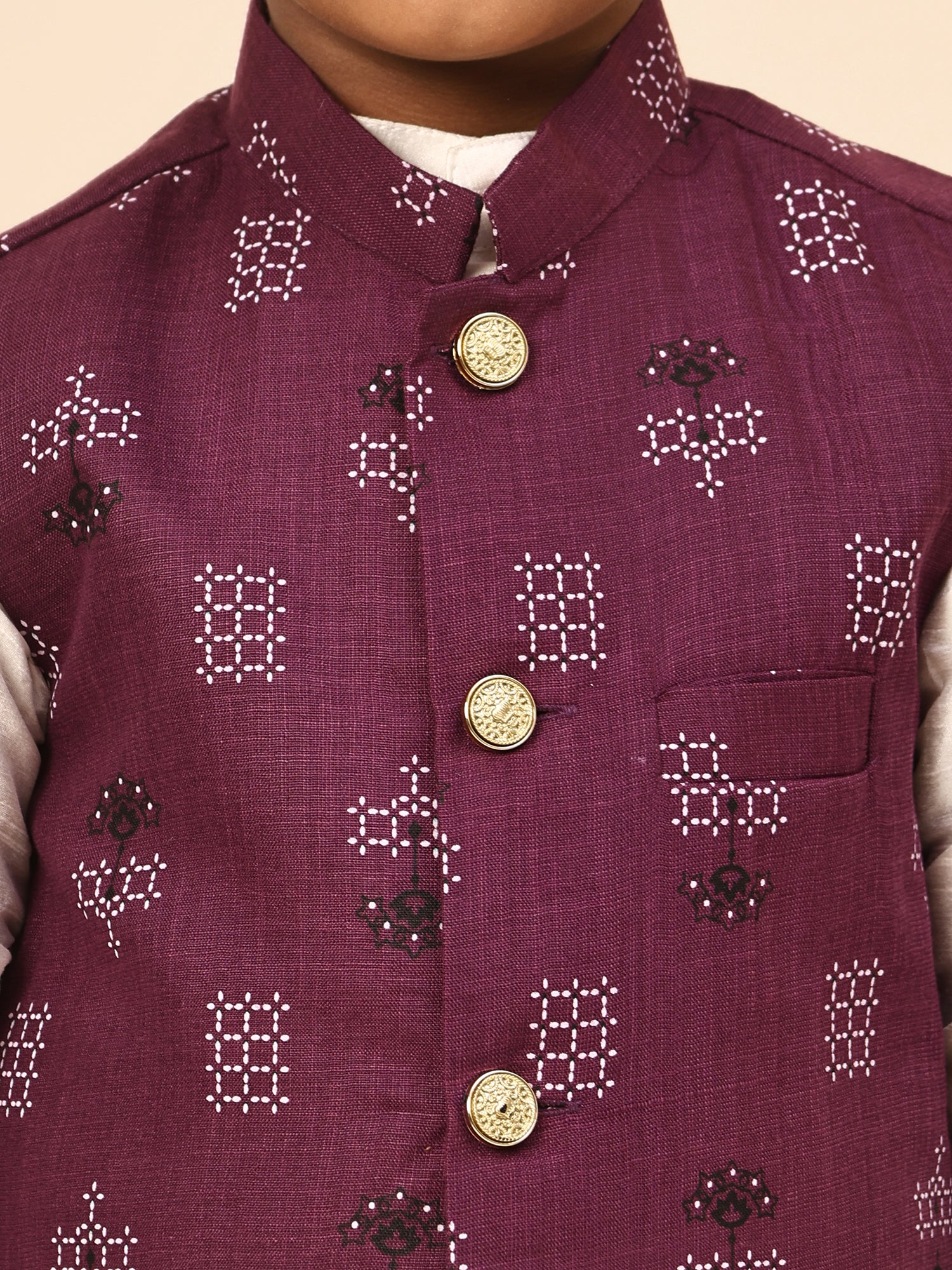 Karnam Junior - Boys Purple Square Printed Jacket Set