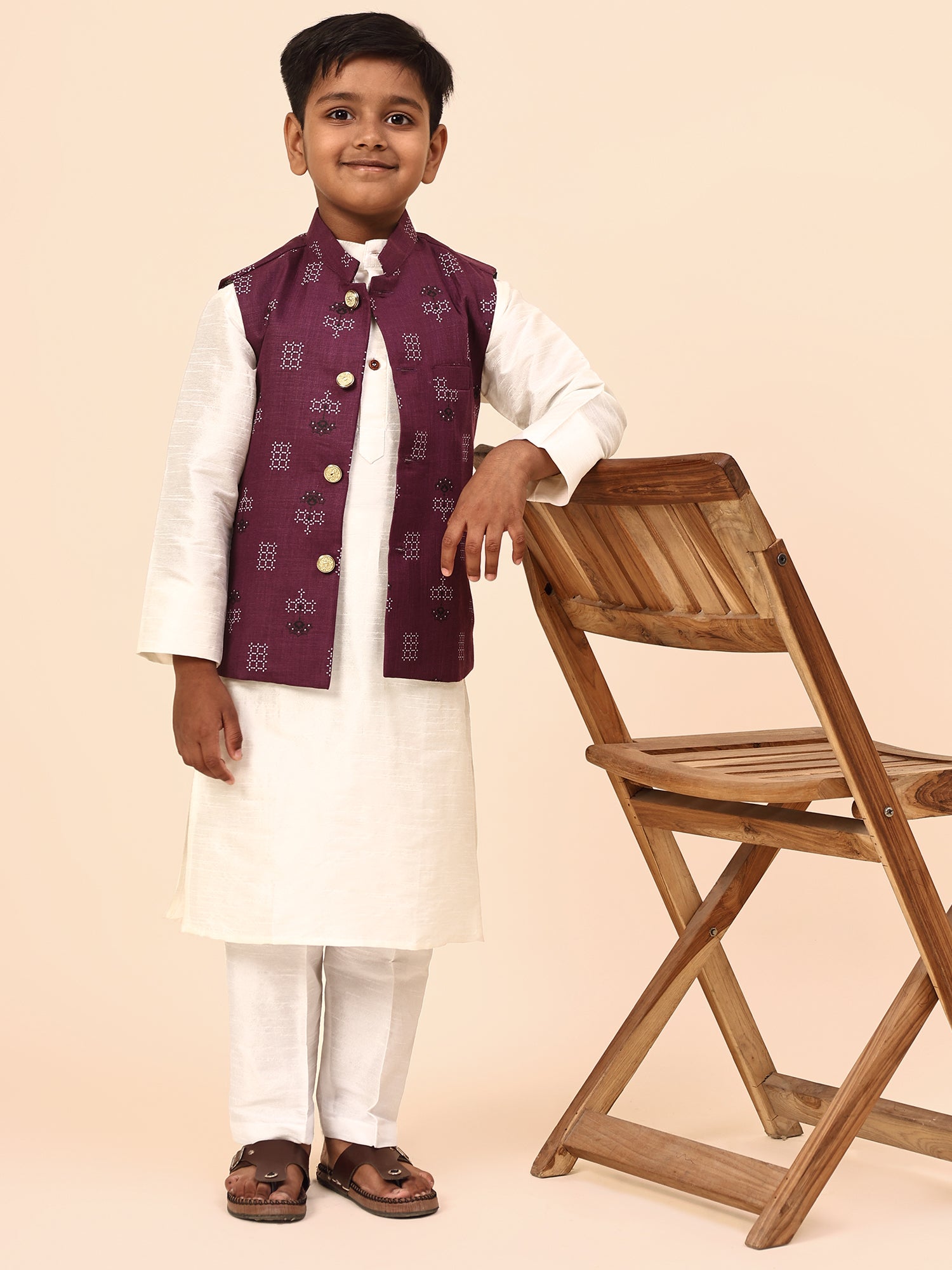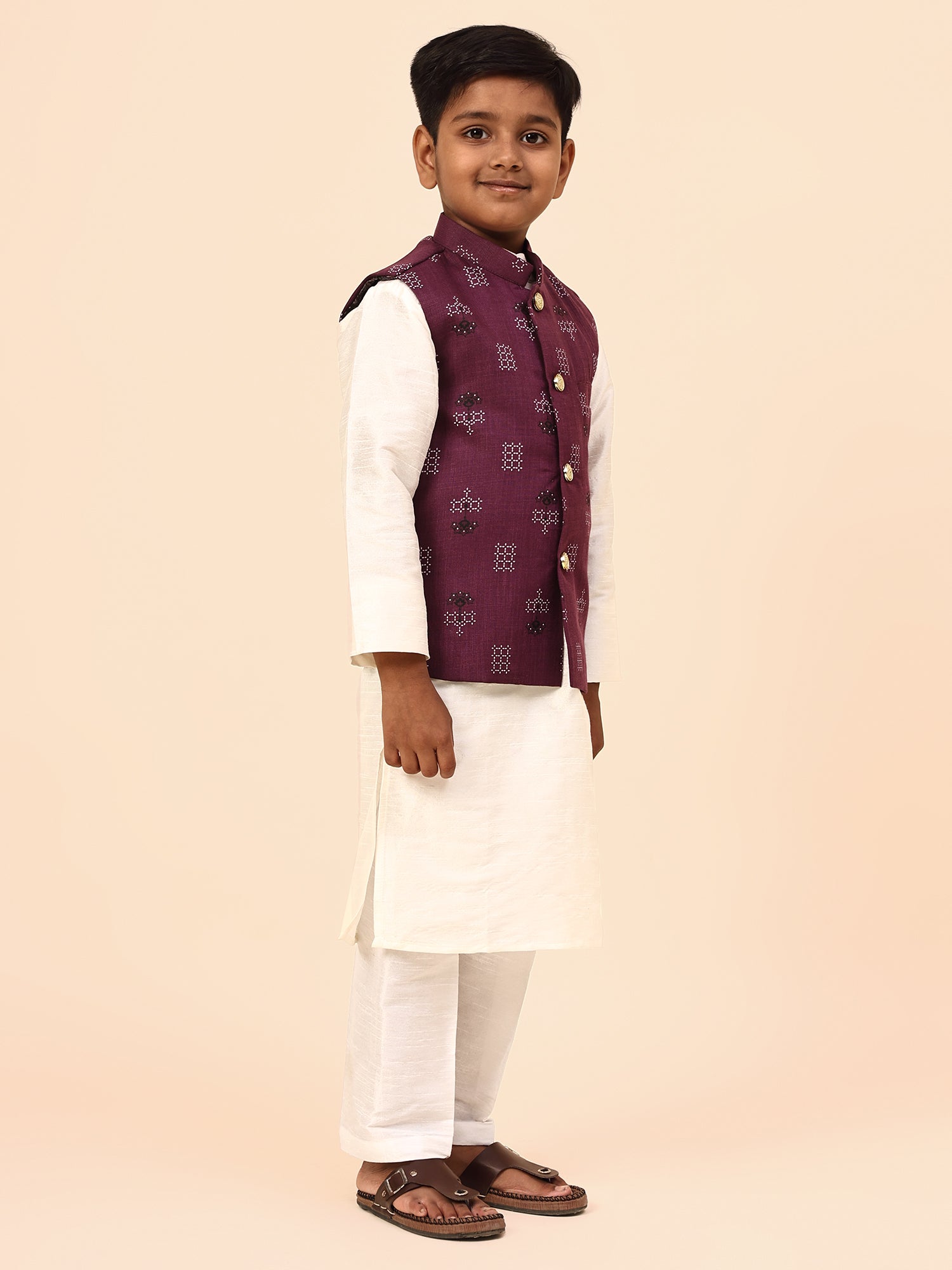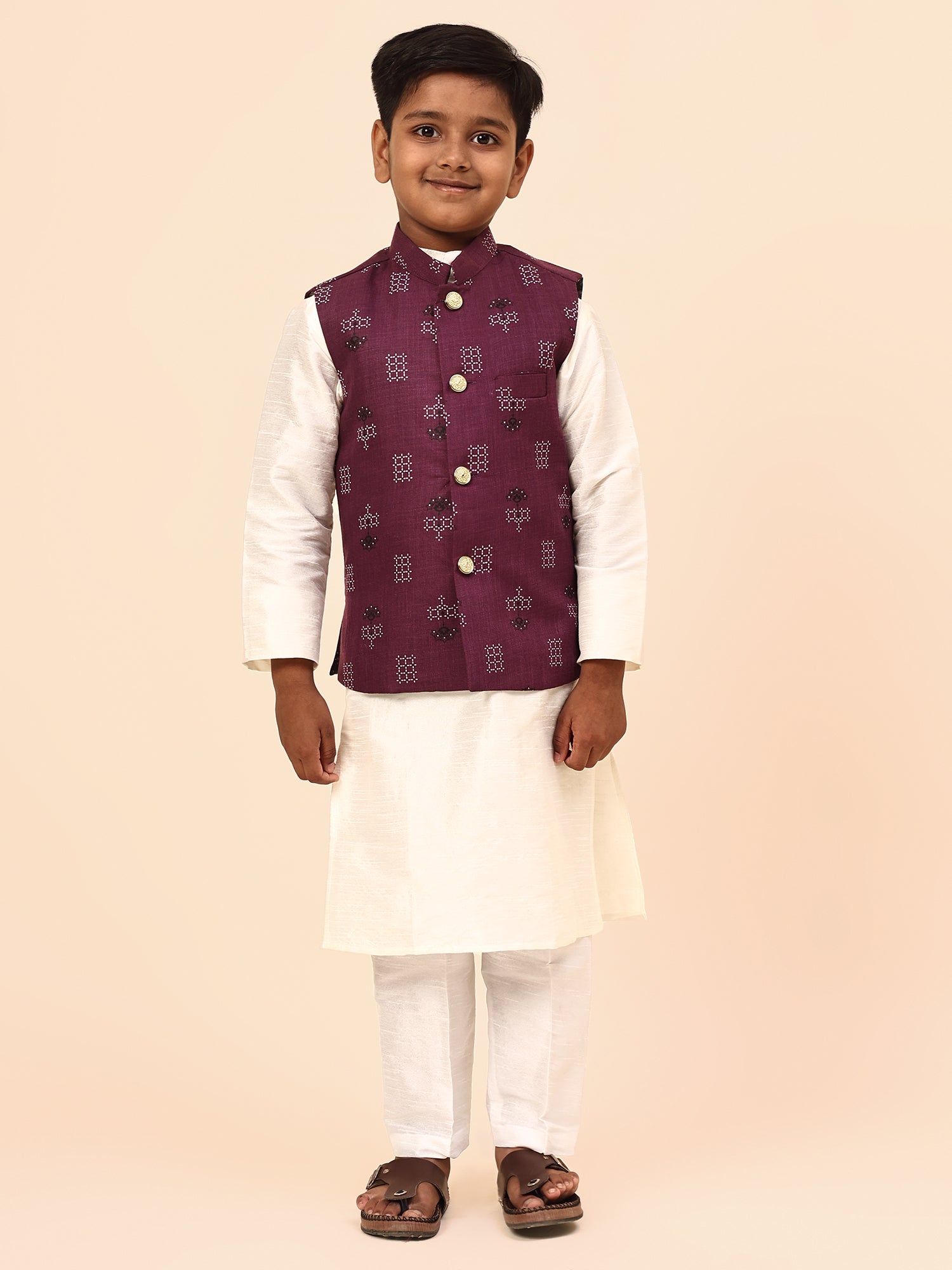 Karnam Junior - Boys Purple Square Printed Jacket Set