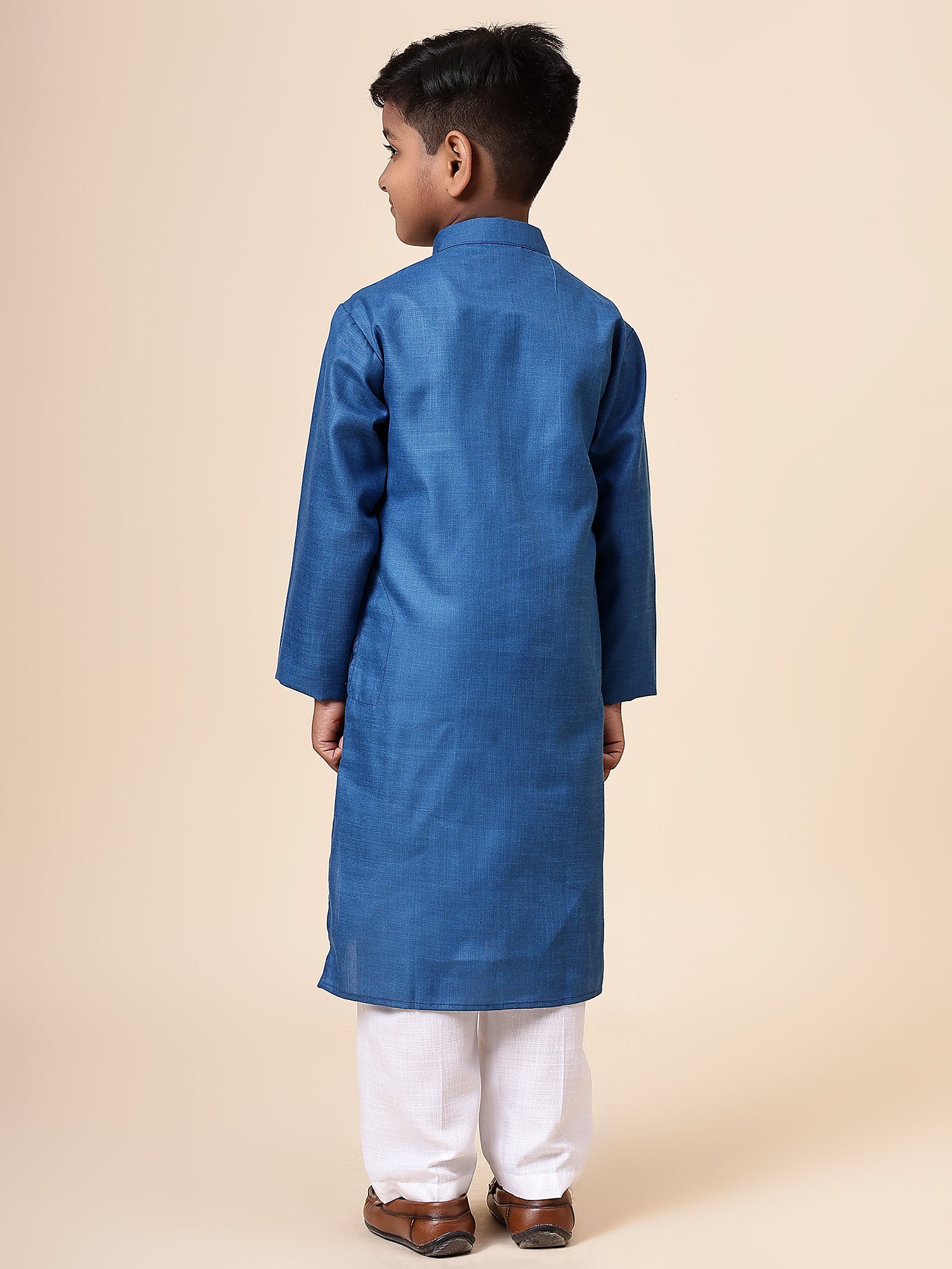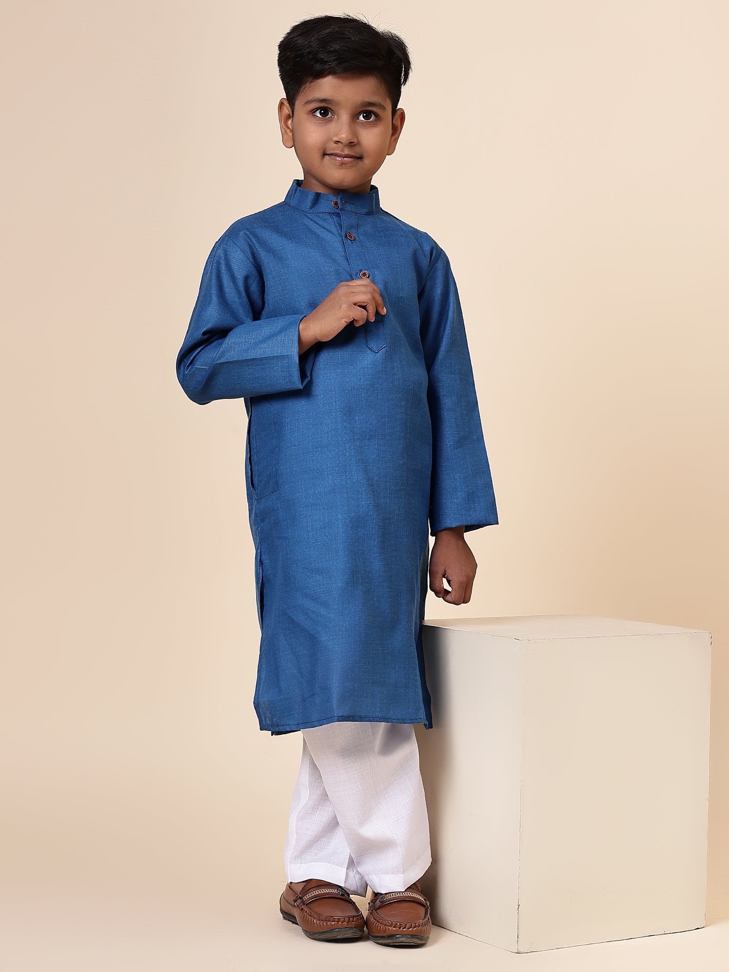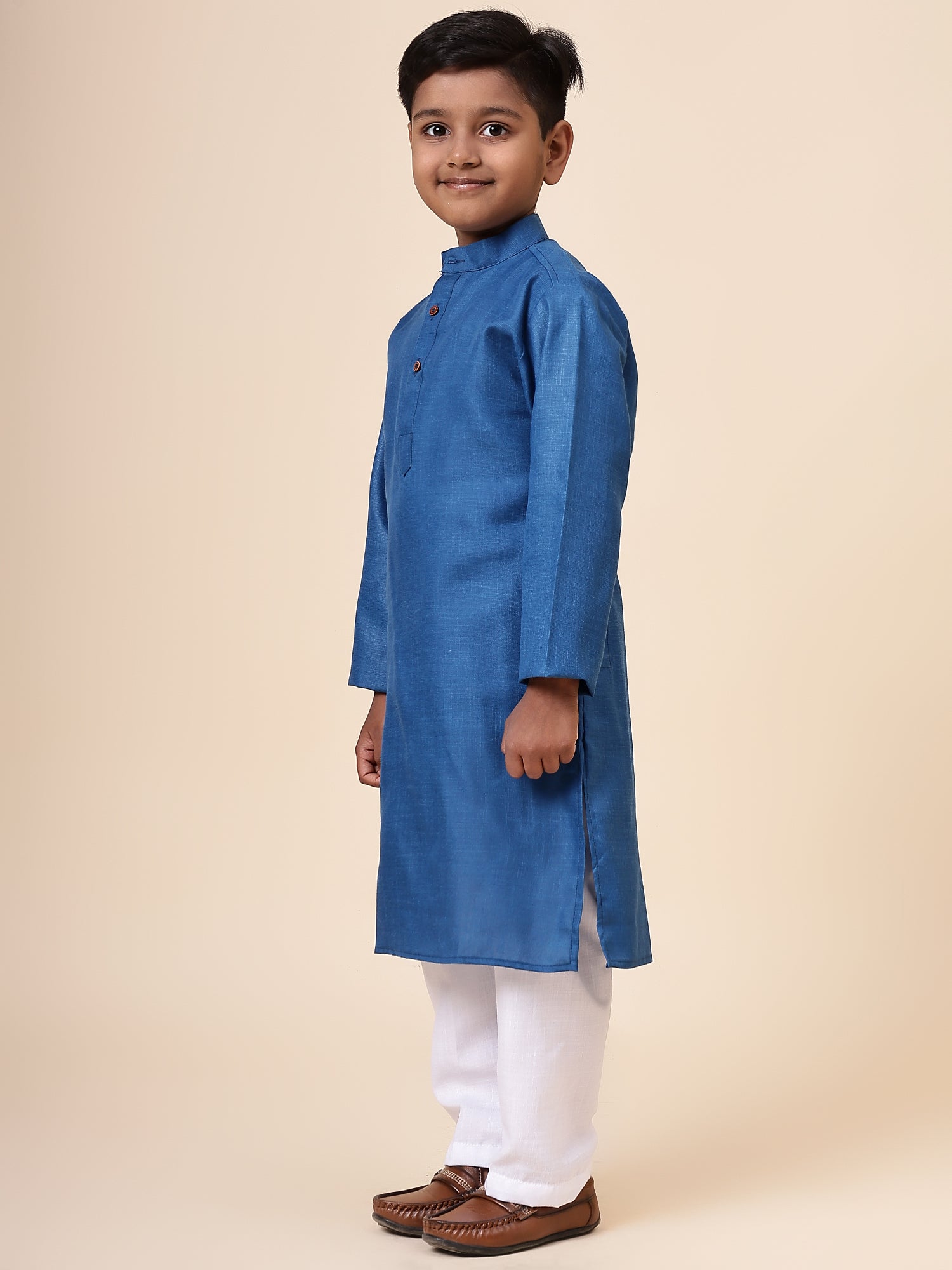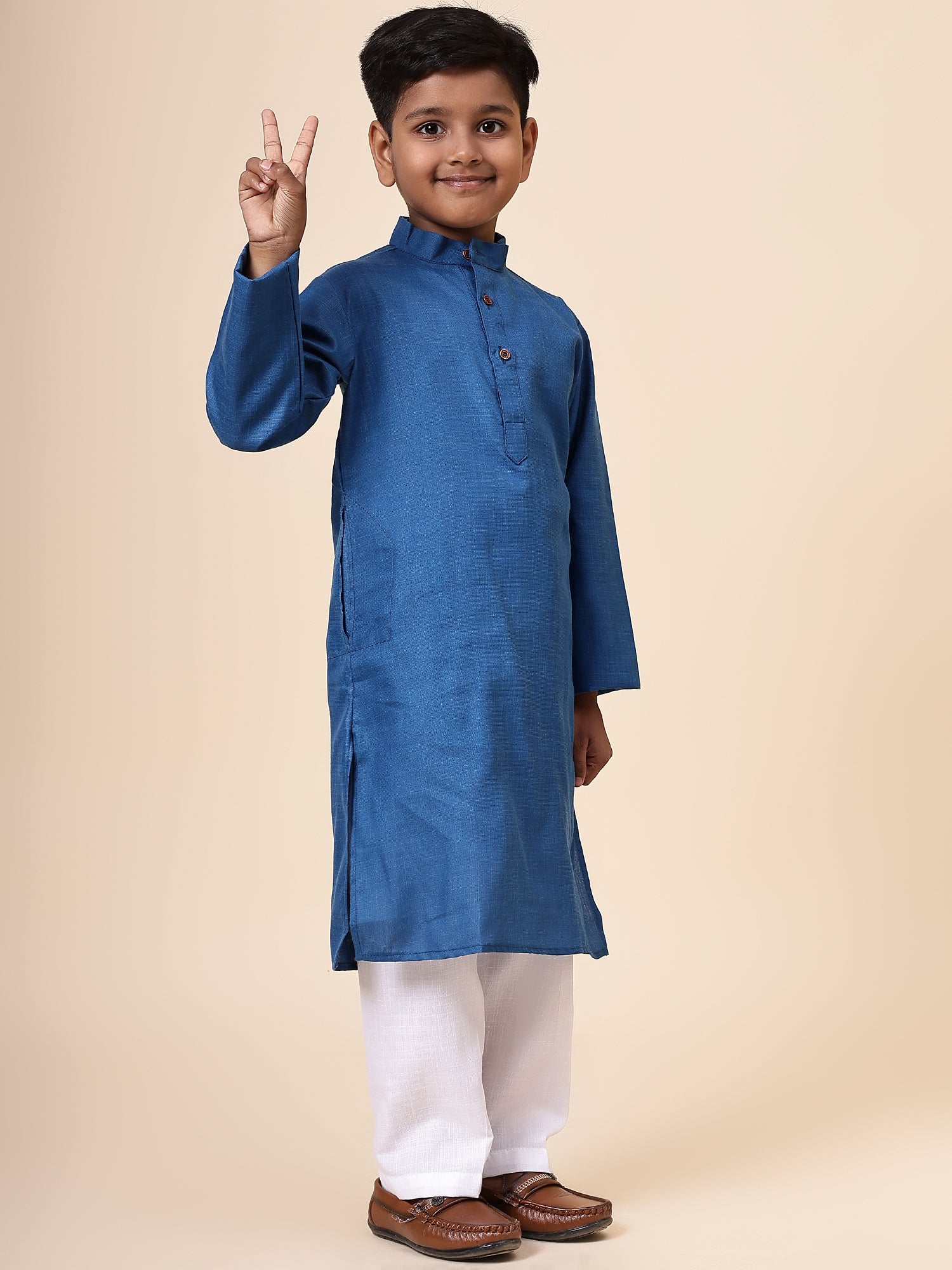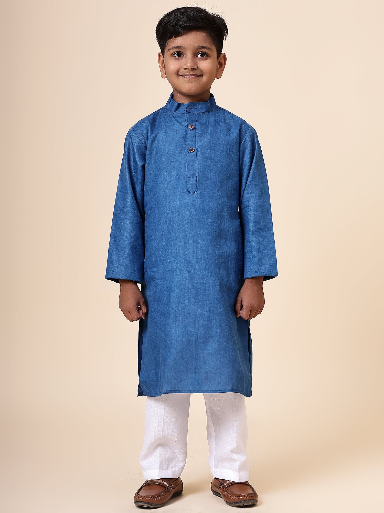 Karnam Junior - Boys Rama Green Cotton Kurta Set