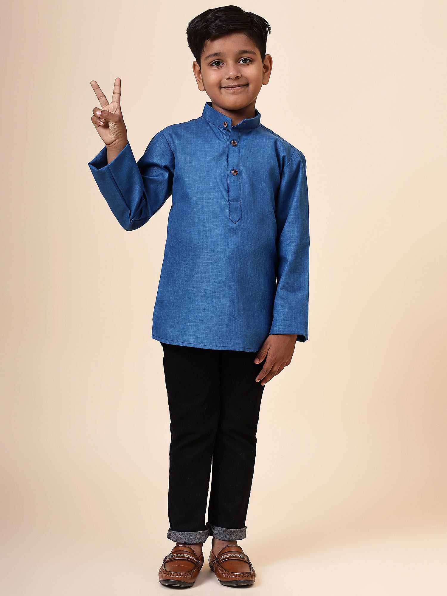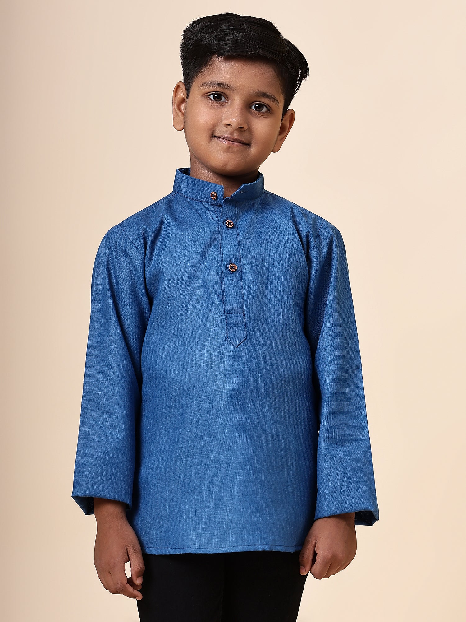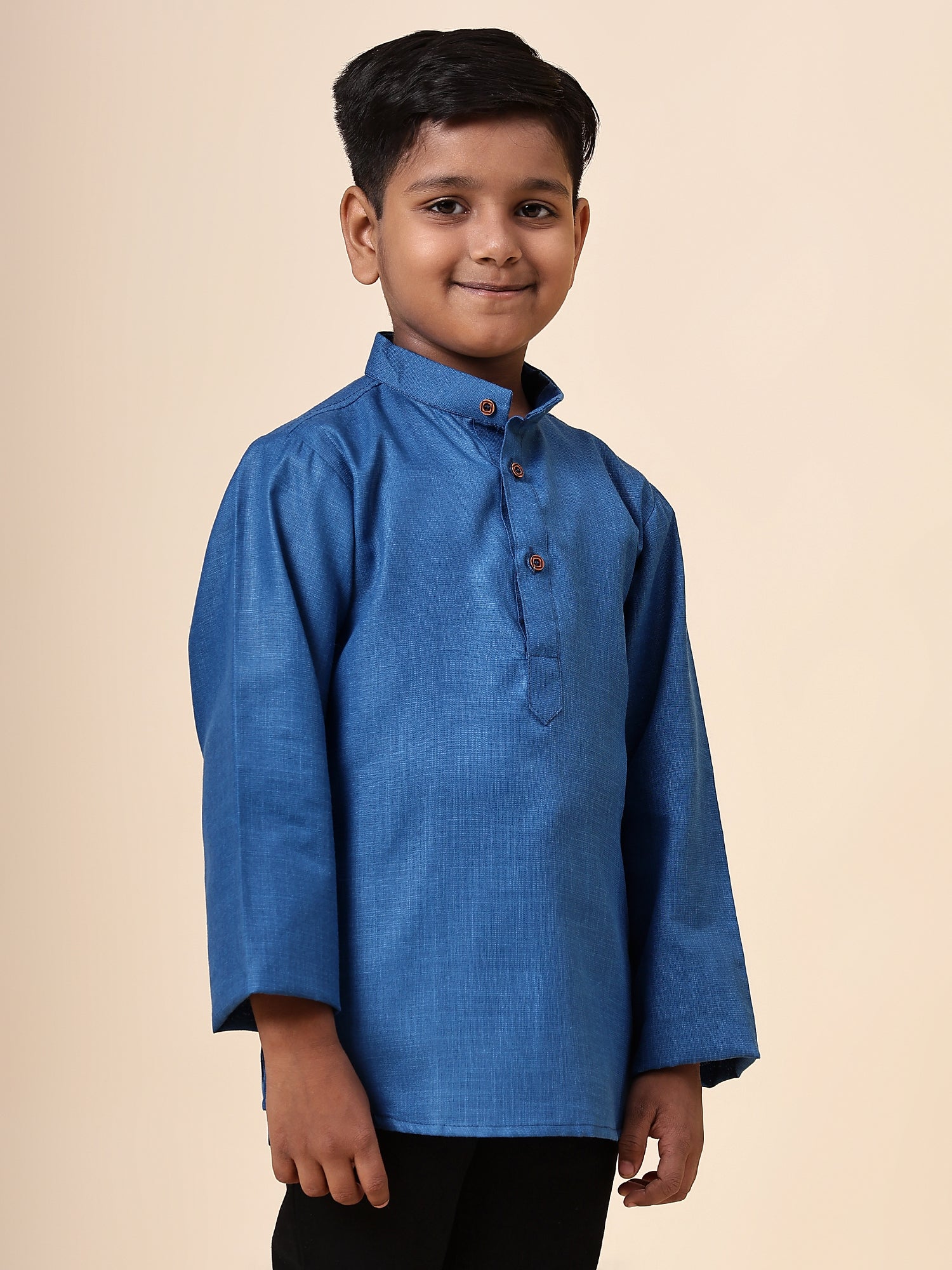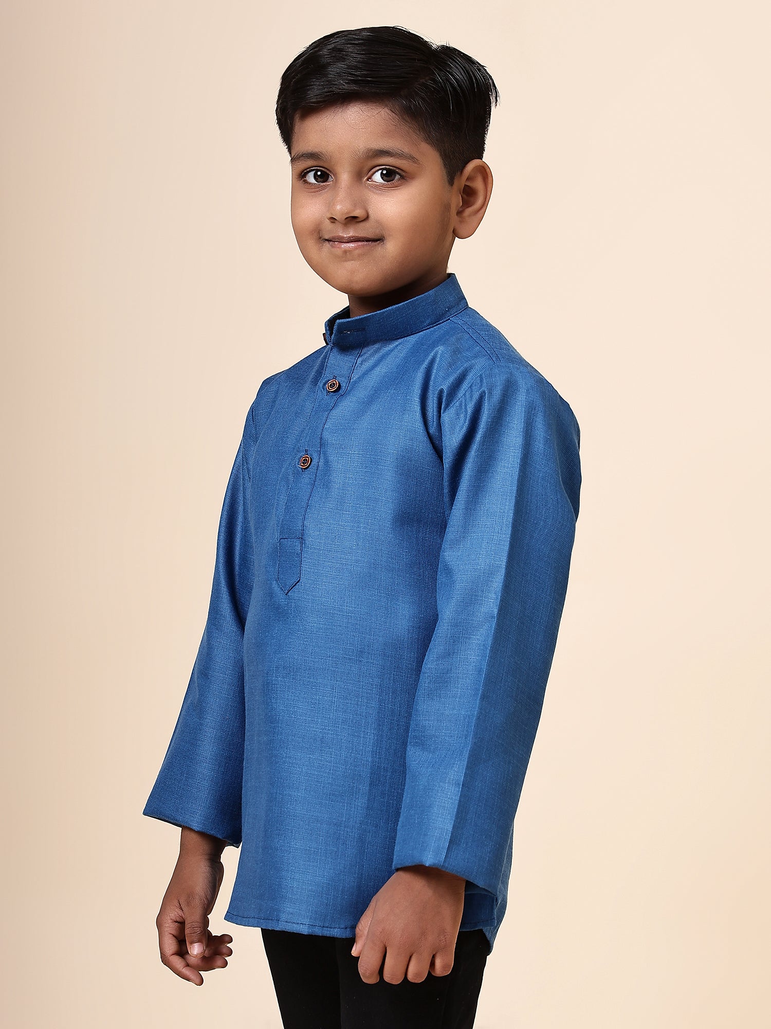 Karnam Junior - Boys Rama Green Cotton Short Kurta