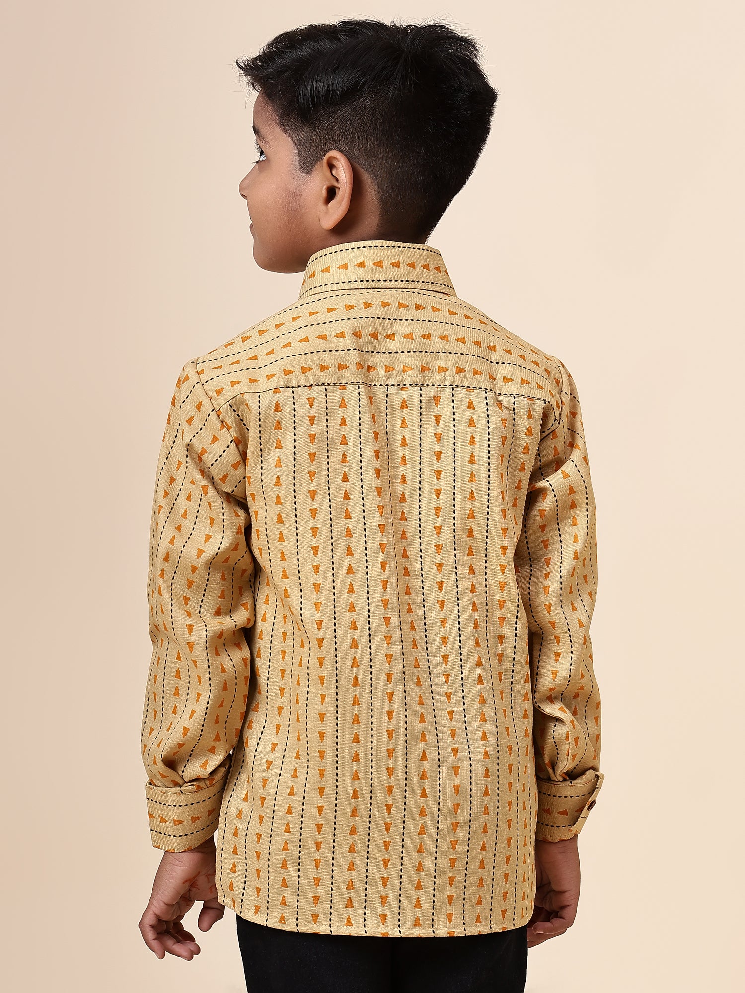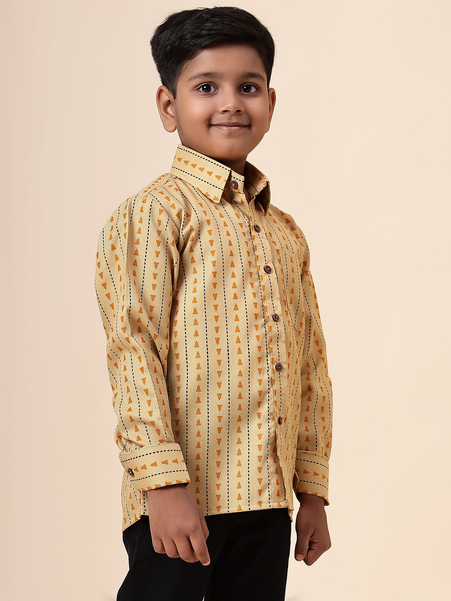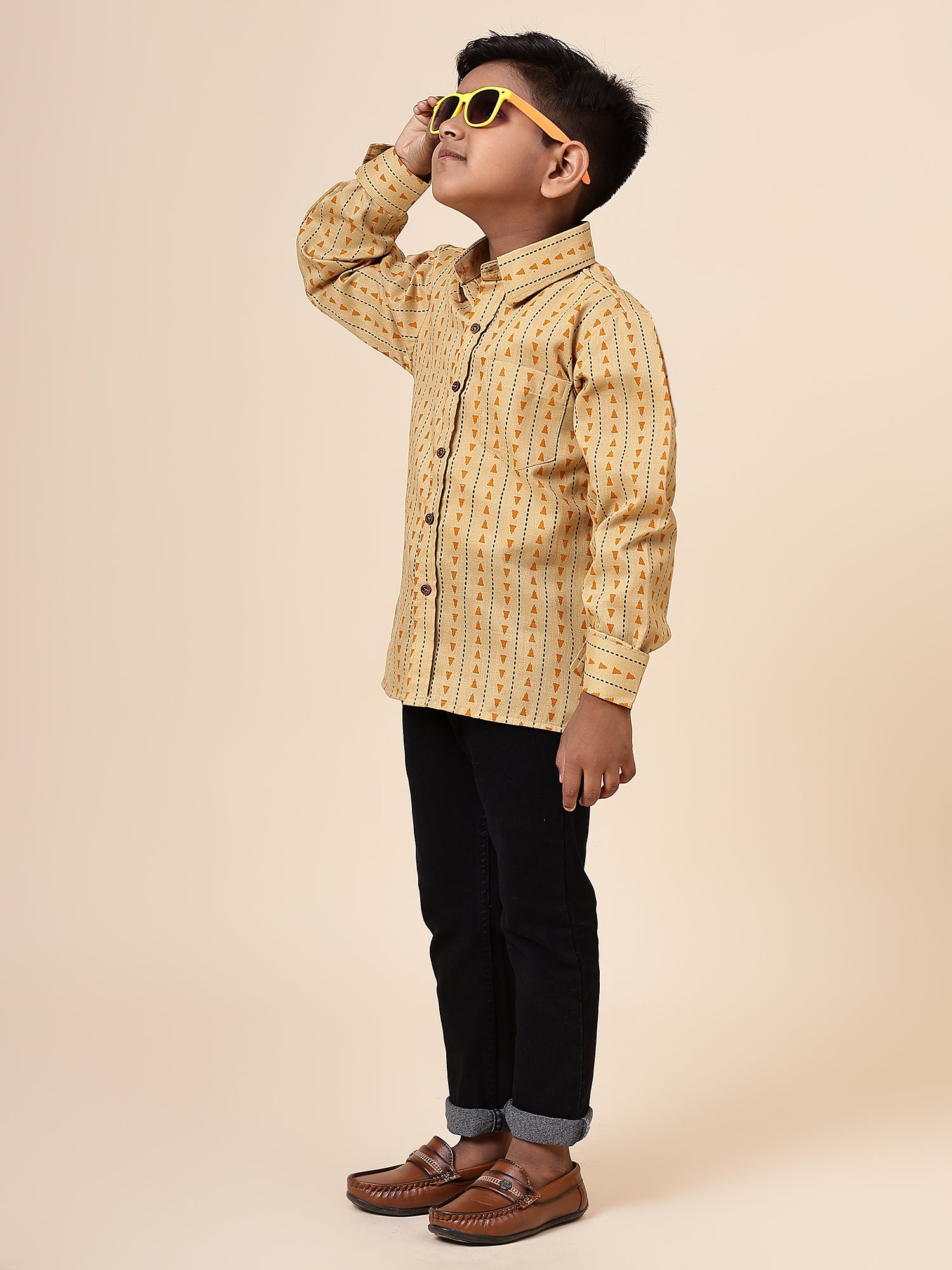 Karnam Junior - Boys Yellow Printed Cotton Shirt