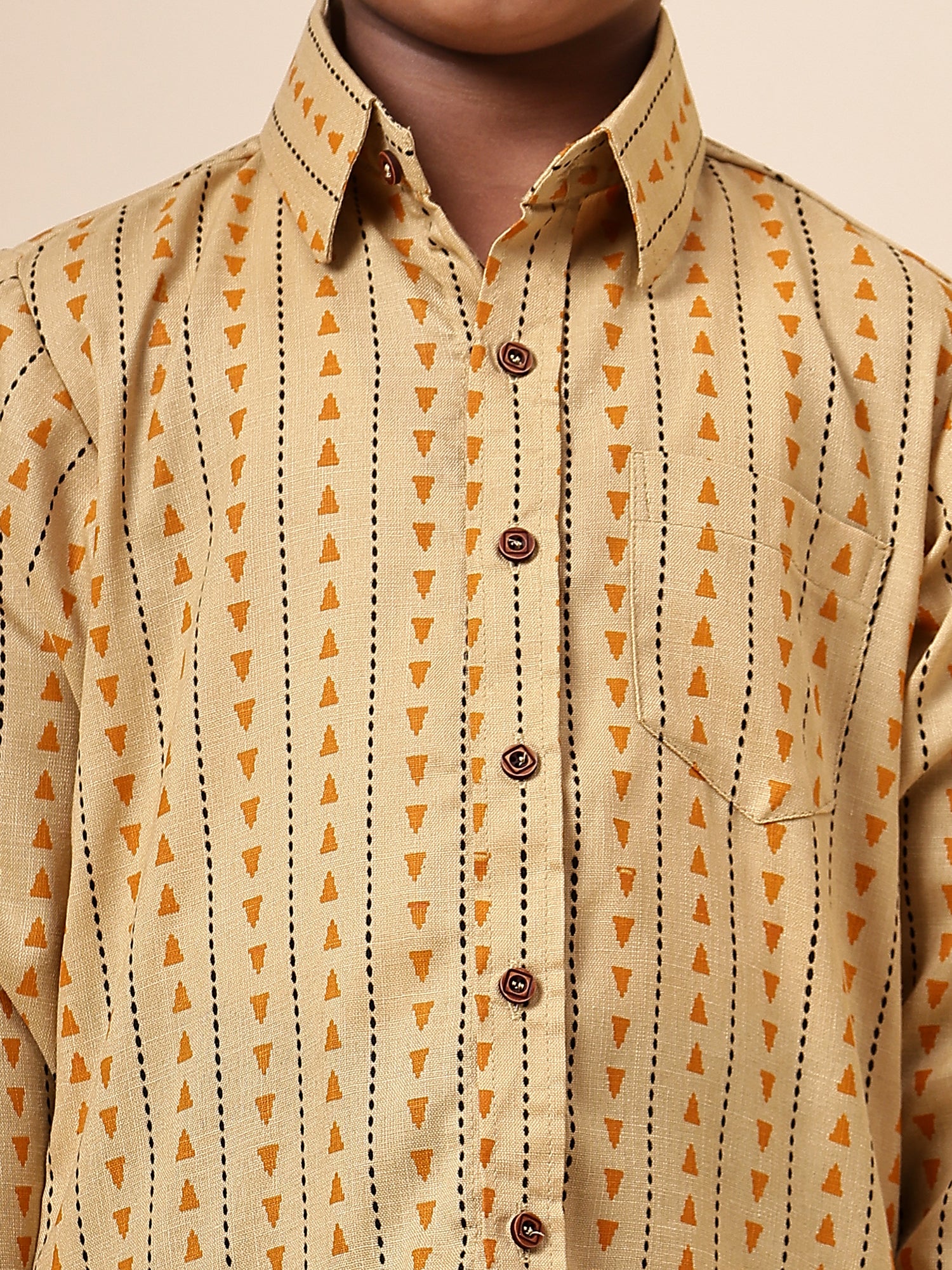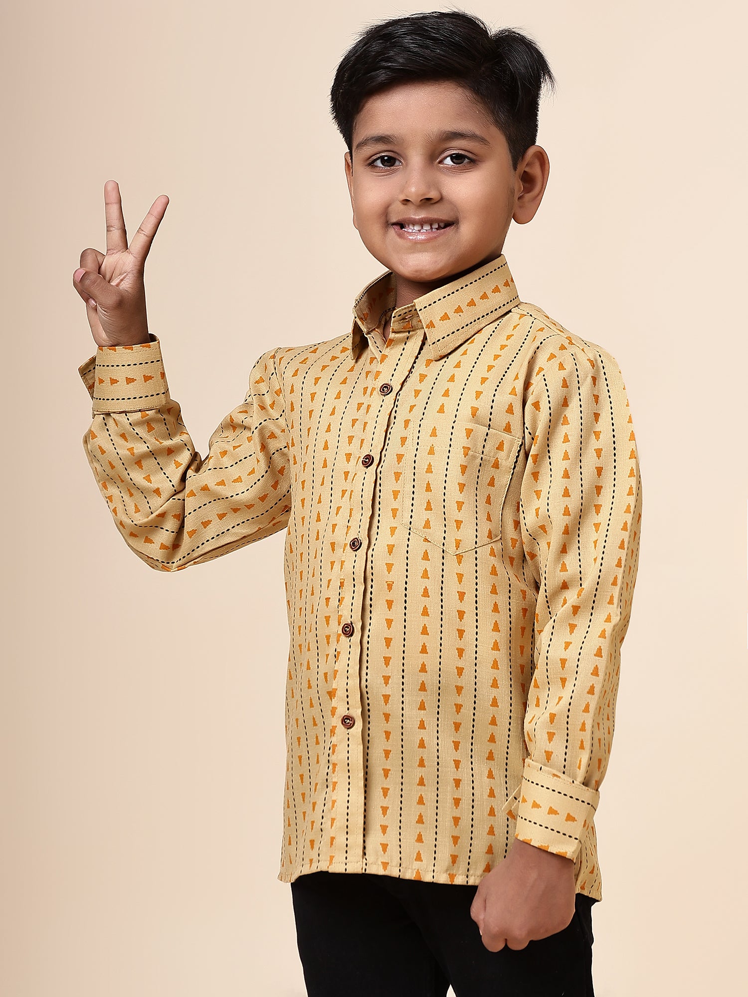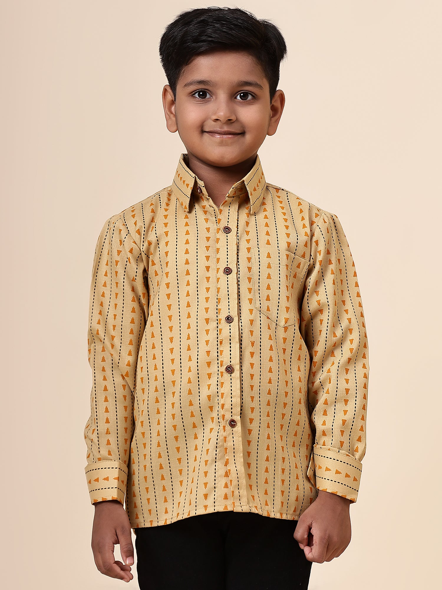 Karnam Junior - Boys Yellow Printed Cotton Shirt