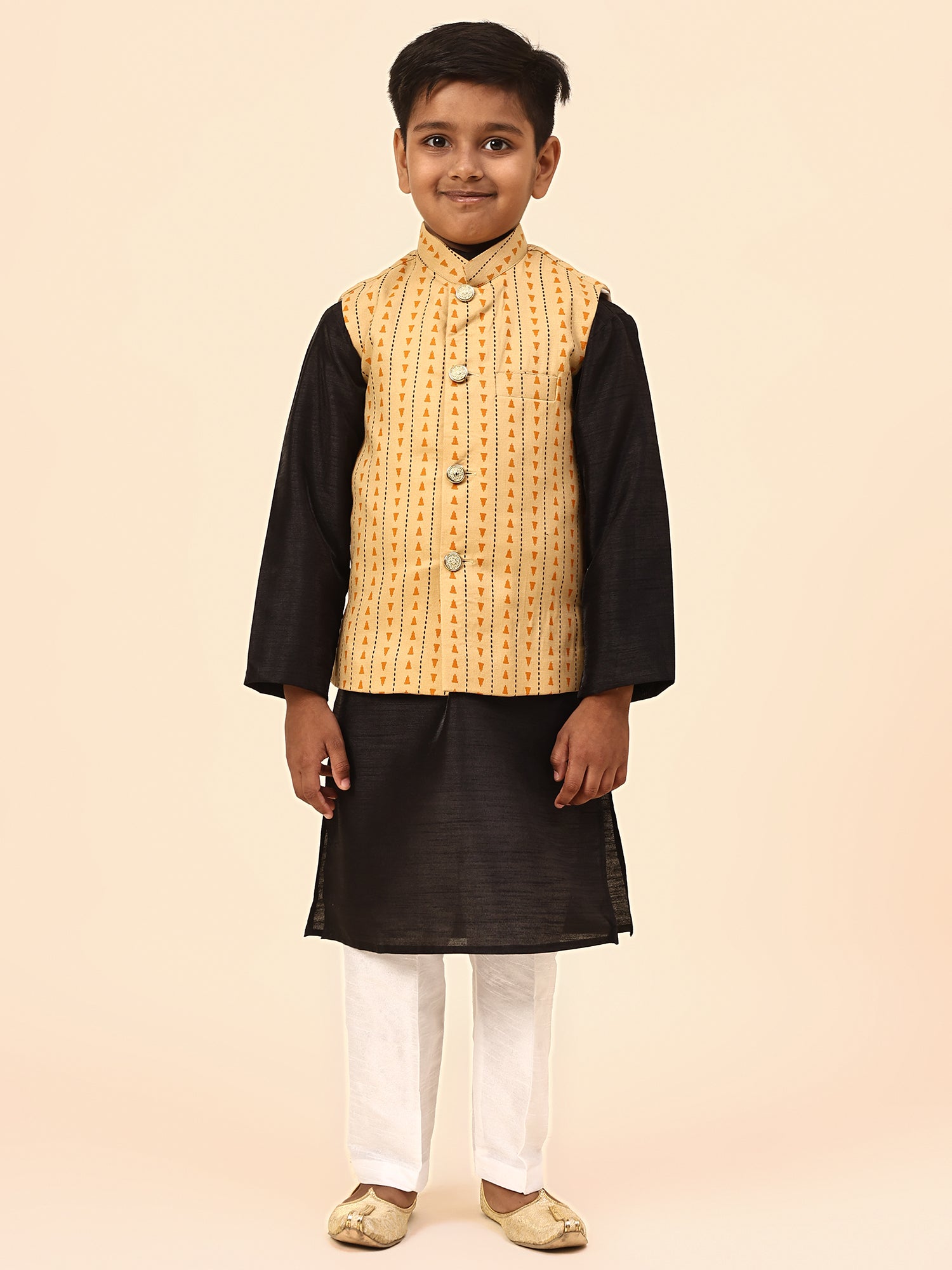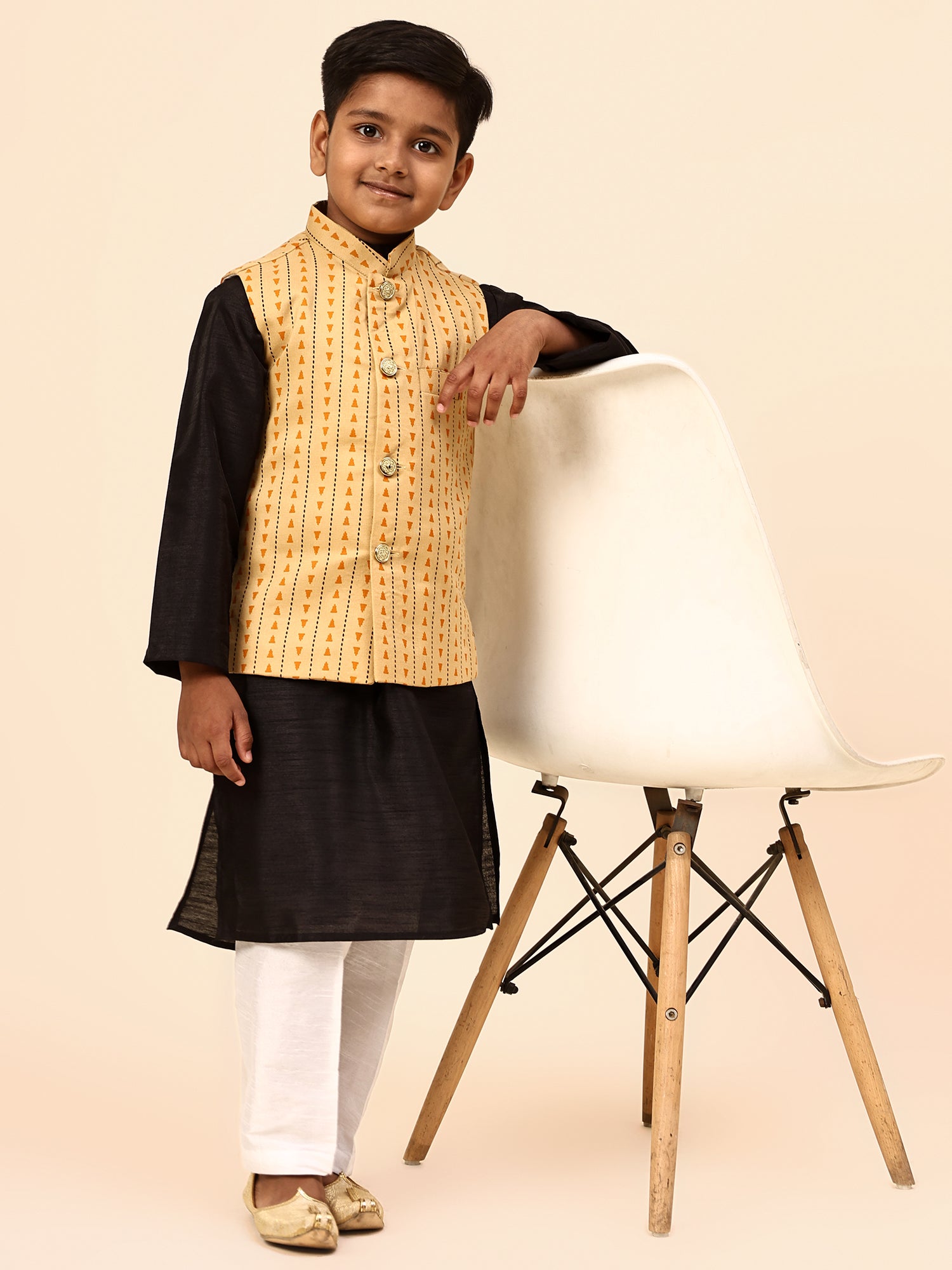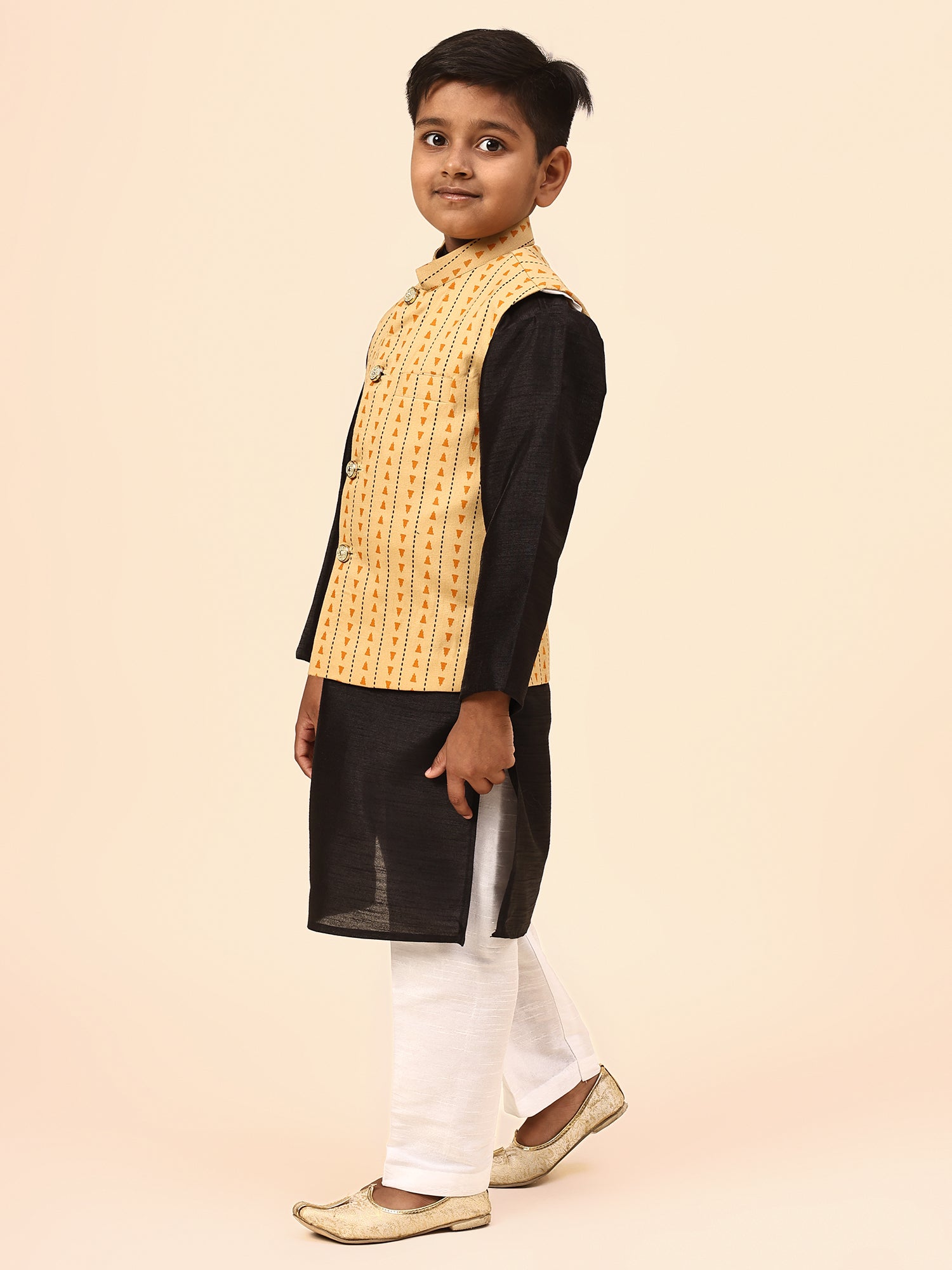 Karnam Junior - Boys Yellow Printed Jacket Set